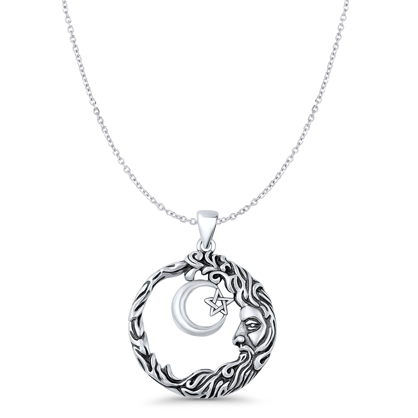 Style: Oxidized Wicca, Star & Moon Pendant Necklace