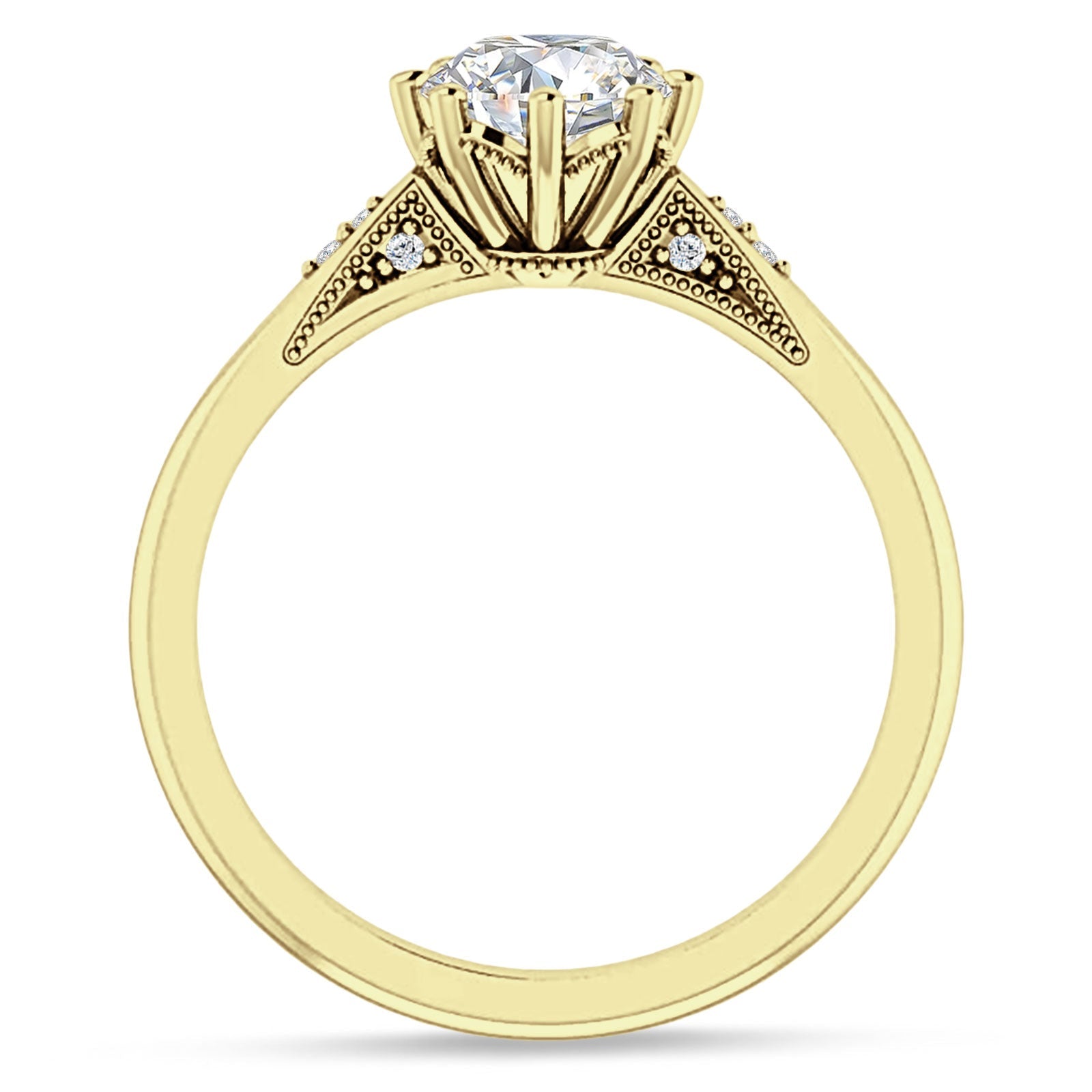10K Gold IGI Certified Round 1 Carat Lab Grown Diamond Art Deco Marquise Style Ring