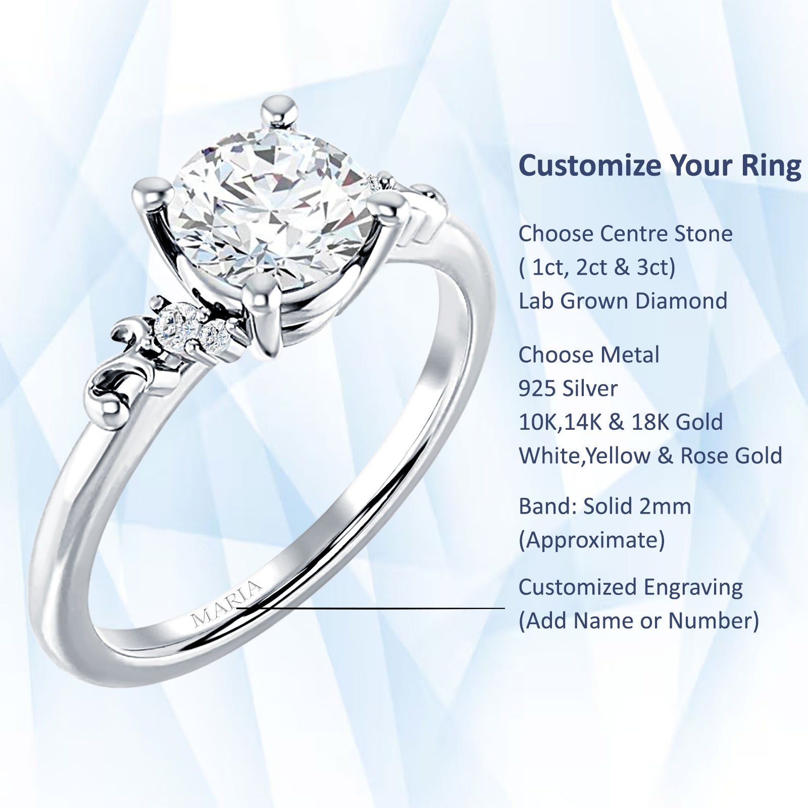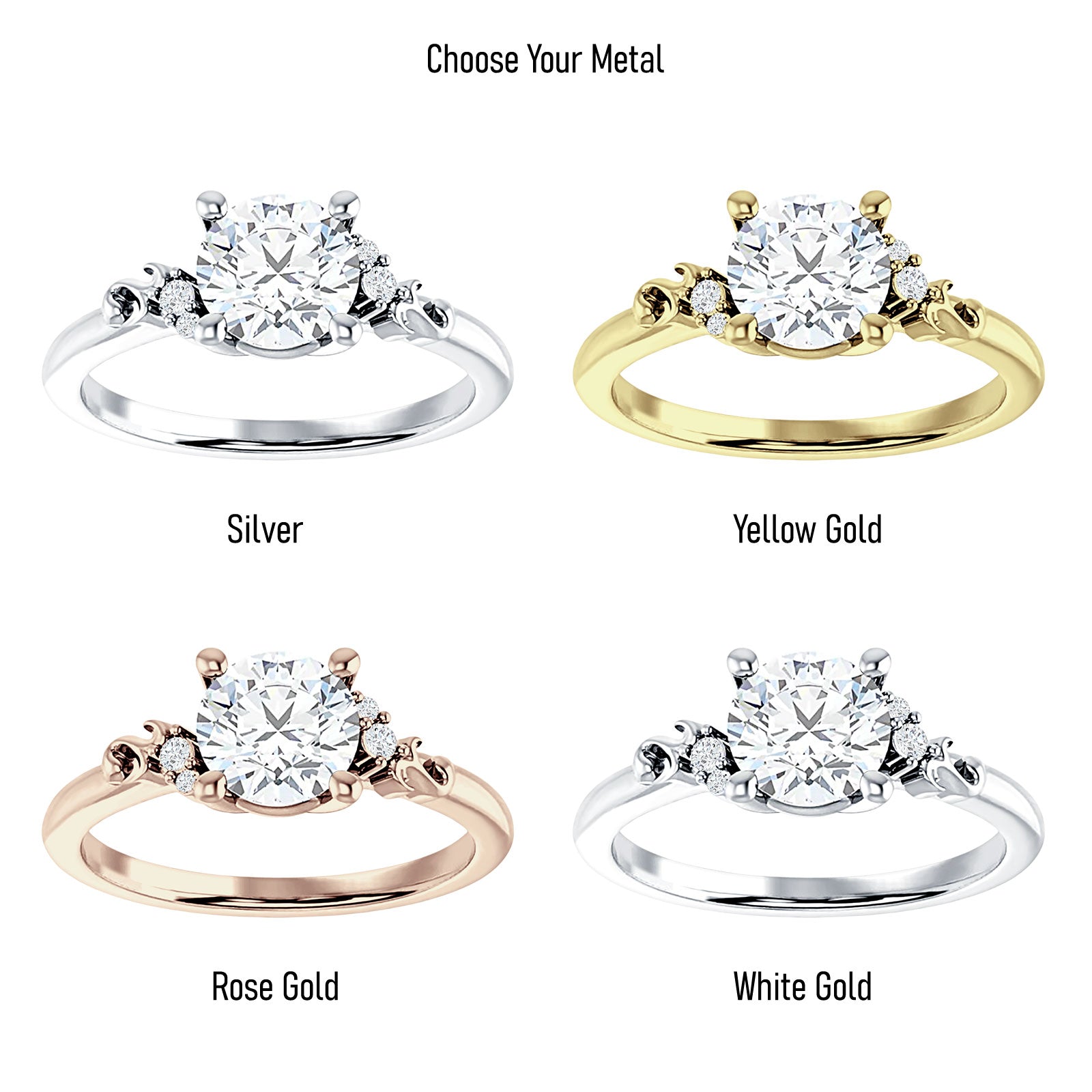 This lab grown diamond ring is available in three different carat weights and also comes in a choice of various metal types.(Tarnish Resistant Sterling Silver, 14K Gold & 18K Gold)
