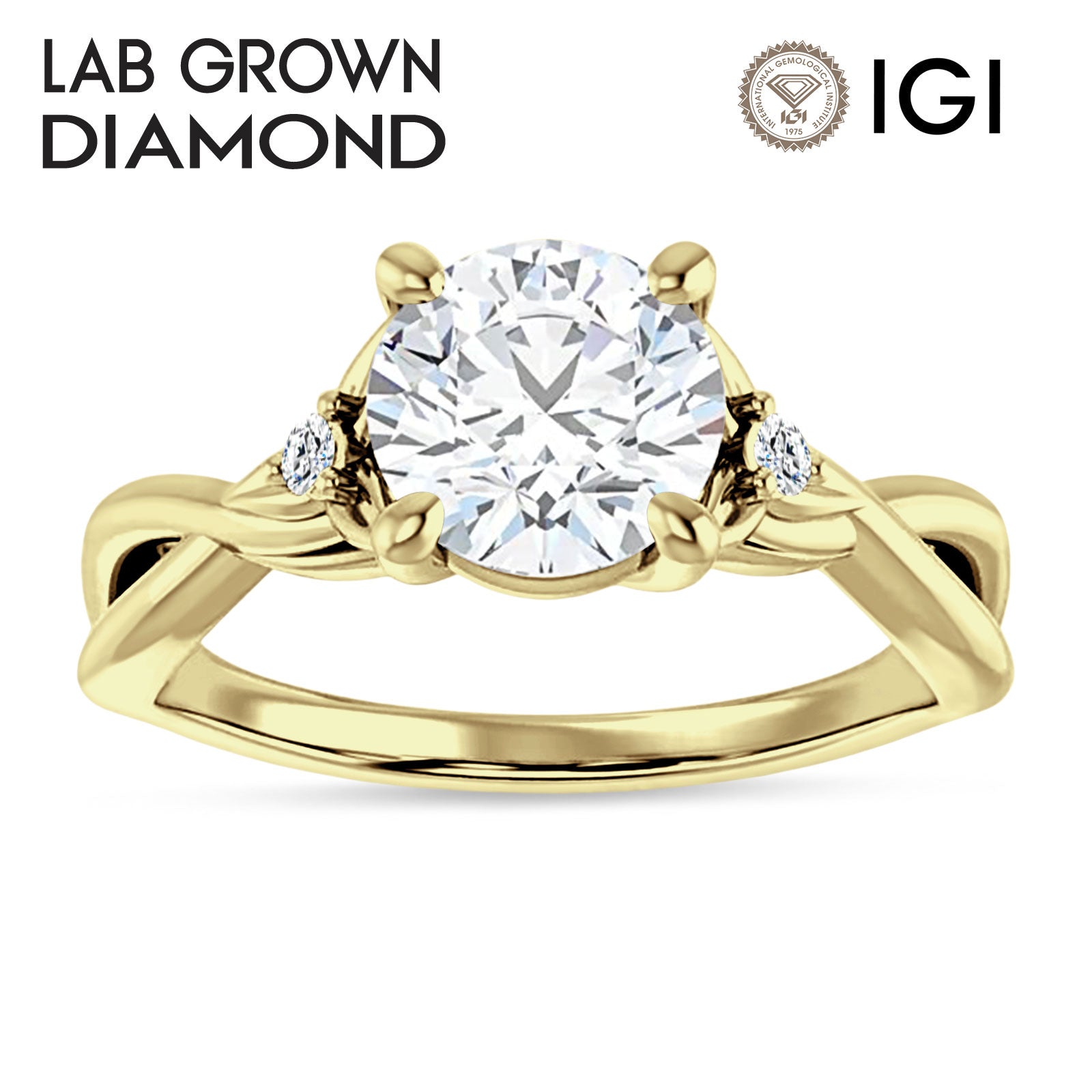 10K Gold IGI Certified Round 1 Carat Lab Grown Diamond Twisted Trio Ring