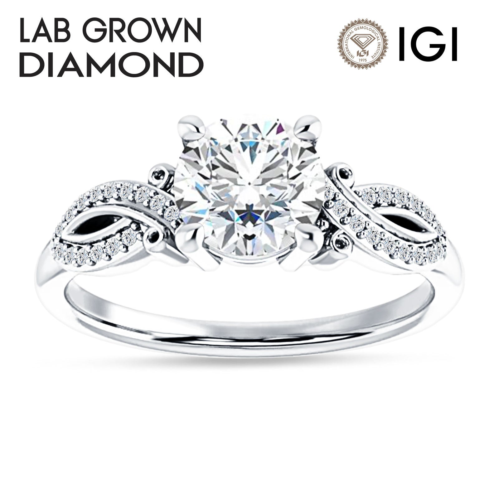 10K Gold IGI Certified Round 2 Carat Lab Grown Diamond Art Deco Cluster Twisted Ring
