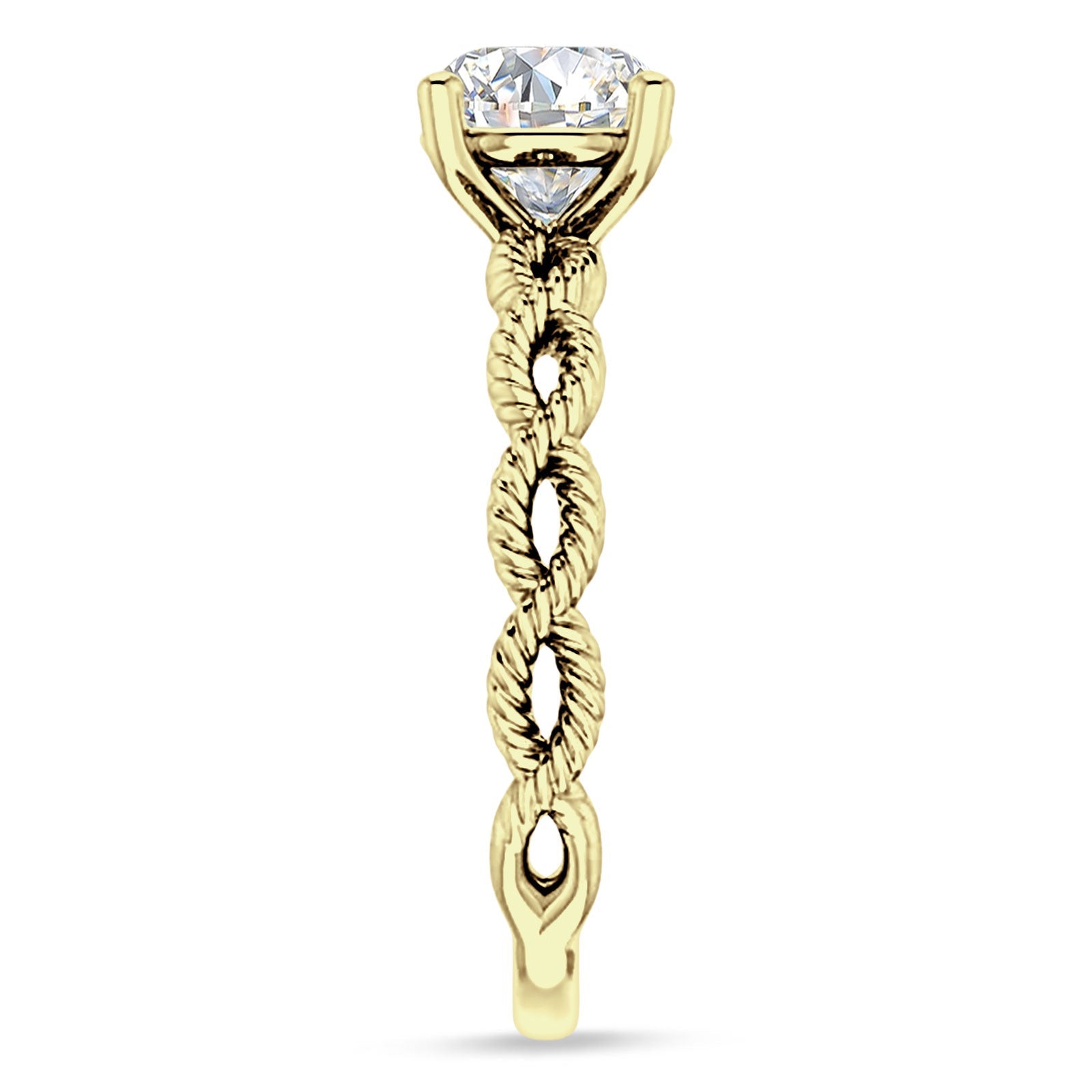 14K Gold IGI Certified Round 1 Carat Lab Grown Diamond Twisted Rope Solitaire Ring