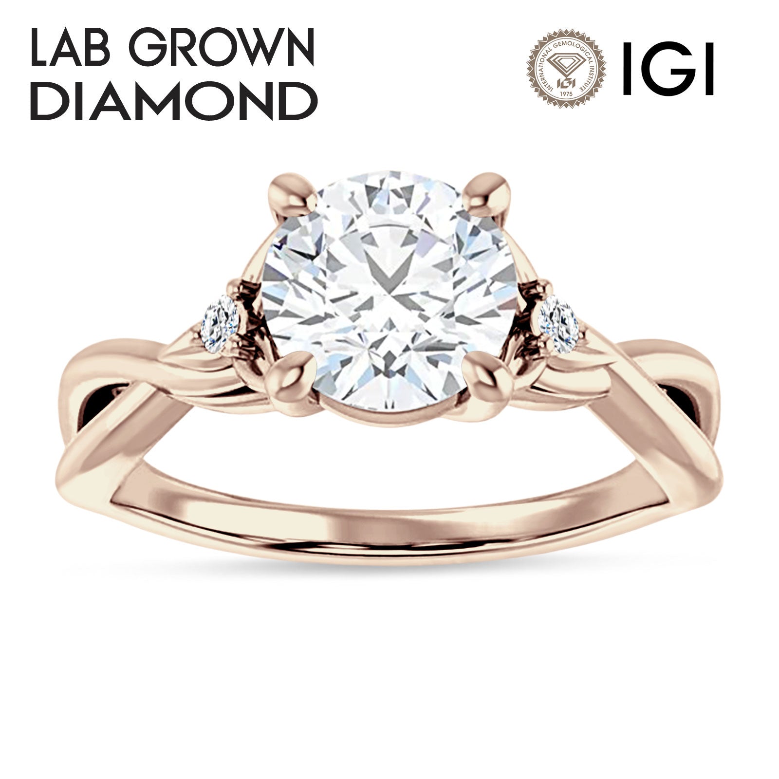 14K Gold IGI Certified Round 1 Carat Lab Grown Diamond Twisted Trio Ring