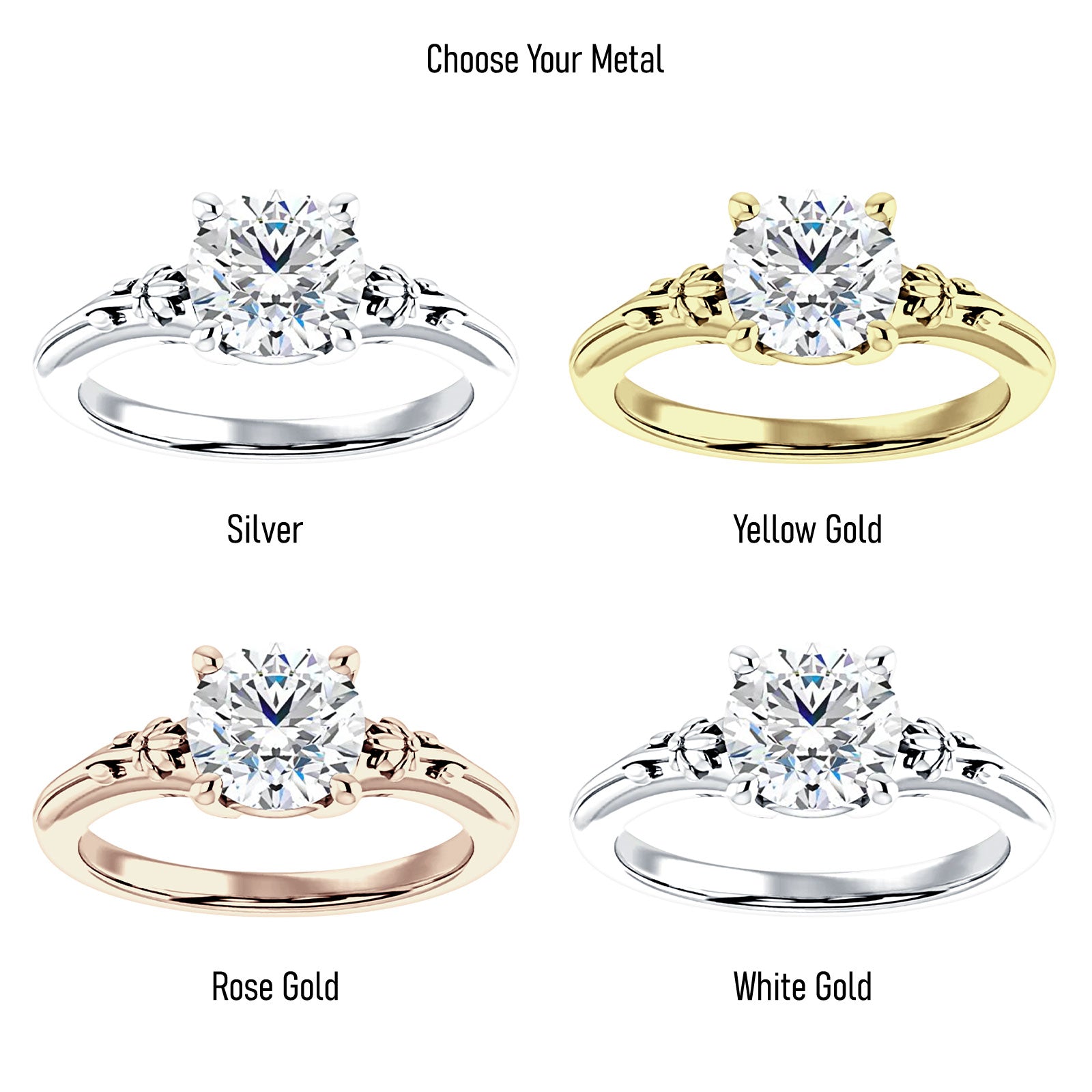 This lab grown diamond ring is available in three different carat weights and also comes in a choice of various metal types.(Tarnish Resistant Sterling Silver, 10K Gold & 18K Gold)