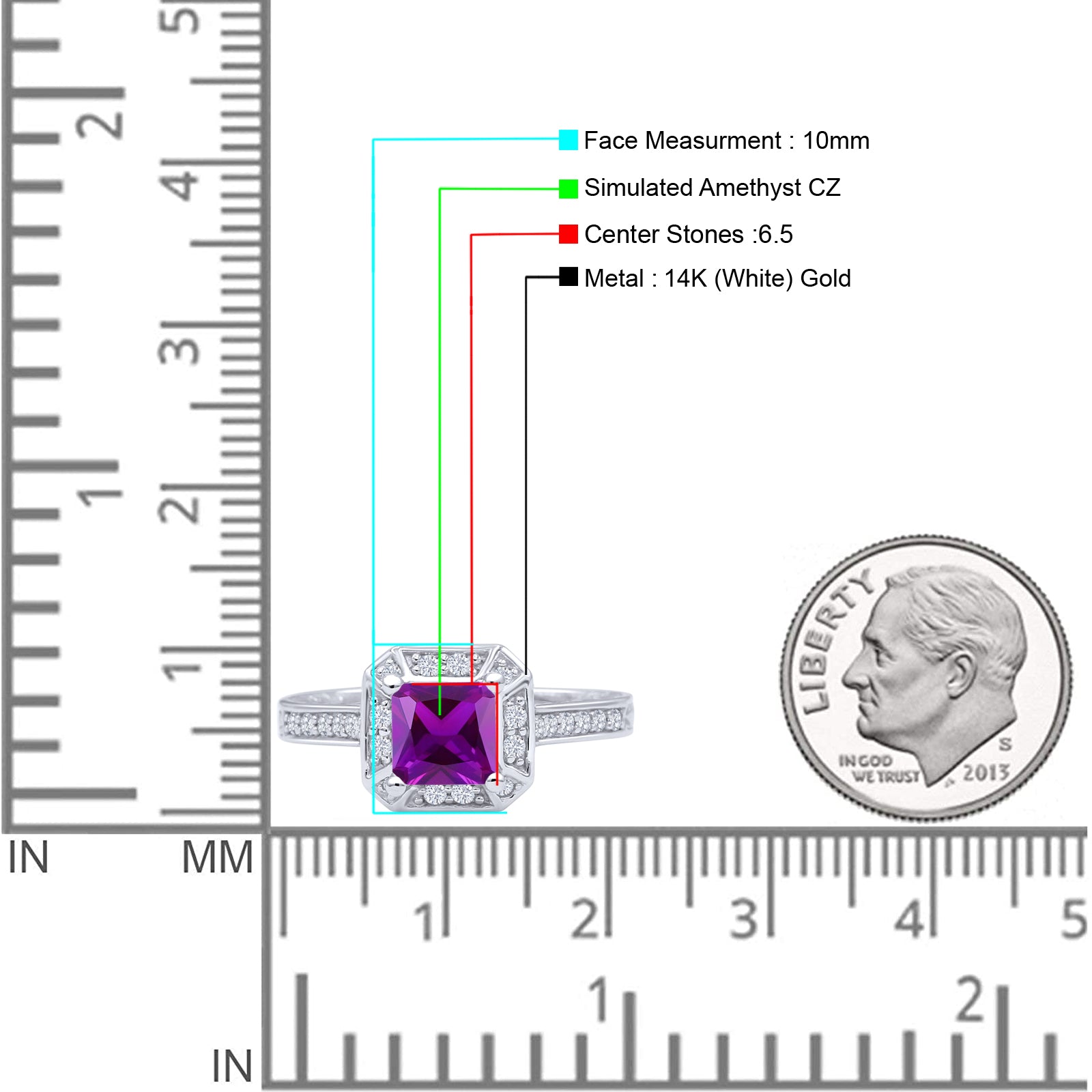 Amethyst CZ 14K White Gold
