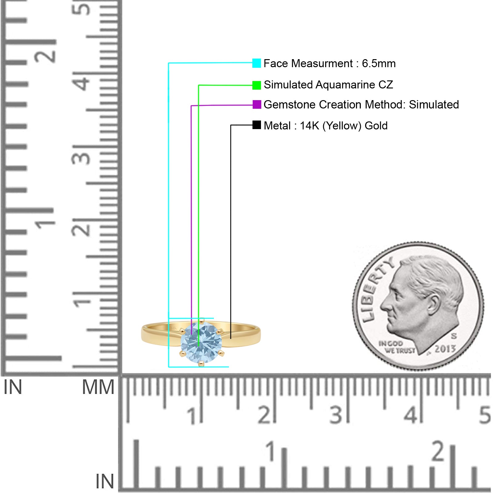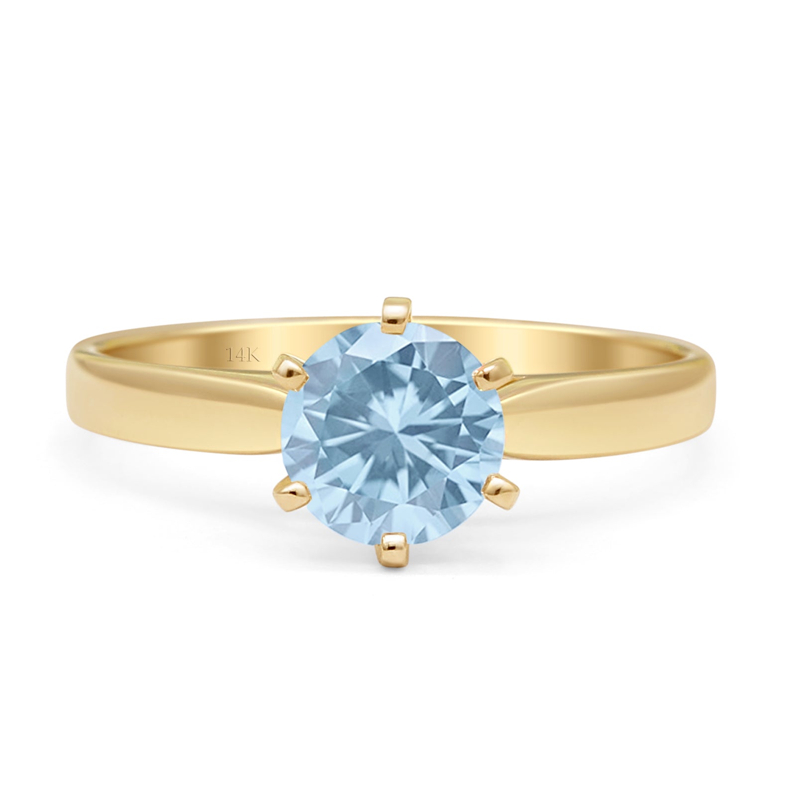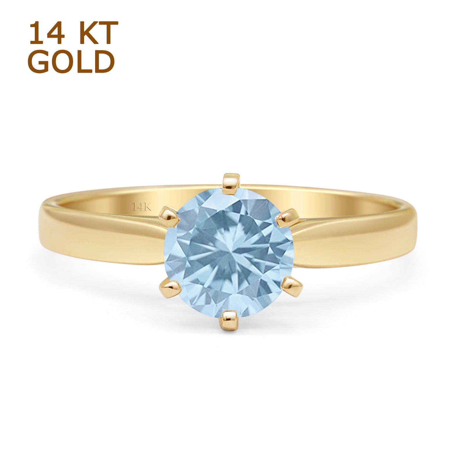 14K Yellow Gold Round Solitaire Aquamarine CZ Art Deco Ring