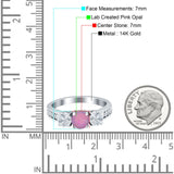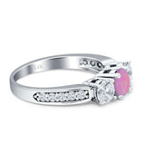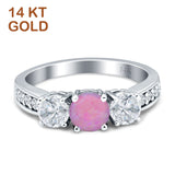 14K Yellow Gold Three Stone Round Lab Created Pink Opal Ring