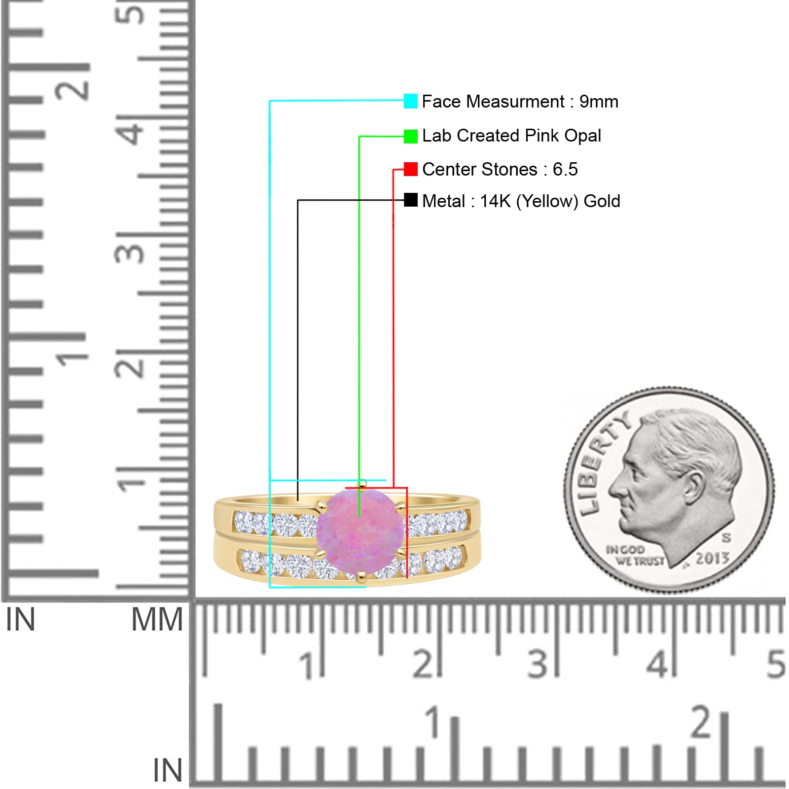 14K Yellow Gold Two Piece Half Eternity Round Lab Created Pink Opal Cathedral Ring