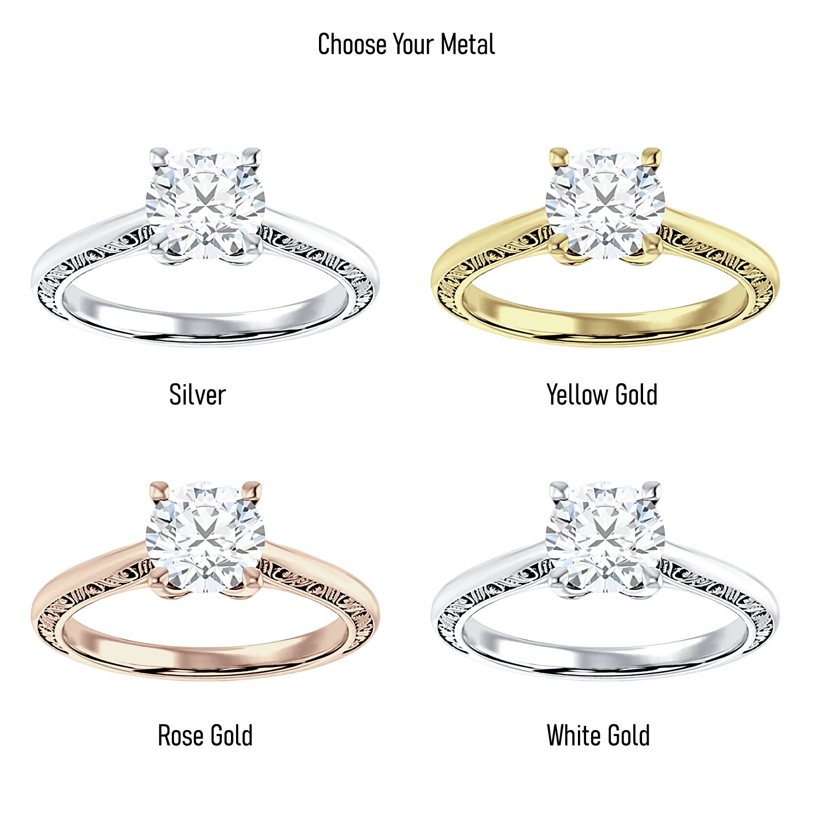 This lab grown diamond ring is available in three different carat weights and also comes in a choice of various metal types.(Tarnish Resistant Sterling Silver, 10K Gold & 14K Gold)
