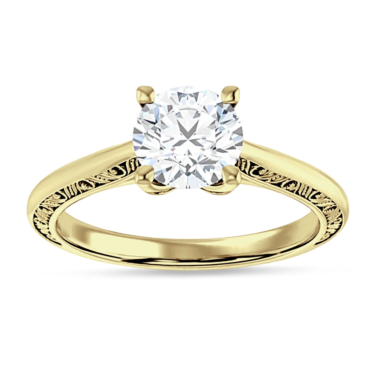 18K Gold IGI Certified Round 1 Carat Lab Grown Diamond Art Deco Filigree Solitaire Ring