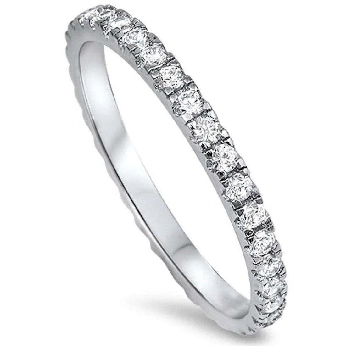Full Eternity Stackable Wedding Band Ring Round 925 Sterling Silver