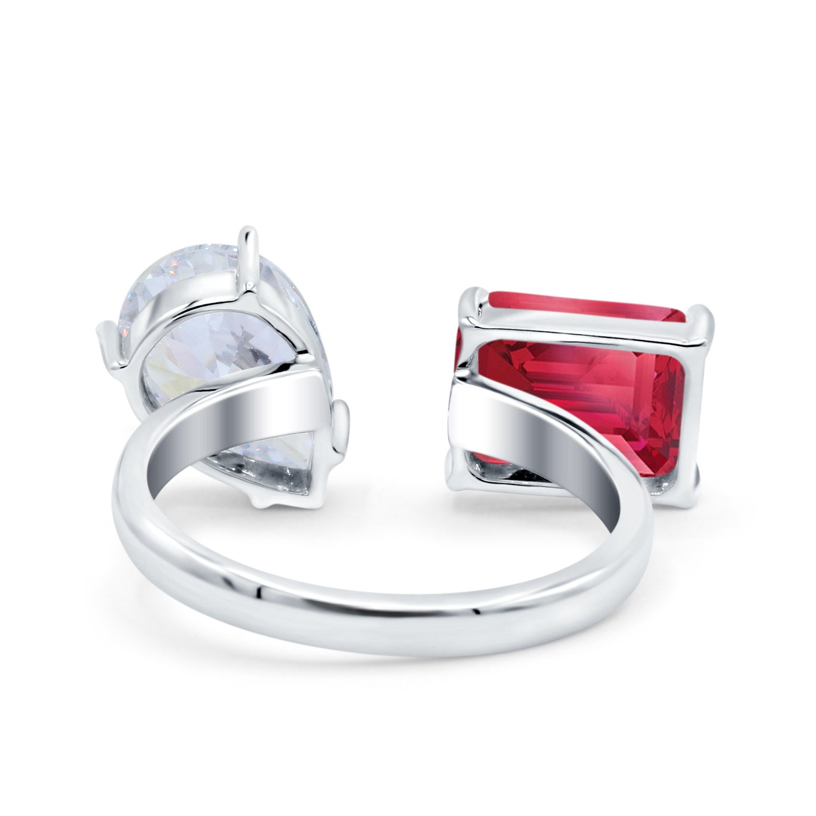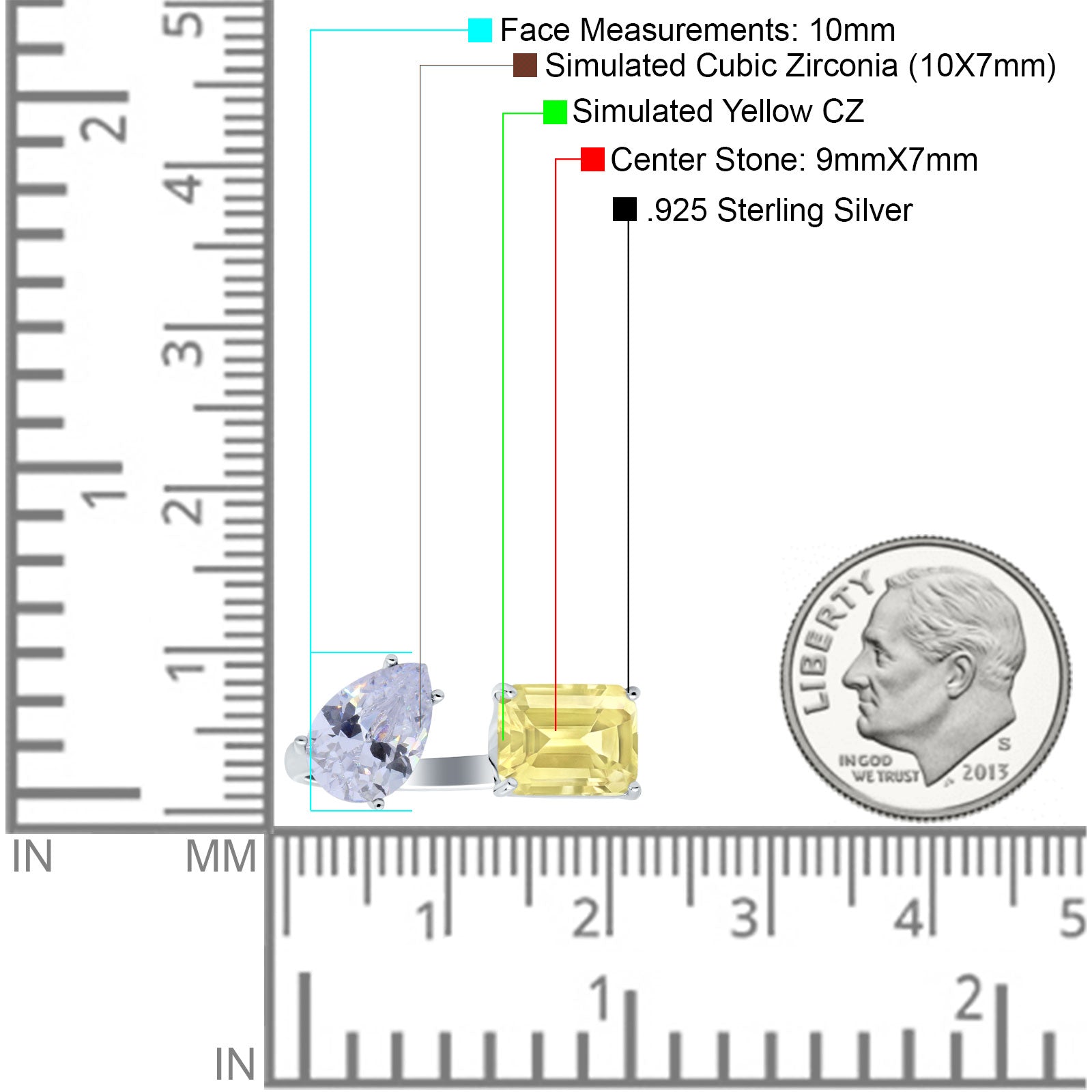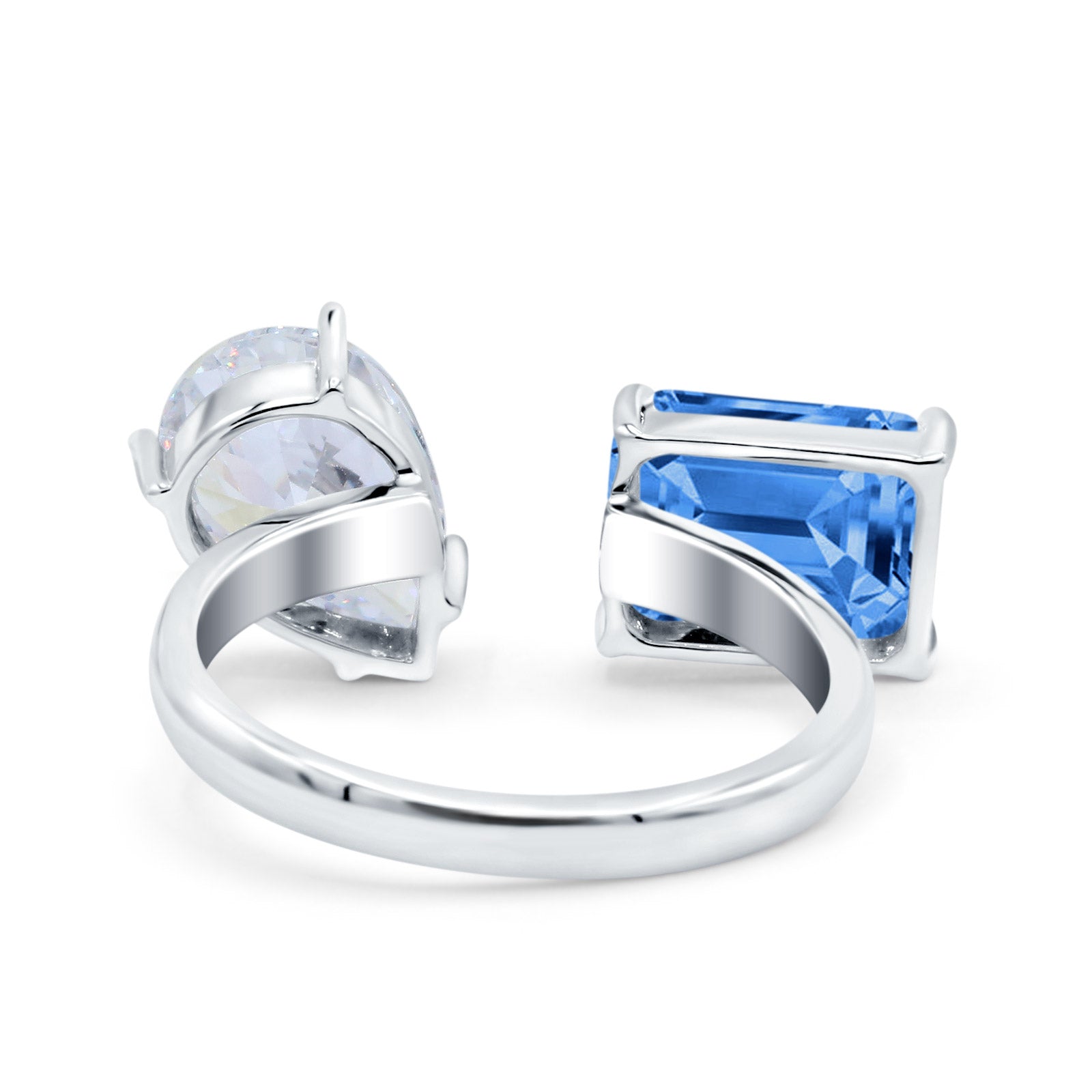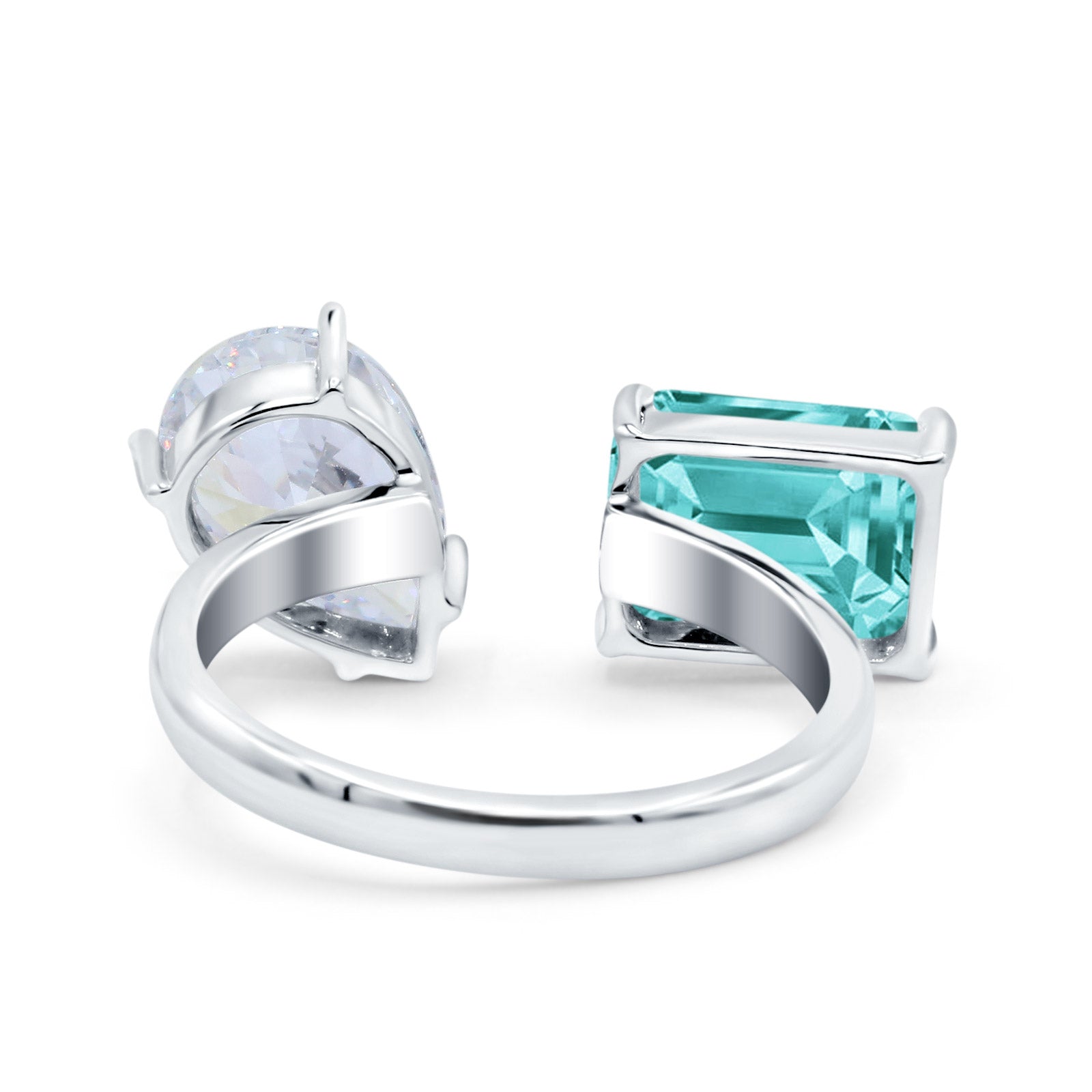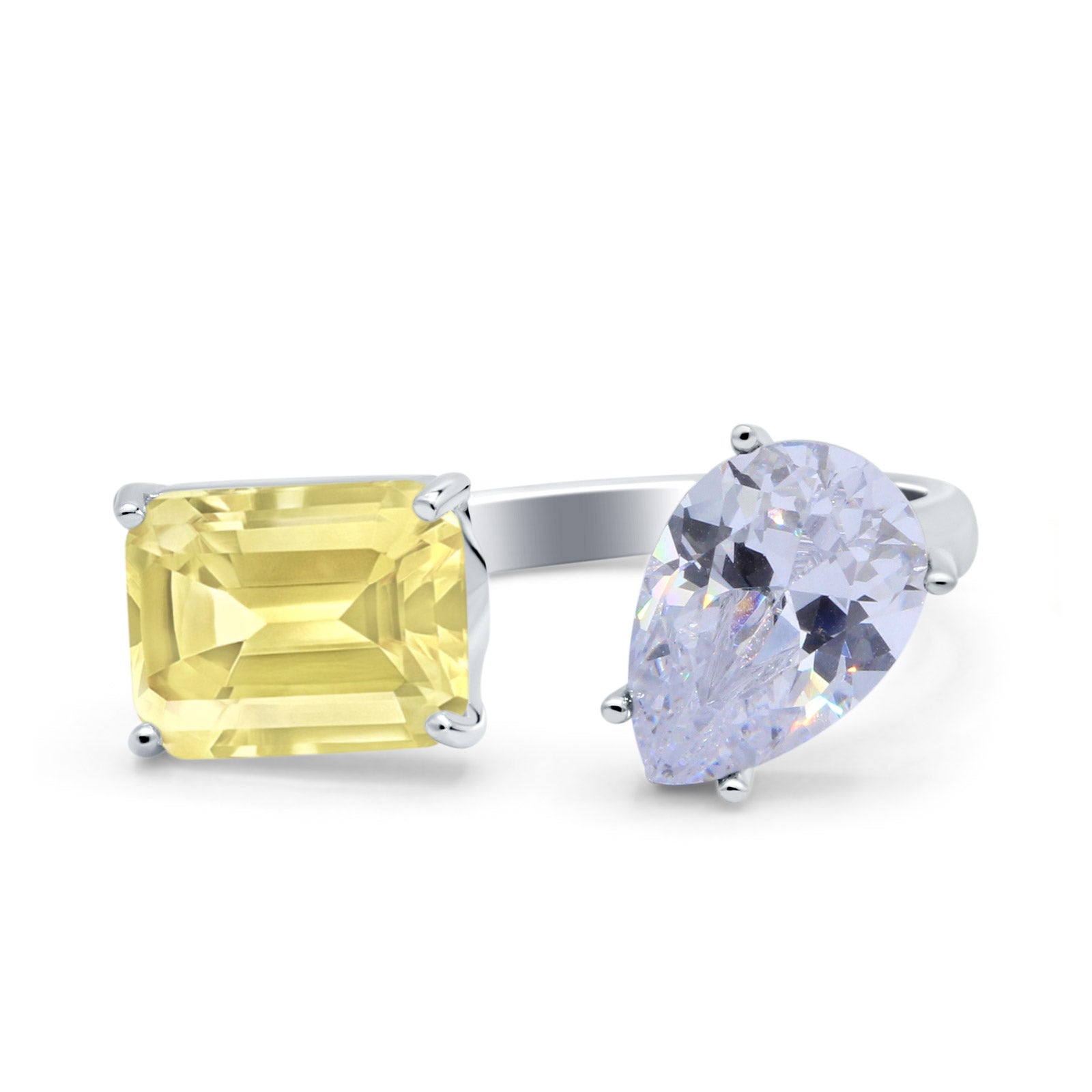 925 Sterling Silver Ring Open Teardrop Pear Emerald Cut CZ Wedding Engagement Bridal Anniversary Cocktail Ring