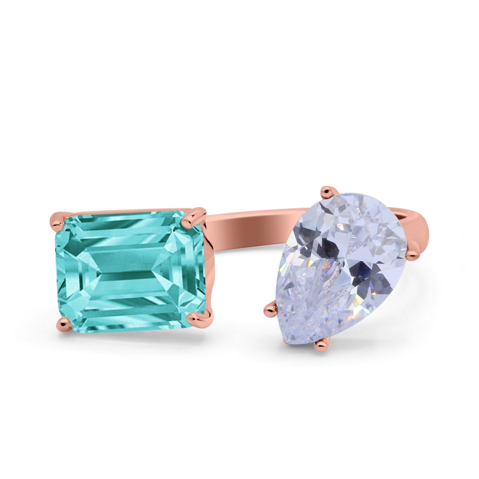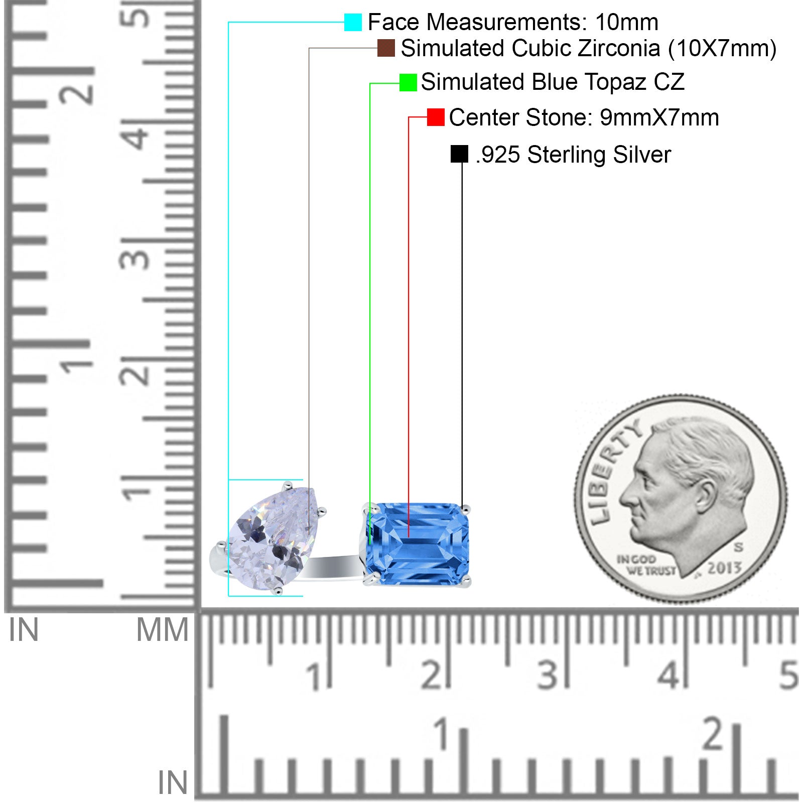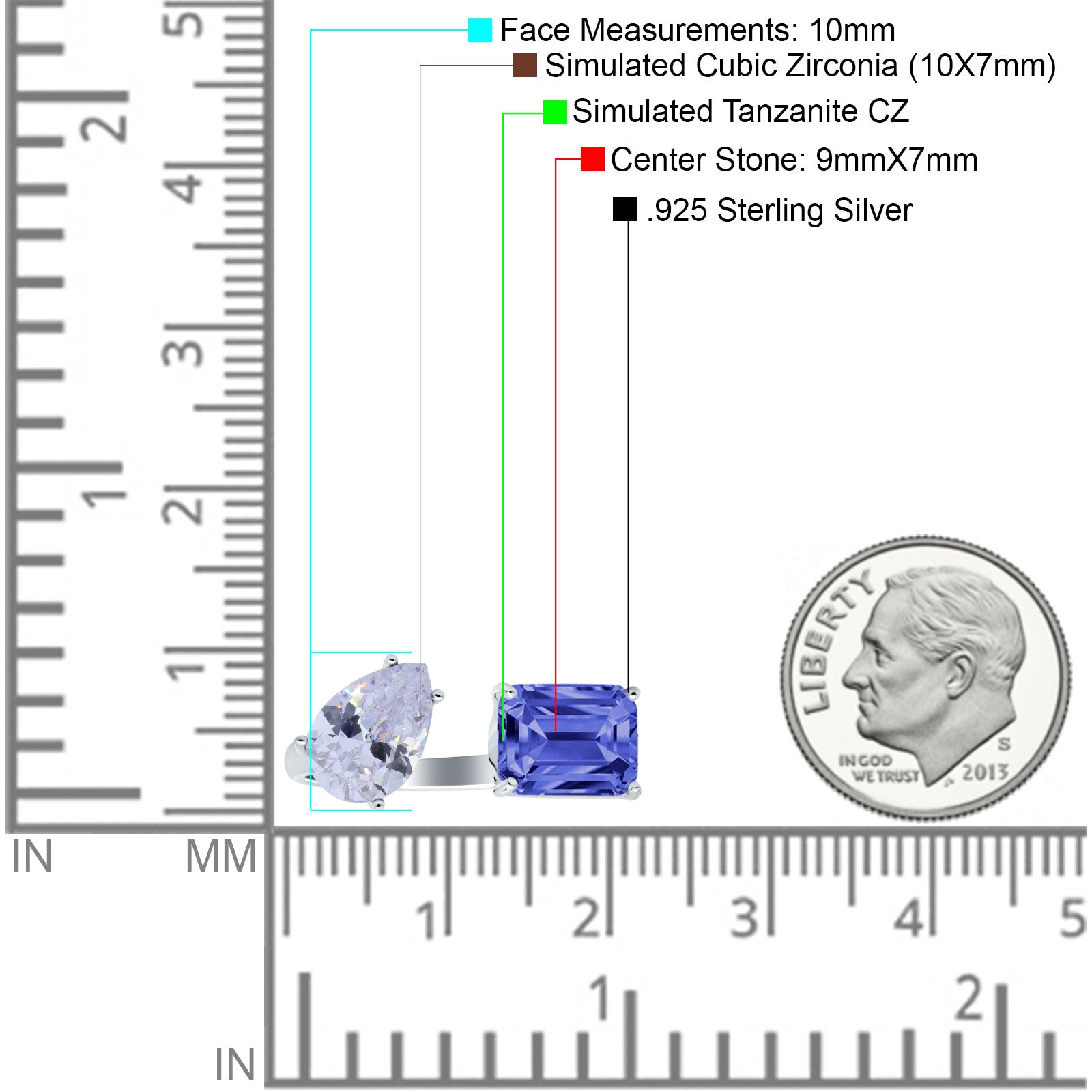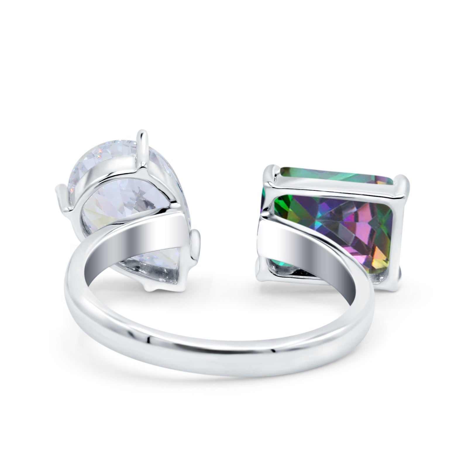 925 Sterling Silver Ring Open Teardrop Pear Emerald Cut CZ Wedding Engagement Bridal Anniversary Cocktail Ring
