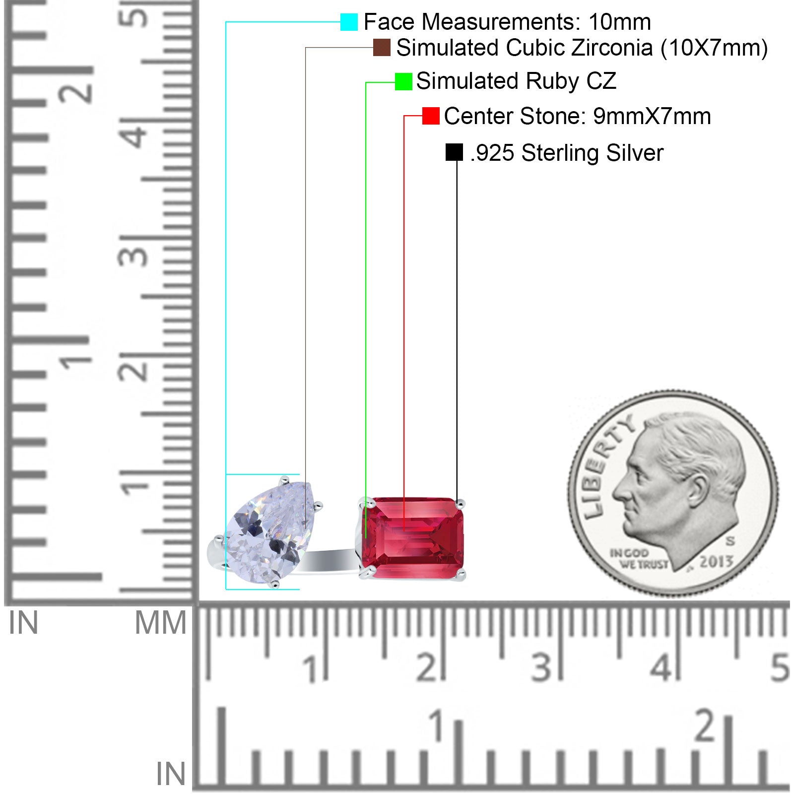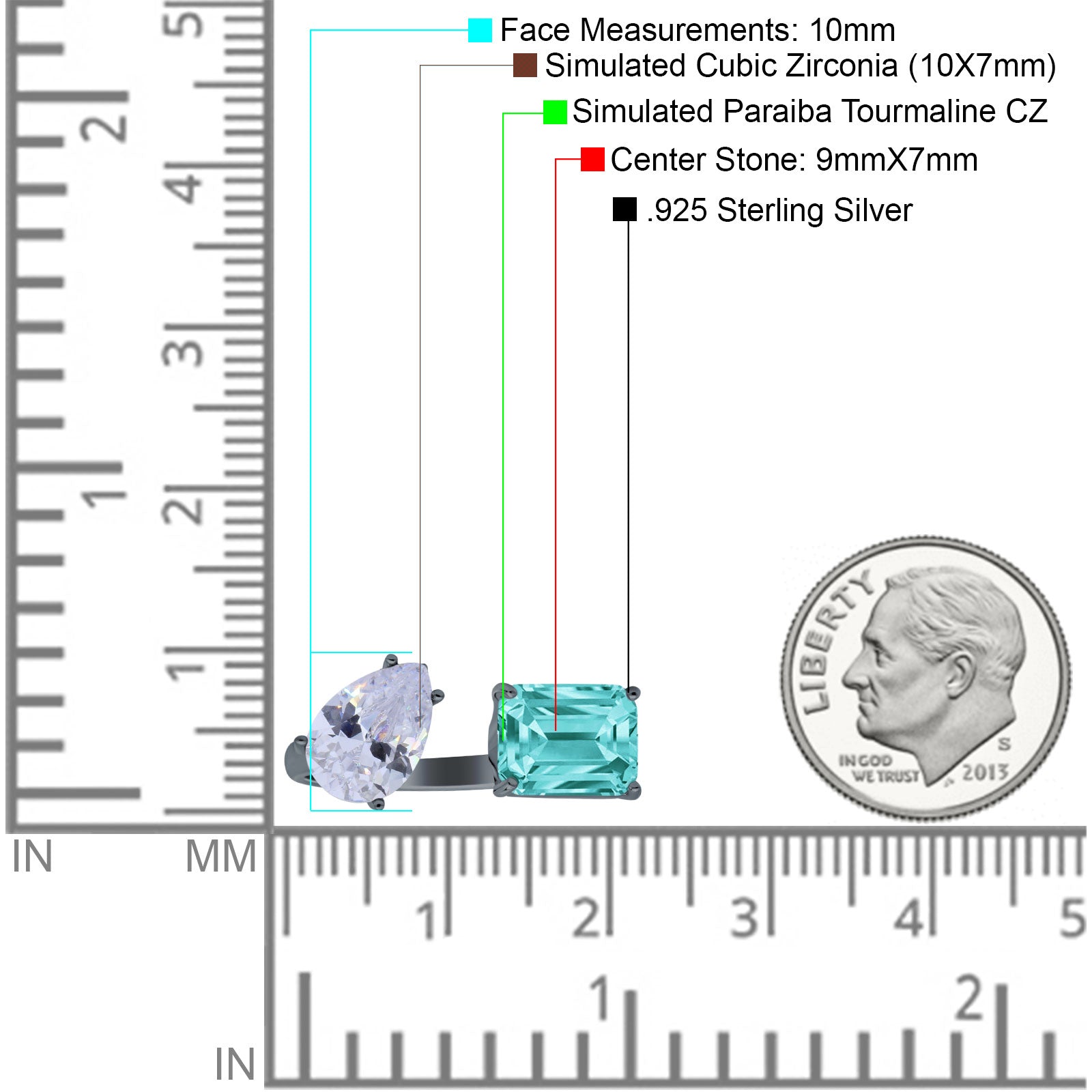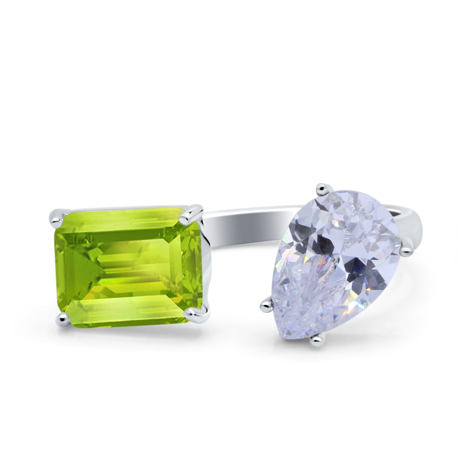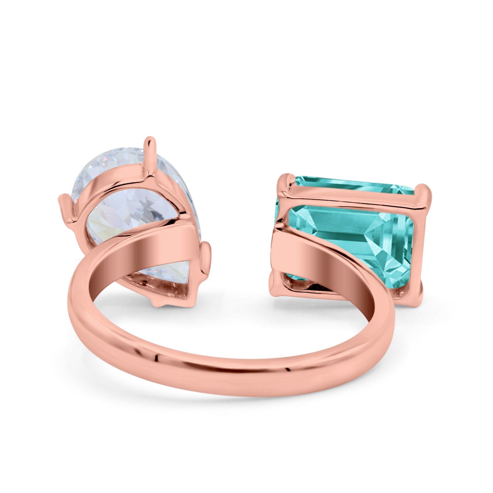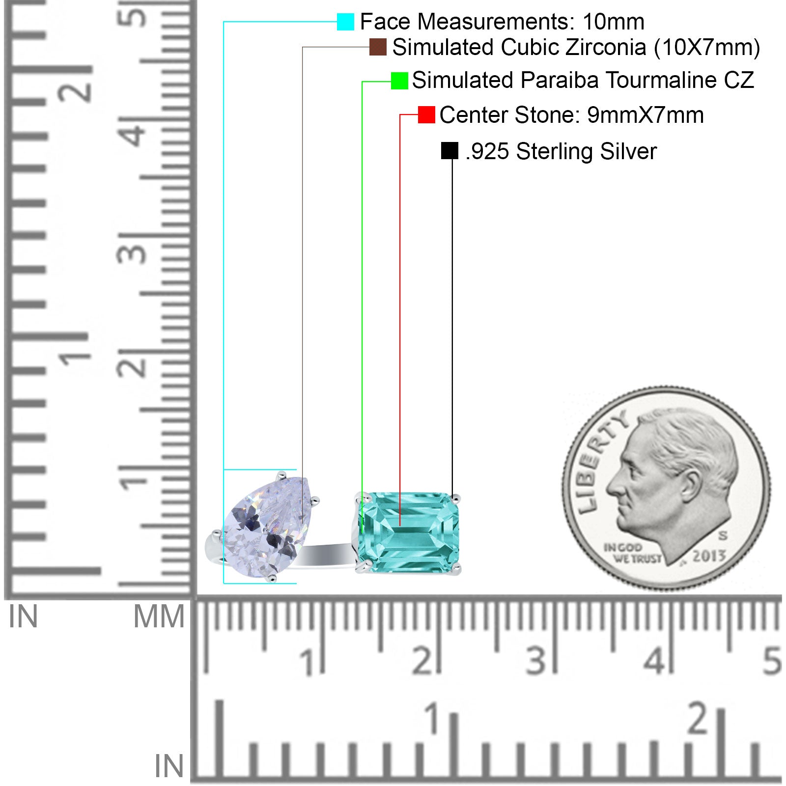 925 Sterling Silver Ring Open Teardrop Pear Emerald Cut CZ Wedding Engagement Bridal Anniversary Cocktail Ring