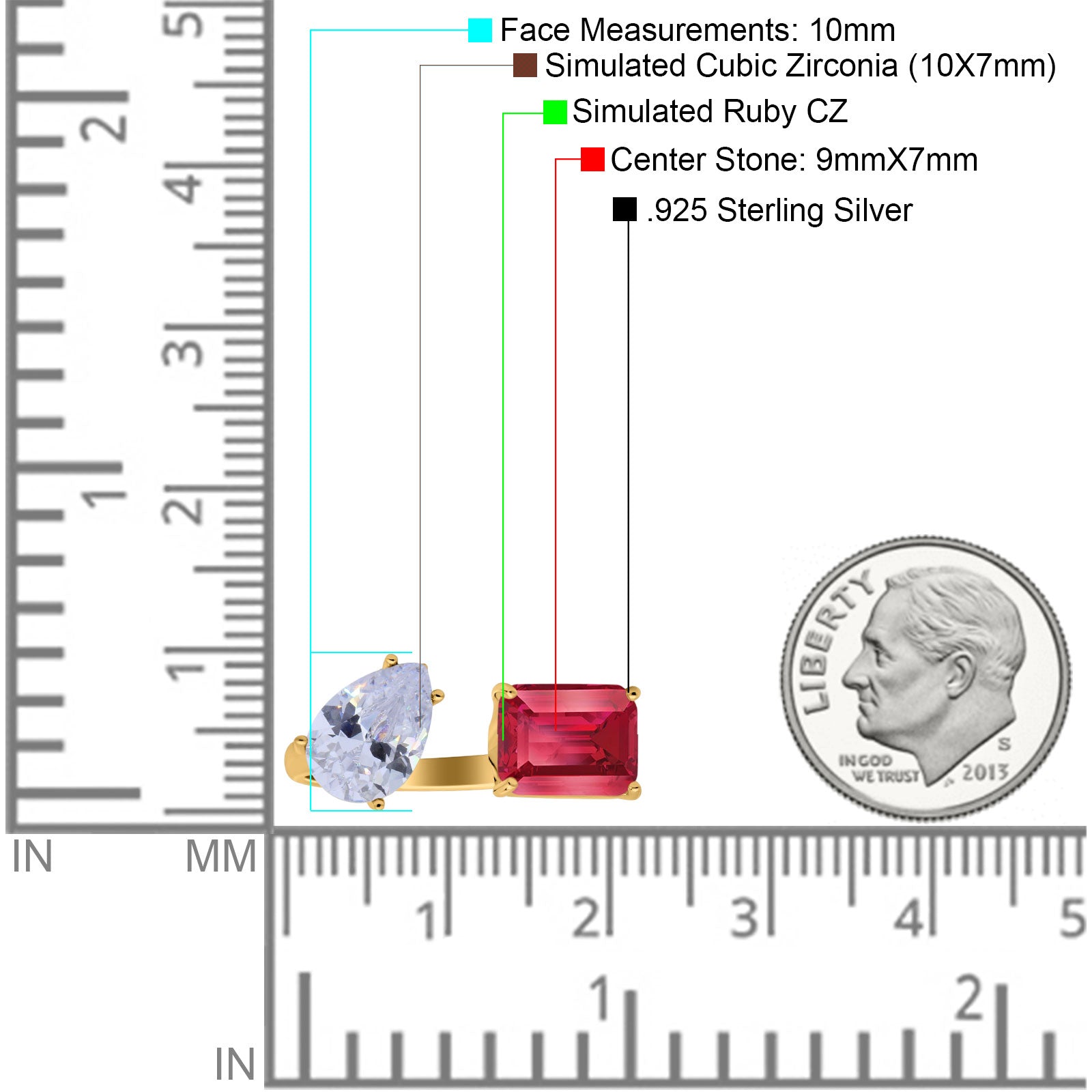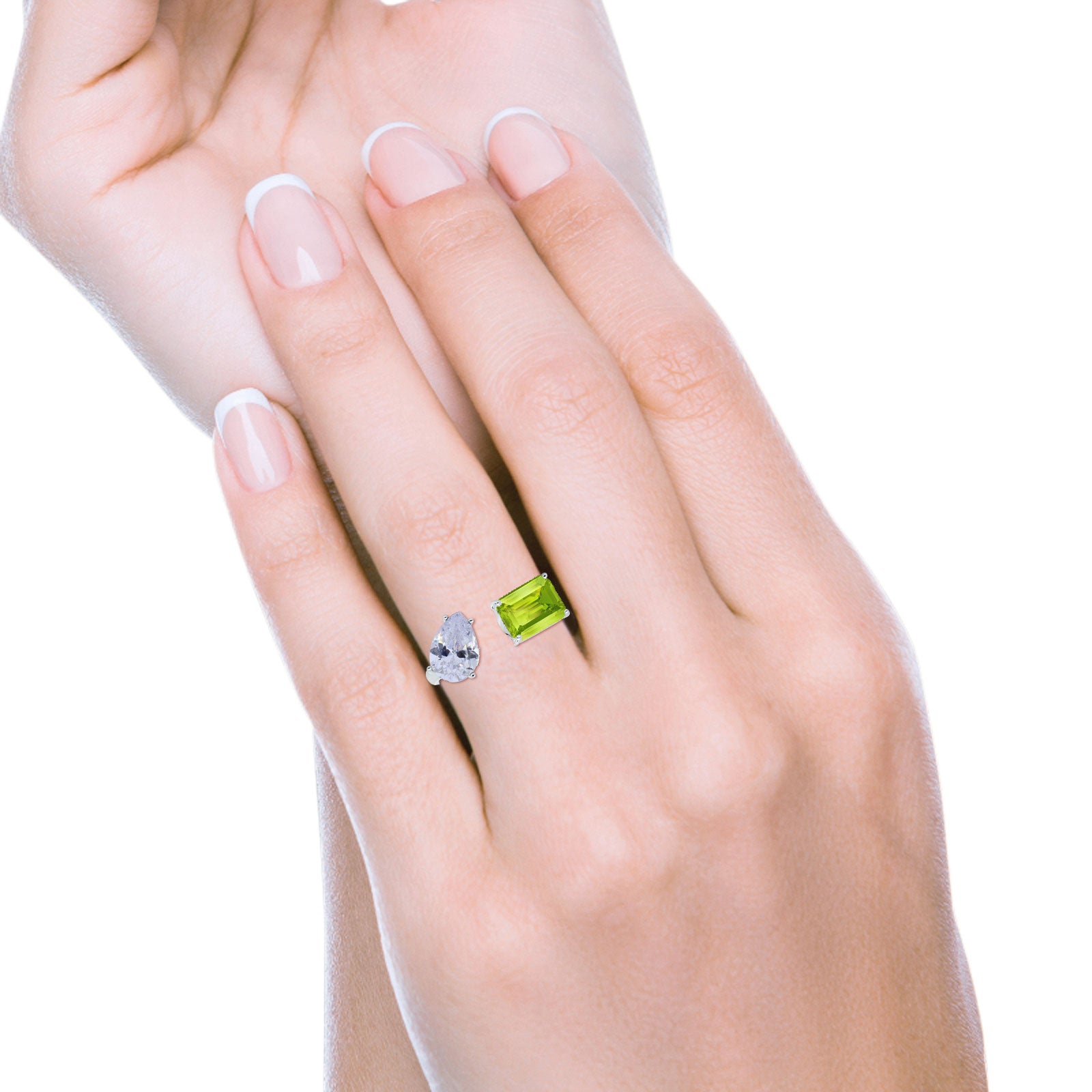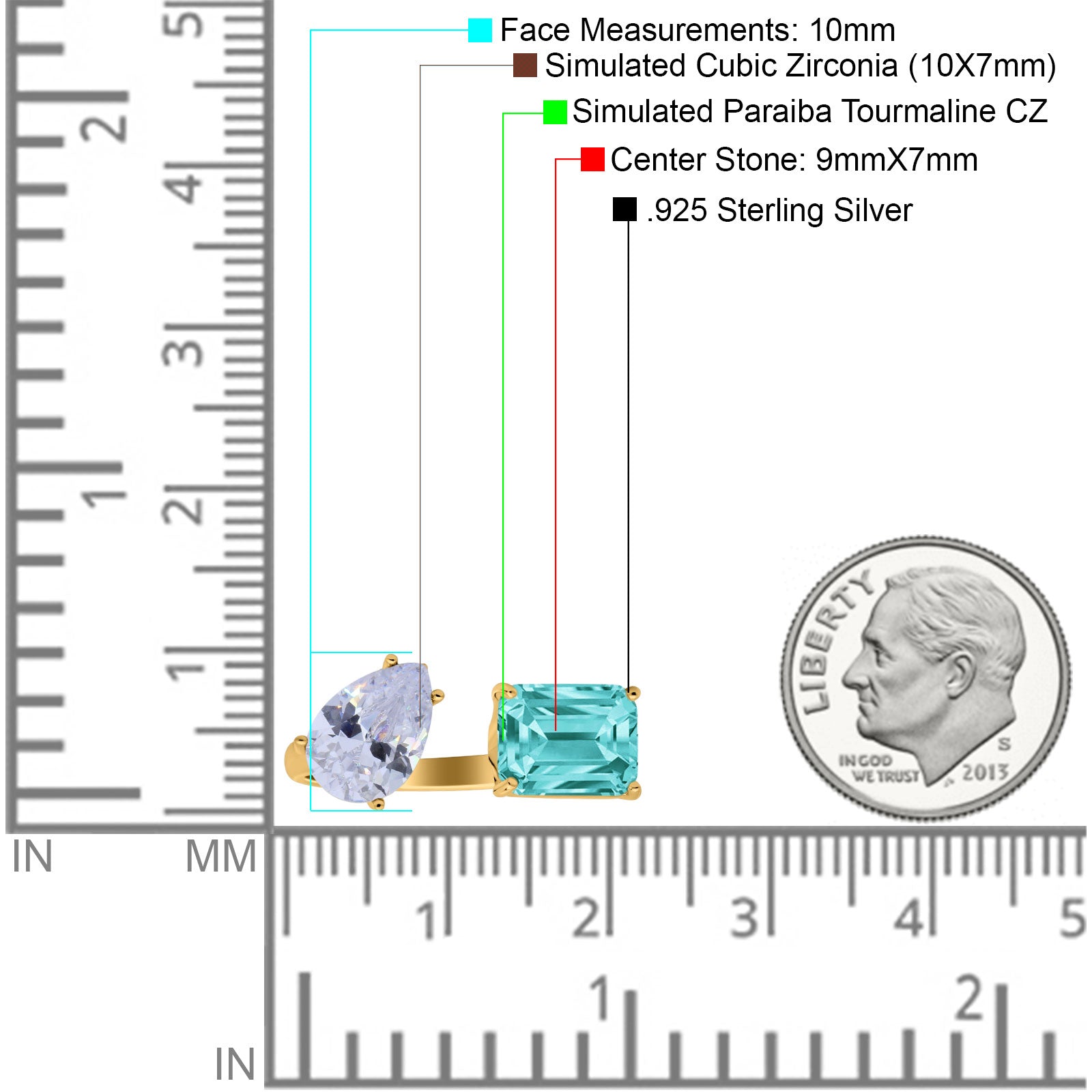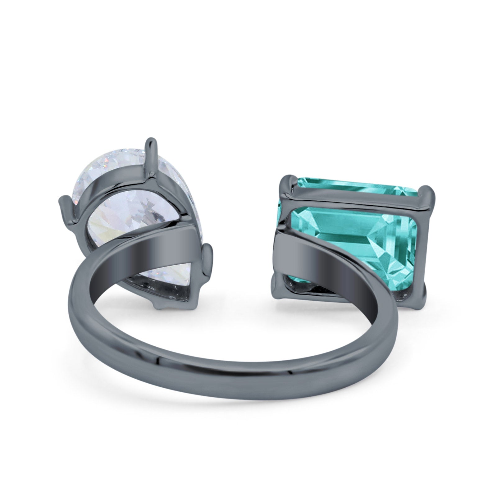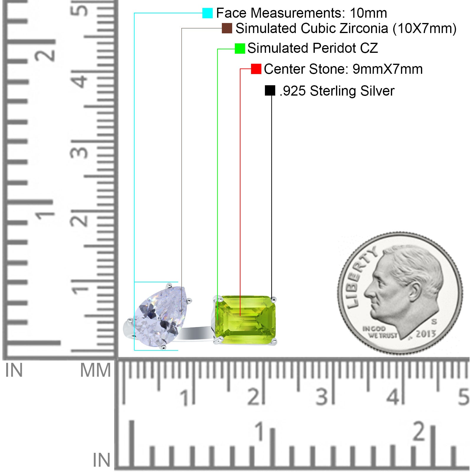 925 Sterling Silver Ring Open Teardrop Pear Emerald Cut CZ Wedding Engagement Bridal Anniversary Cocktail Ring