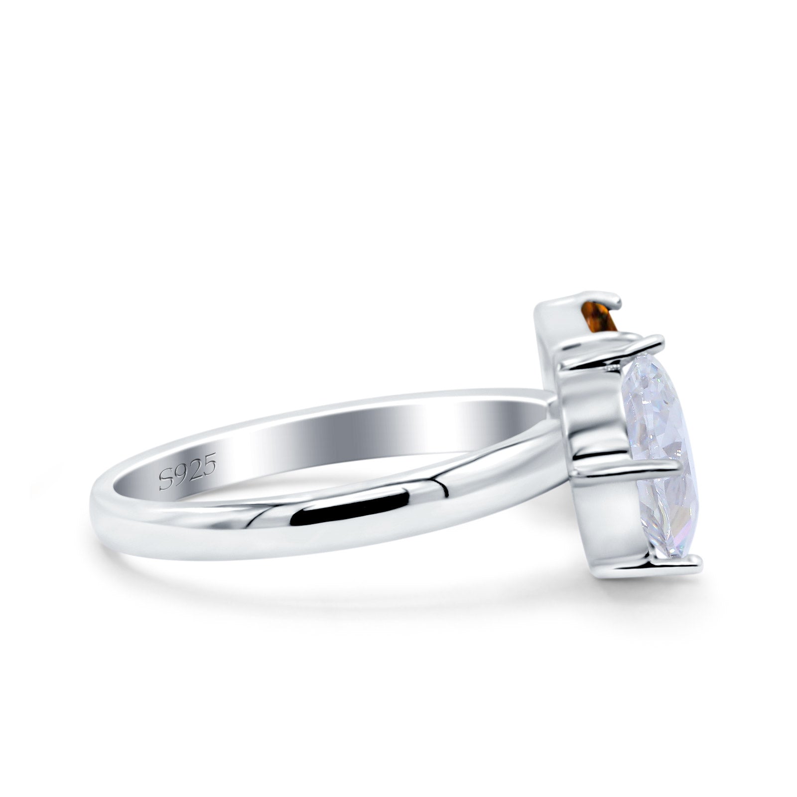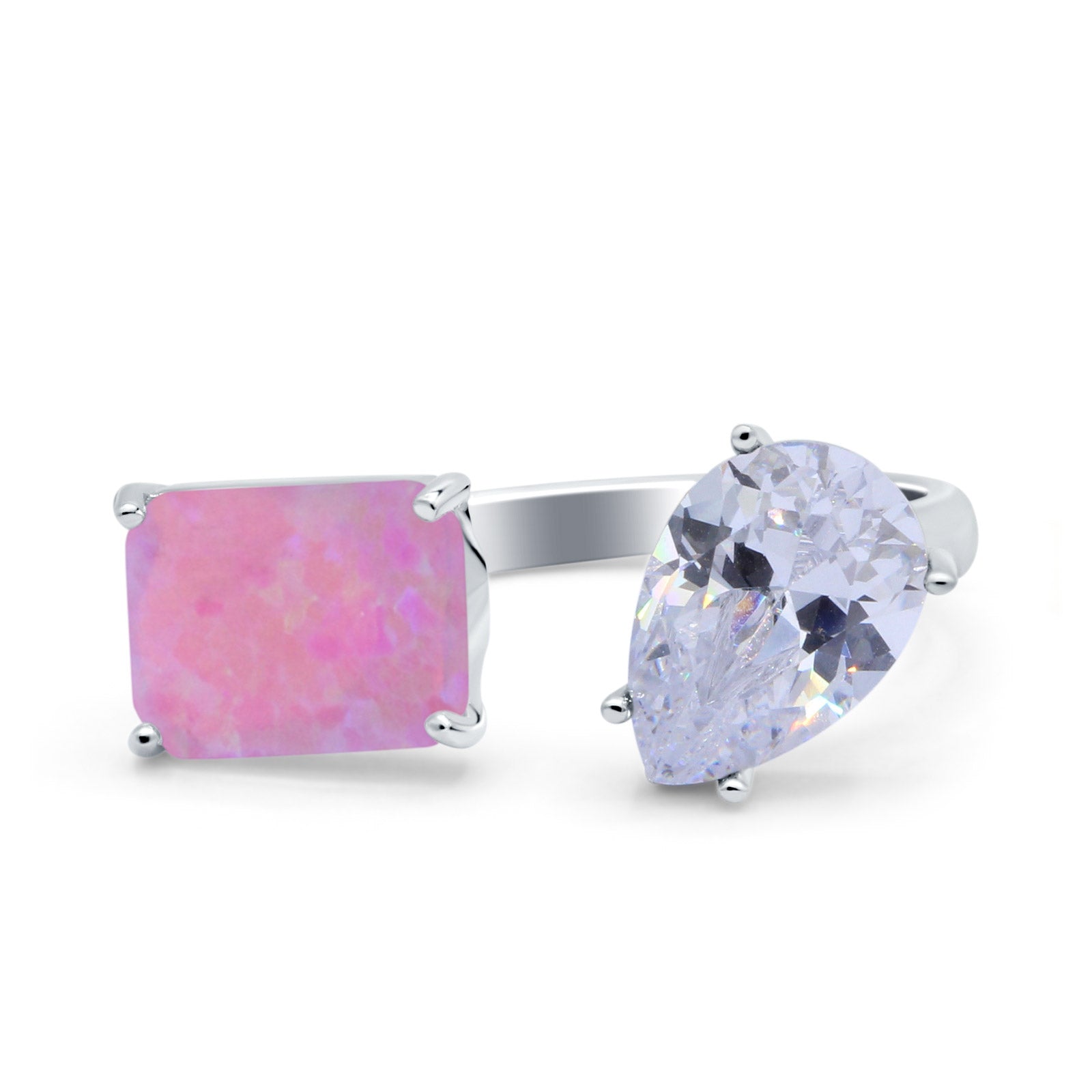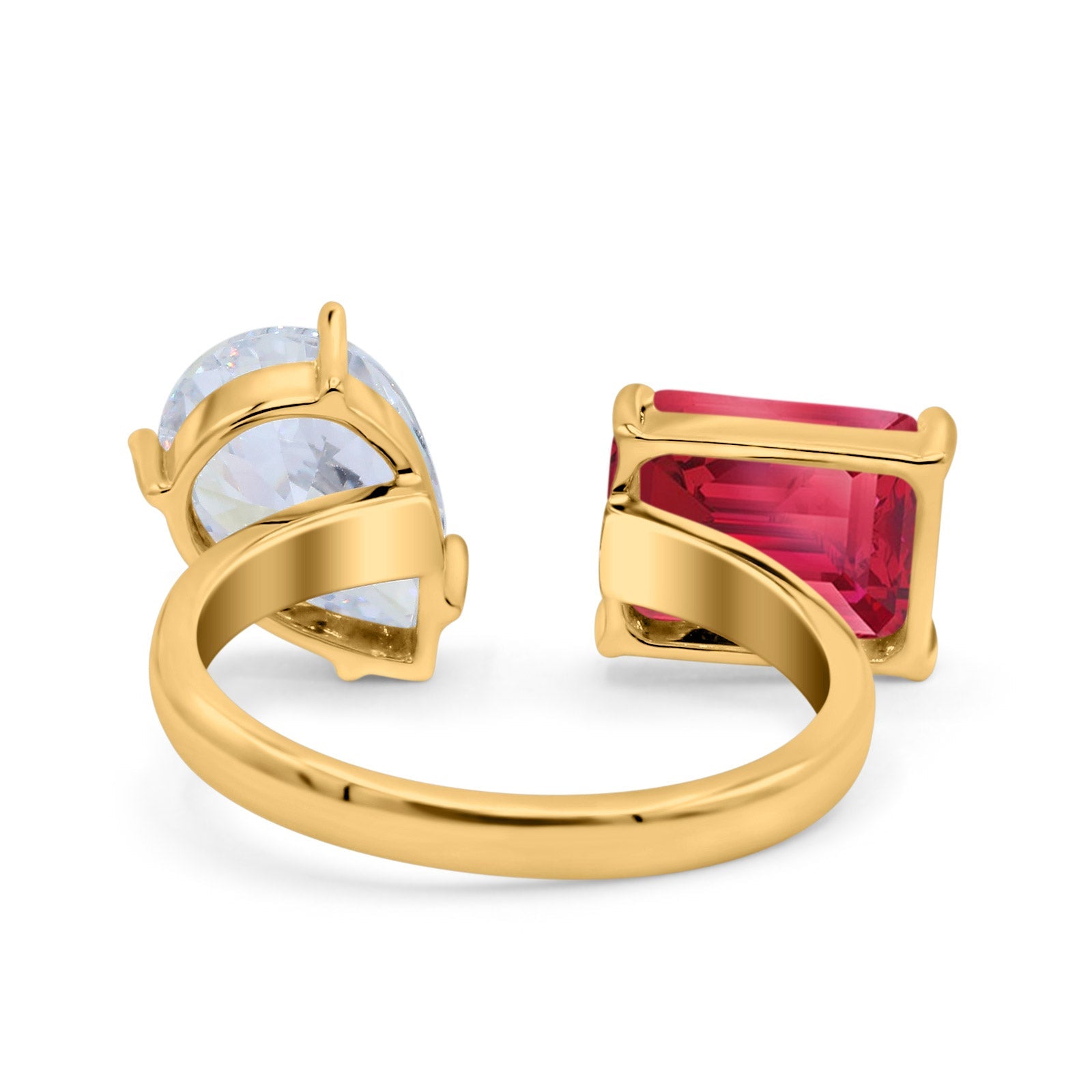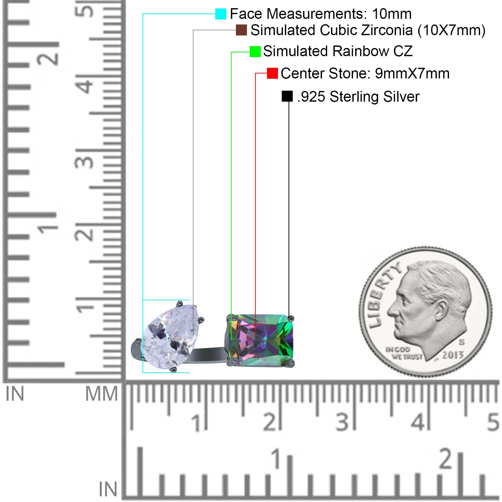 925 Sterling Silver Ring Open Teardrop Pear Emerald Cut CZ Wedding Engagement Bridal Anniversary Cocktail Ring