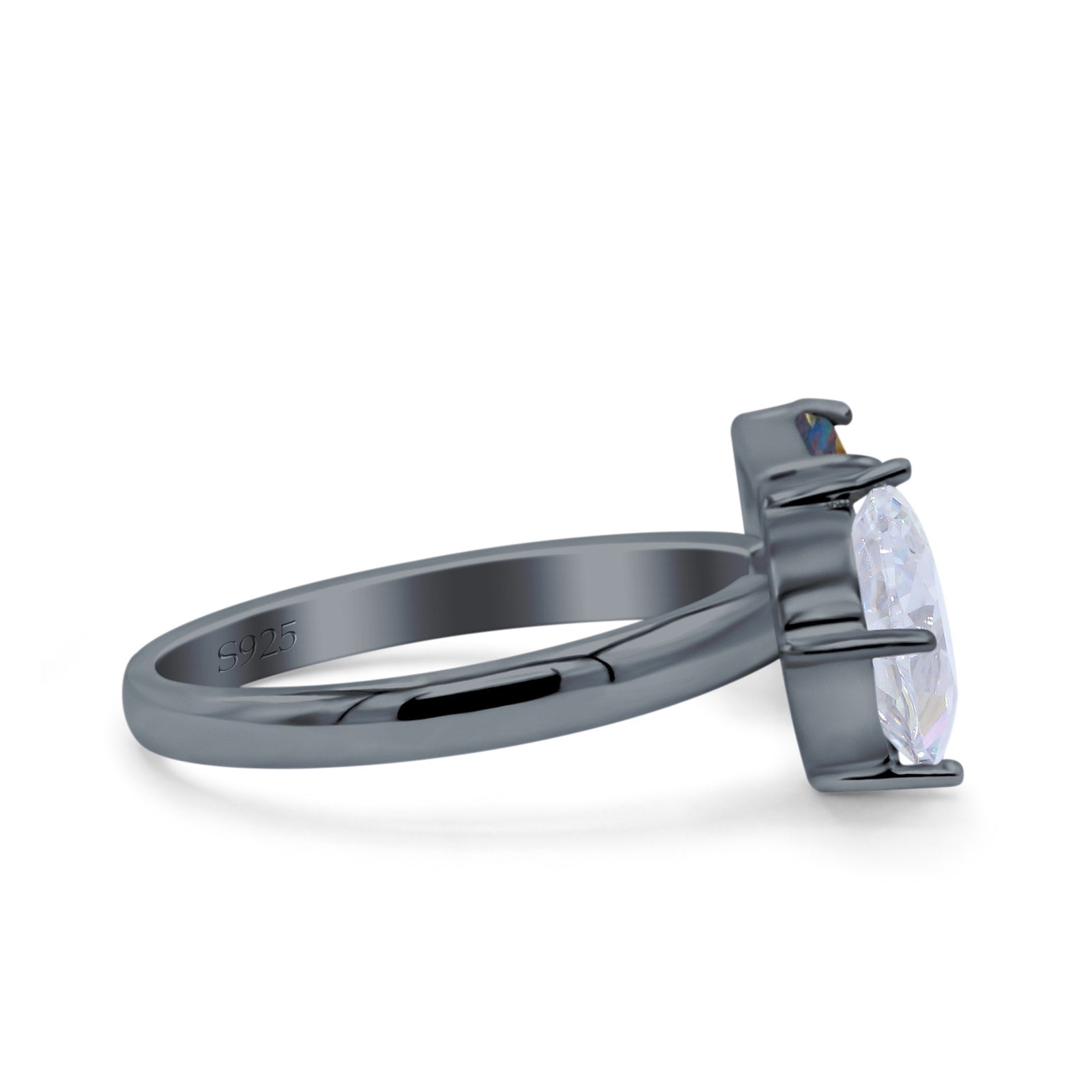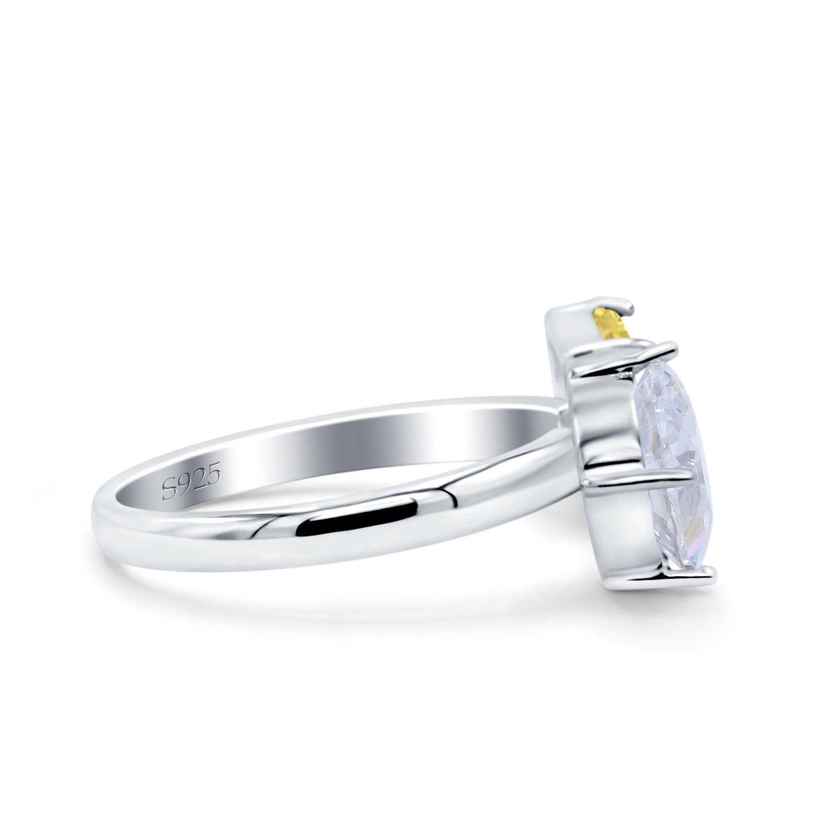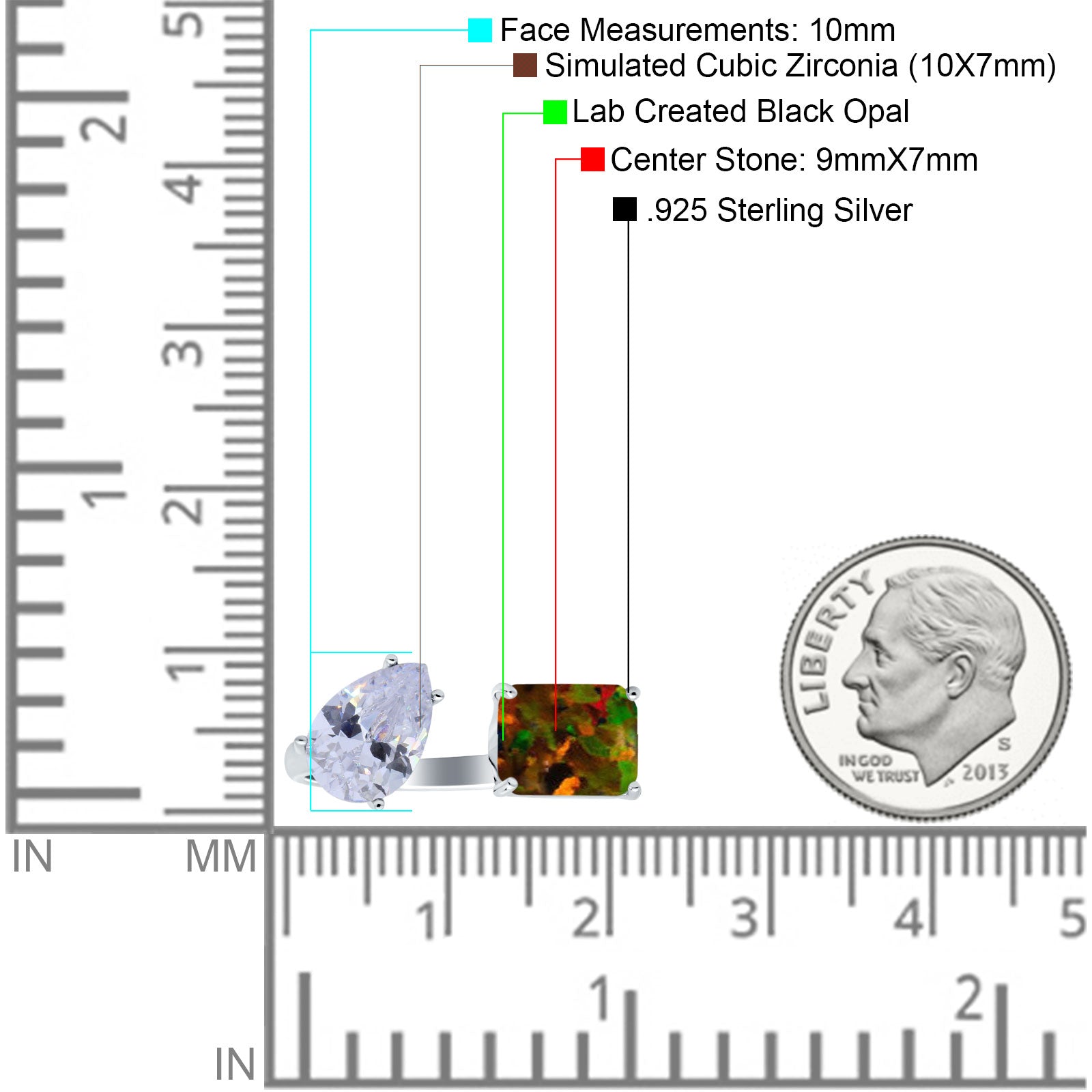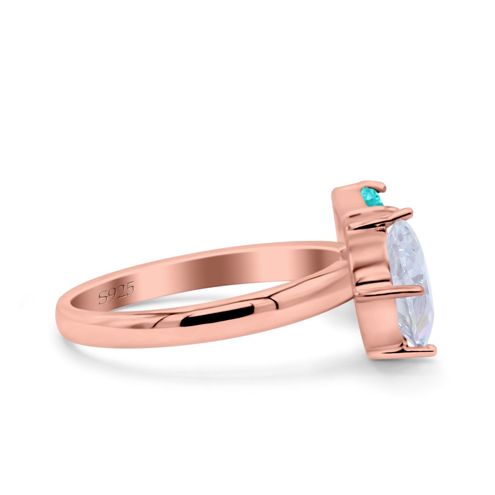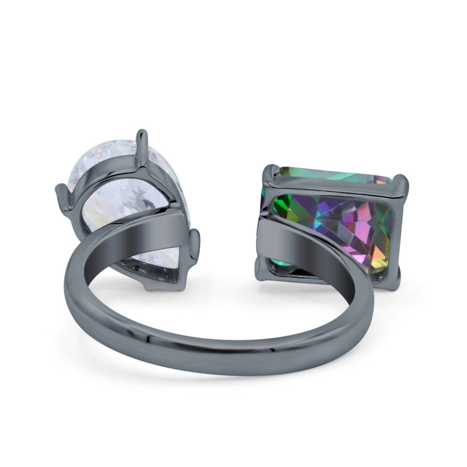925 Sterling Silver Ring Open Teardrop Pear Emerald Cut CZ Wedding Engagement Bridal Anniversary Cocktail Ring