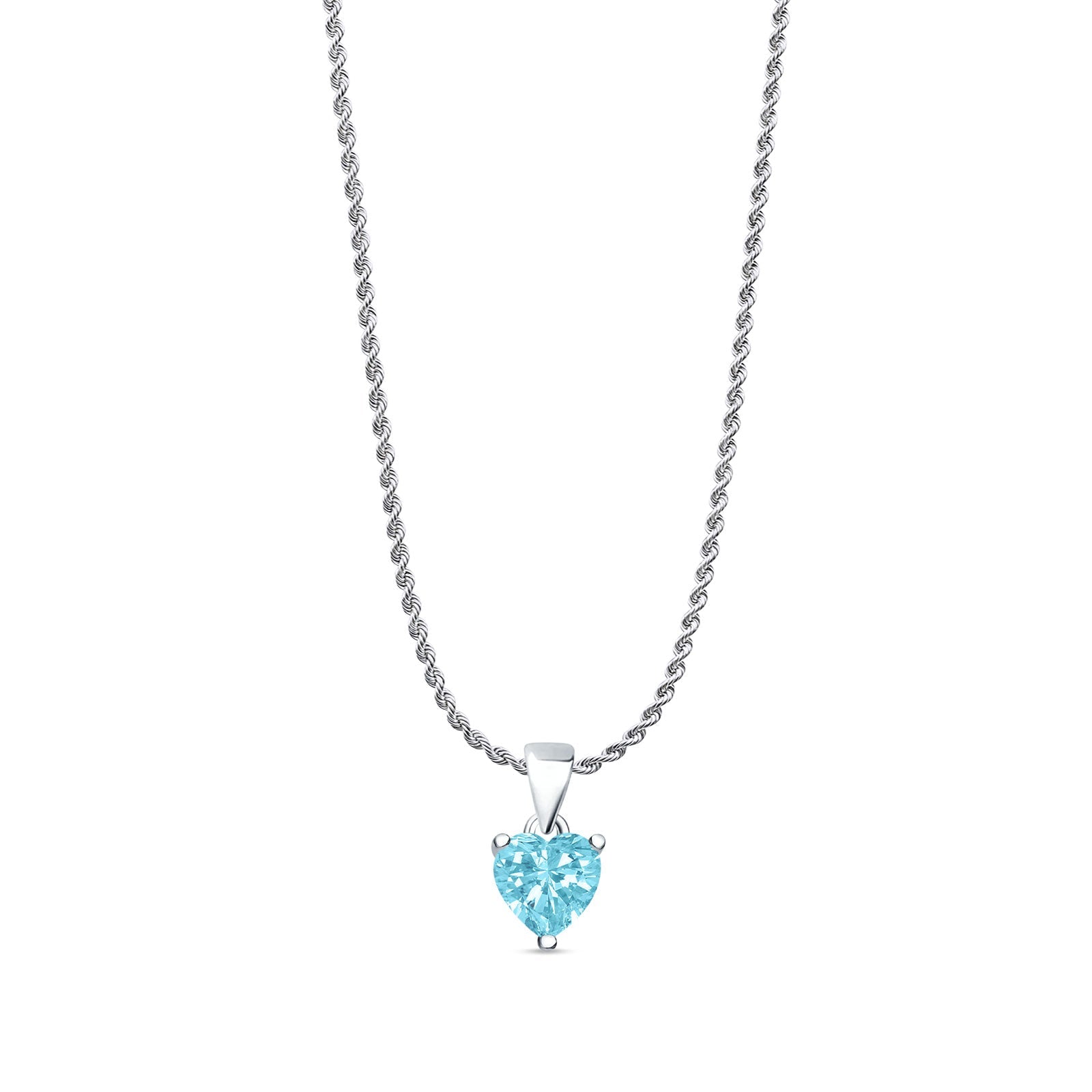 Aquamarine CZ Heart Pendant Rope Chain Necklace 925 Sterling Silver