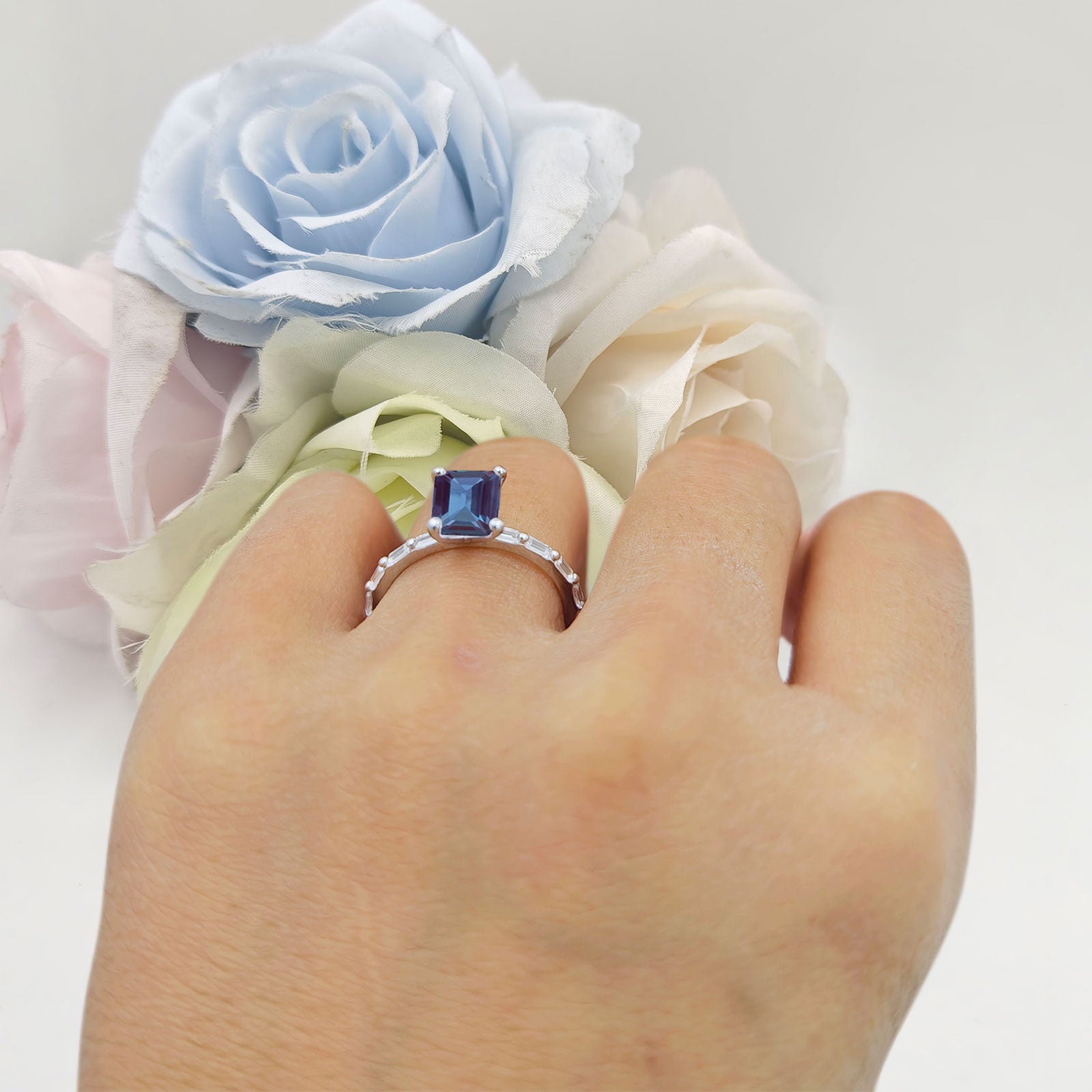 Product Description:Elevate your bridal elegance with our art deco-inspired emerald cut Lab Alexandrite solitaire wedding ring. Crafted from high-quality 925 sterling silver, this exquisite piece features a mesmerizing Alexandrite gemstone in an emerald cut, evoking sophistication and timeless charm. Perfect for those seeking a blend of vintage allure and modern style on their special day.