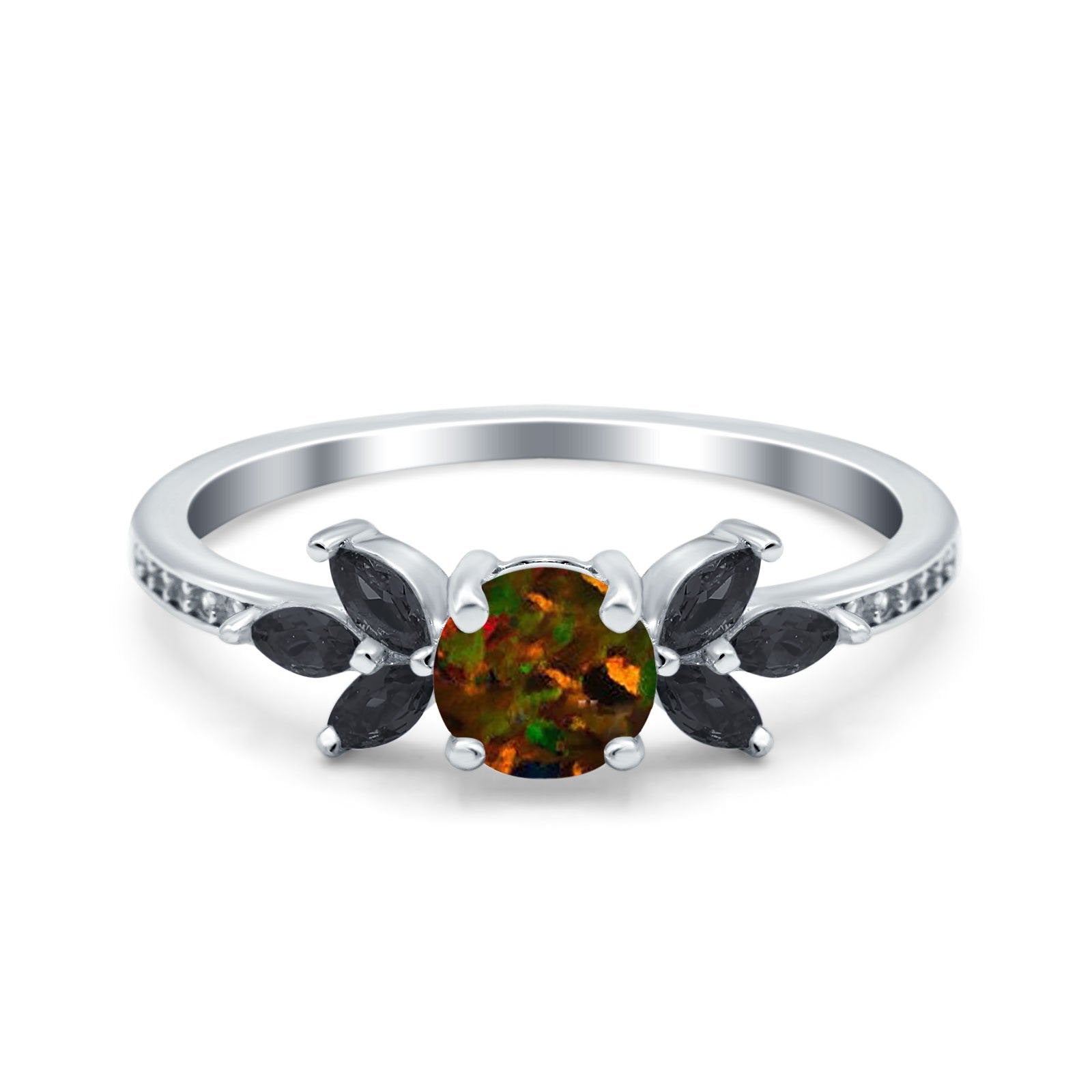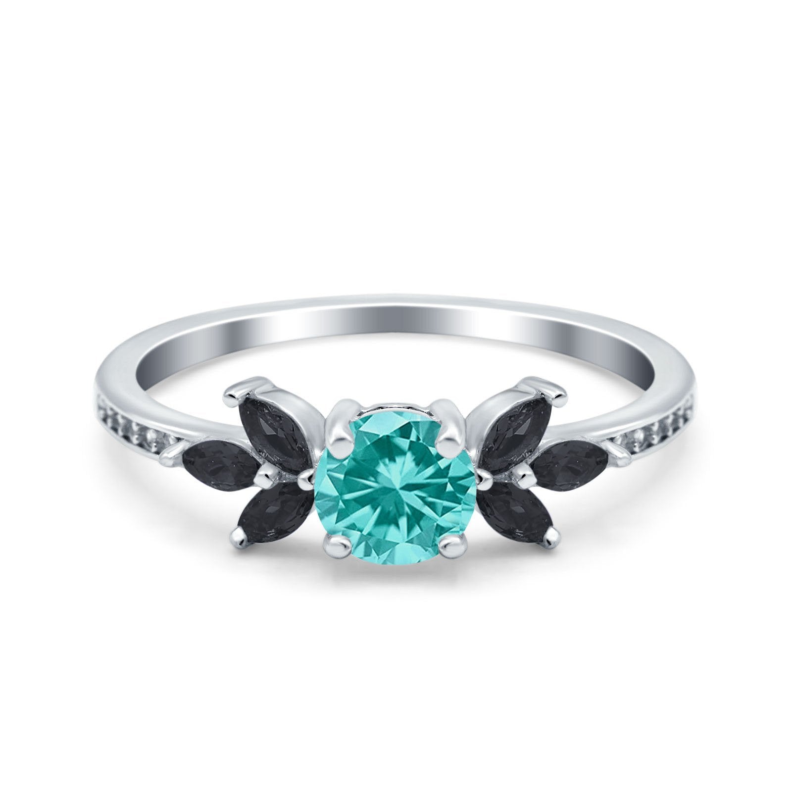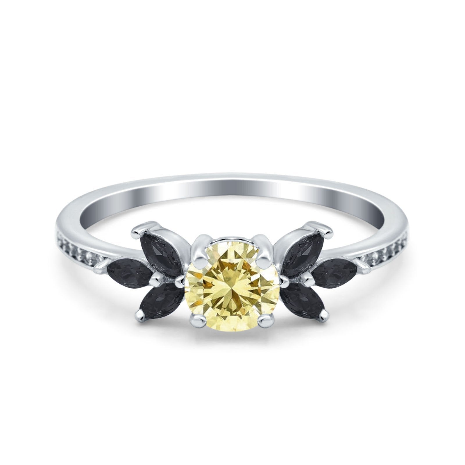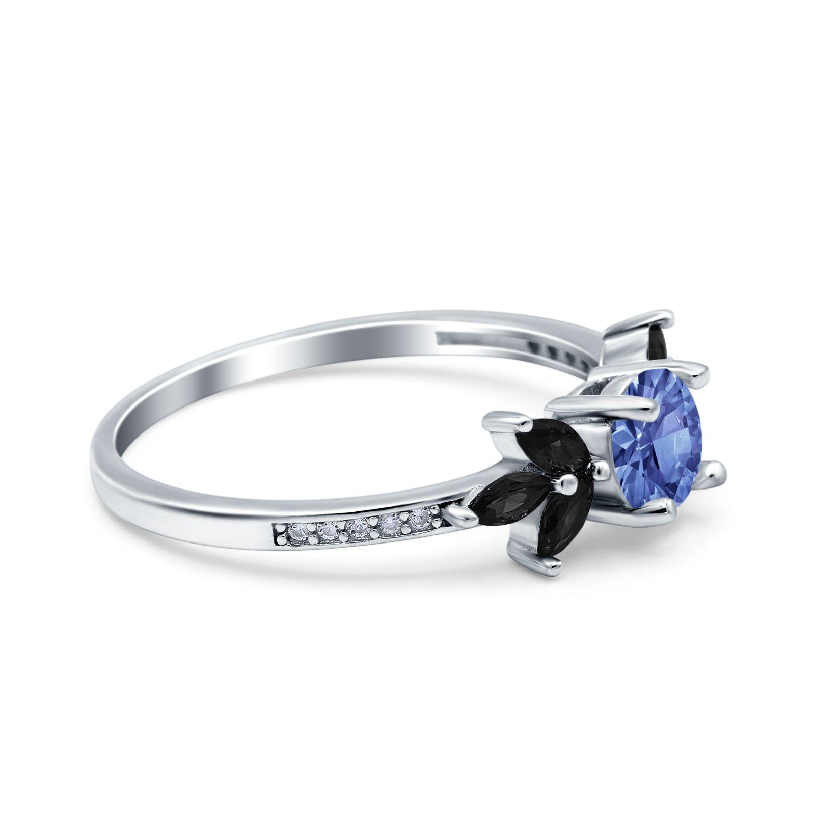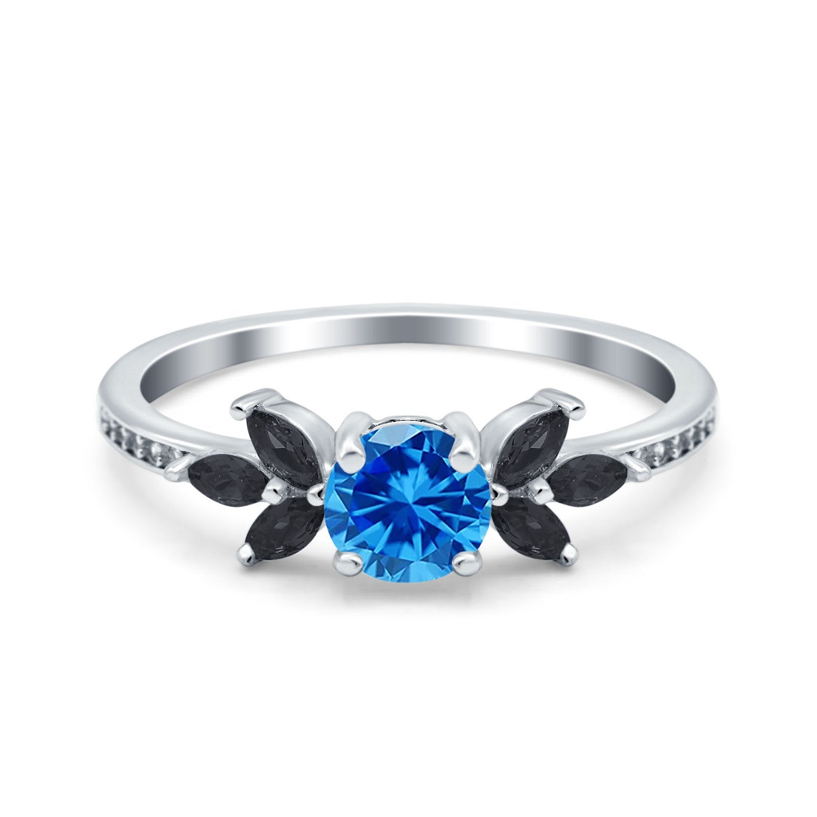 Art Deco Engagement Ring Simulated Black Round Simulated Cubic Zirconia 925 Sterling Silver