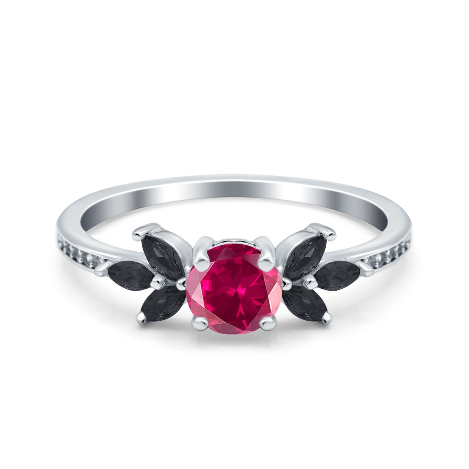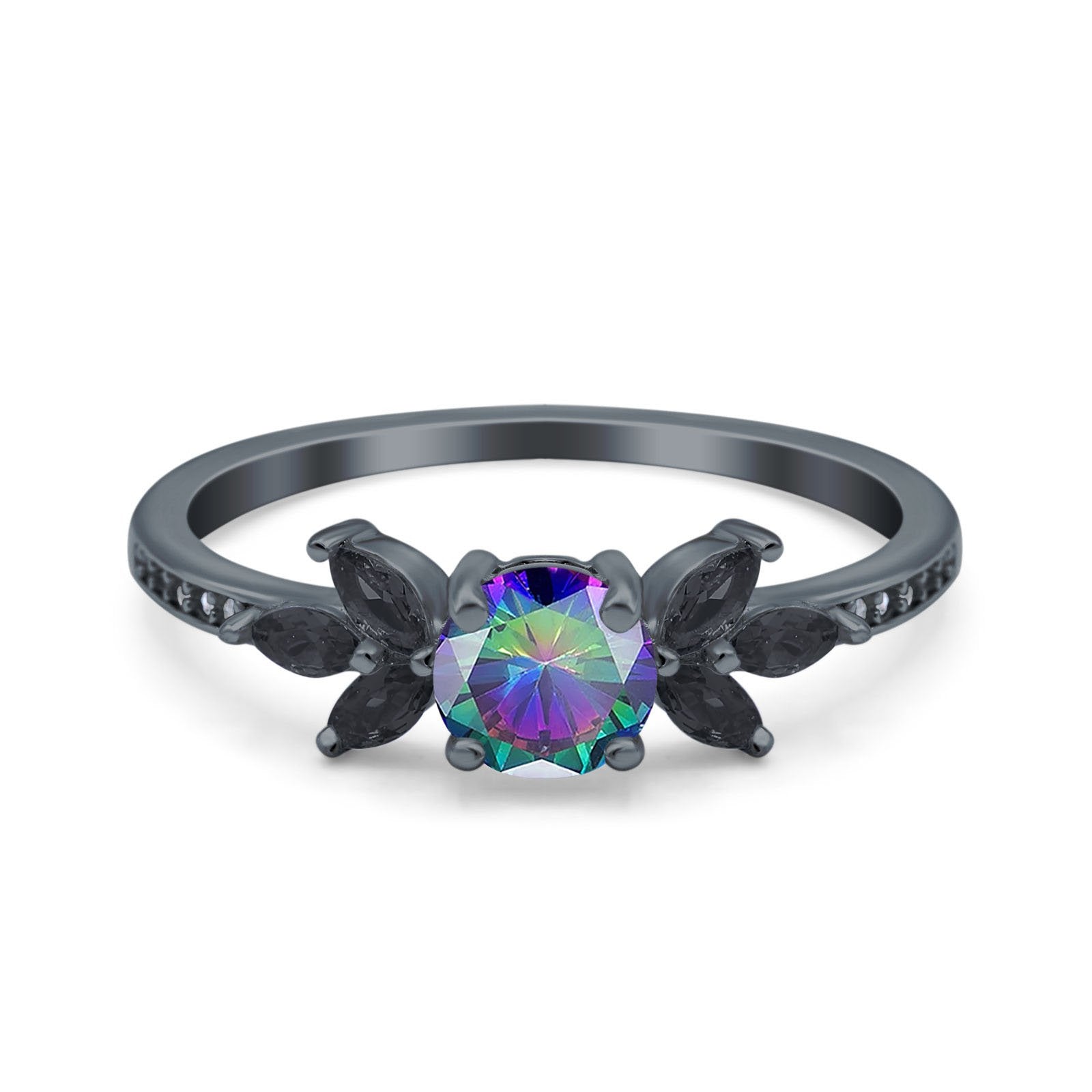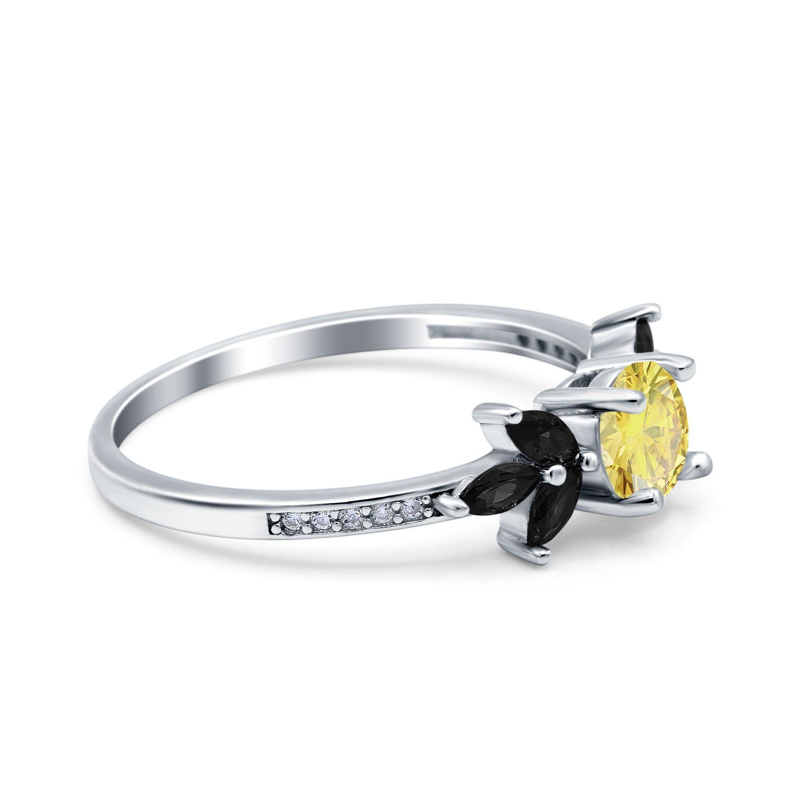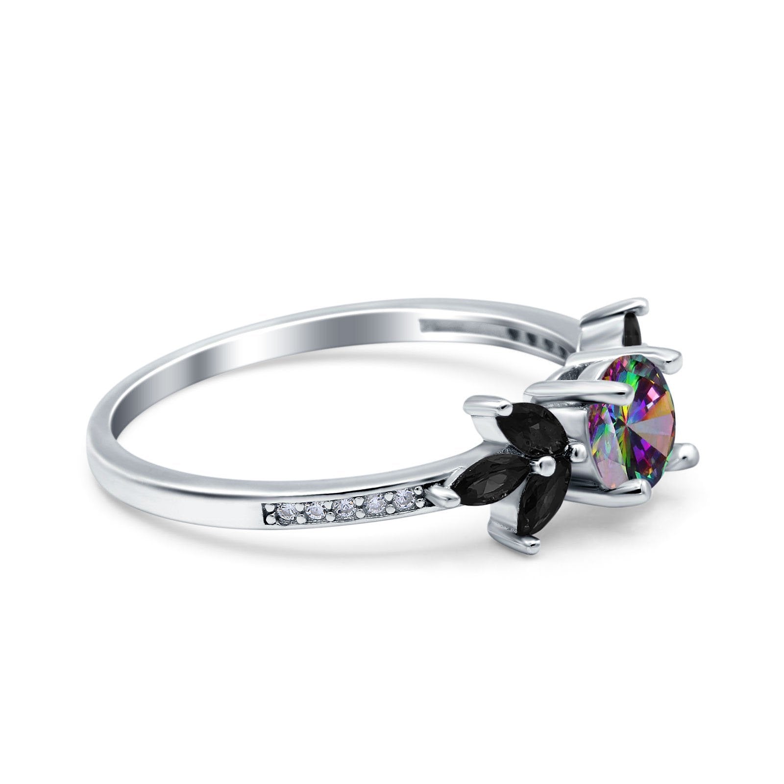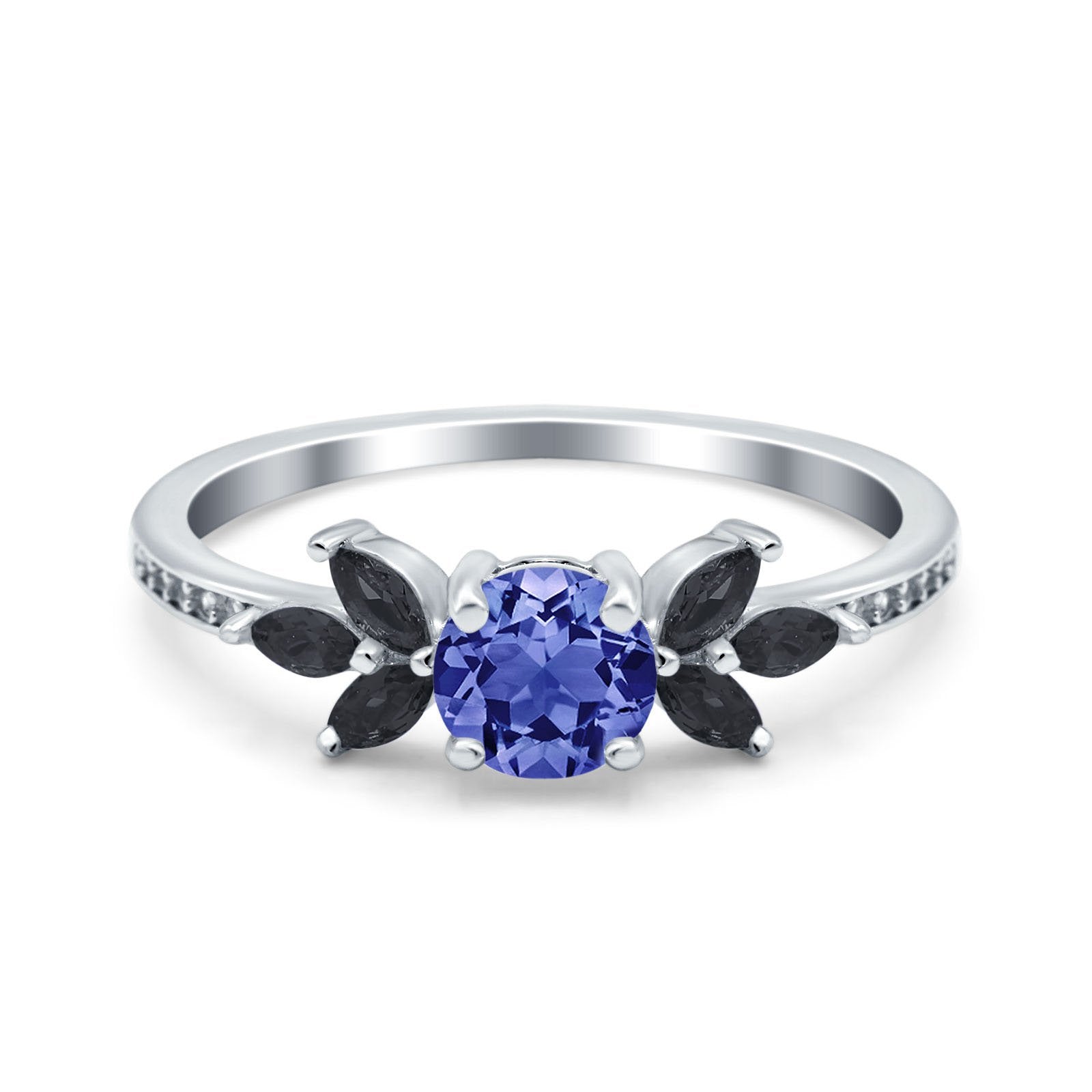 Art Deco Engagement Ring Simulated Black Round Simulated Cubic Zirconia 925 Sterling Silver