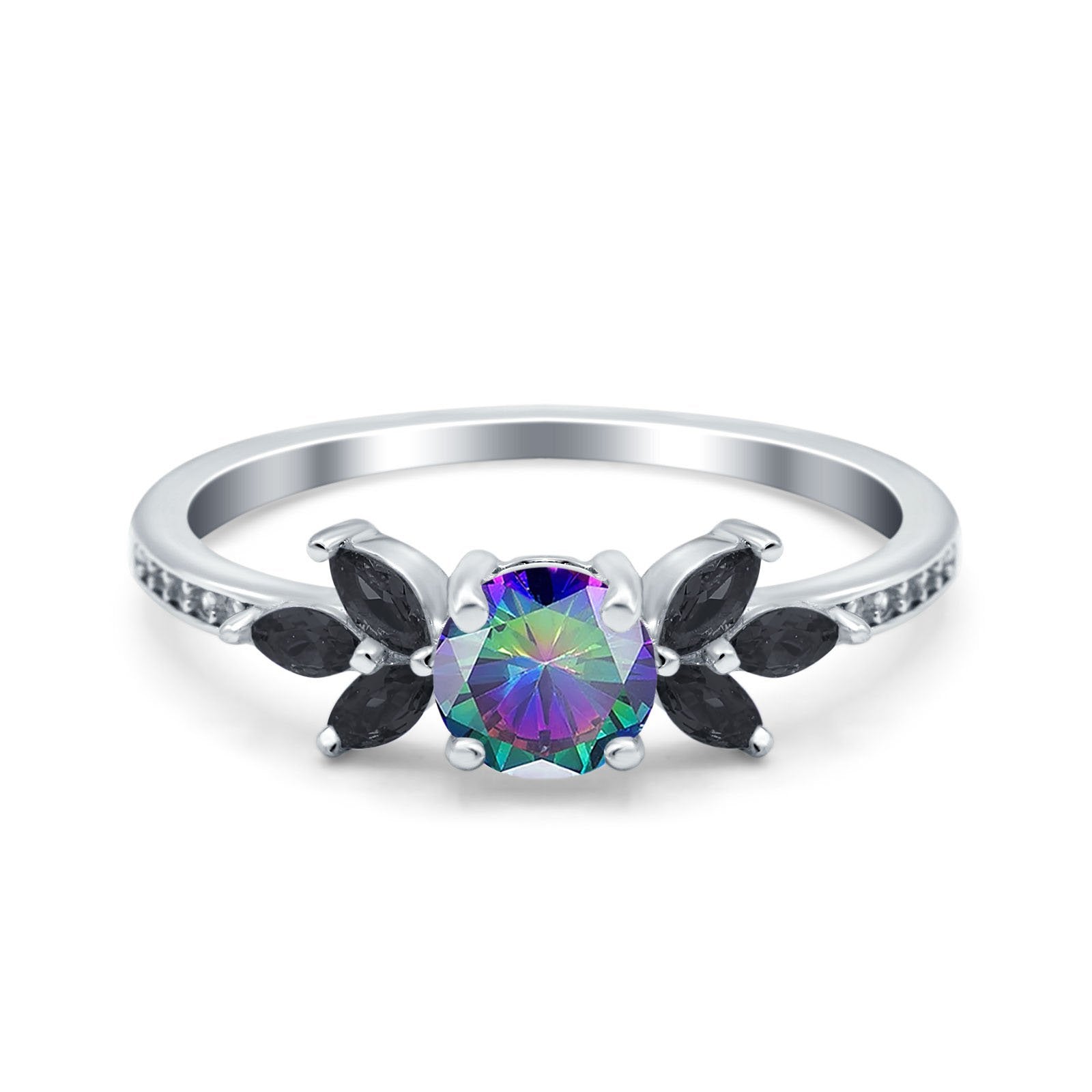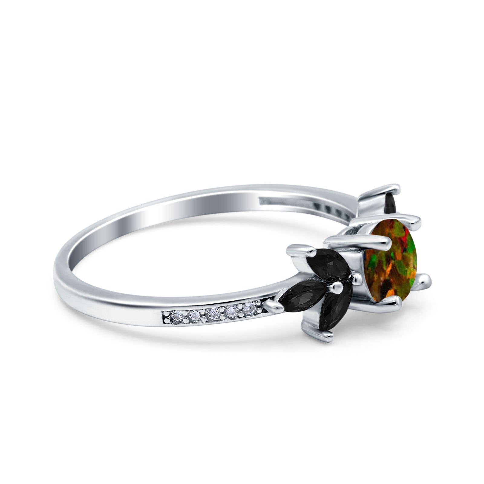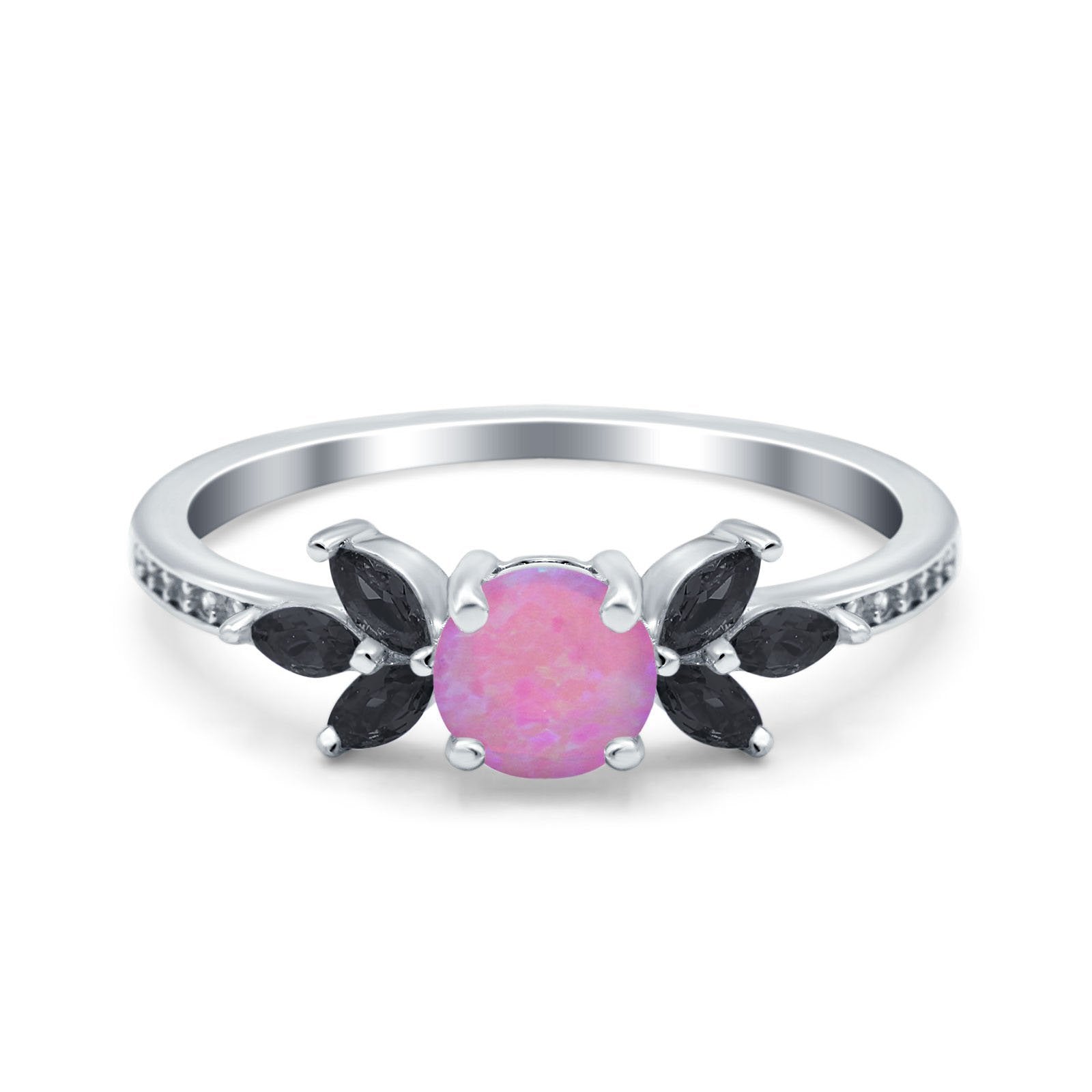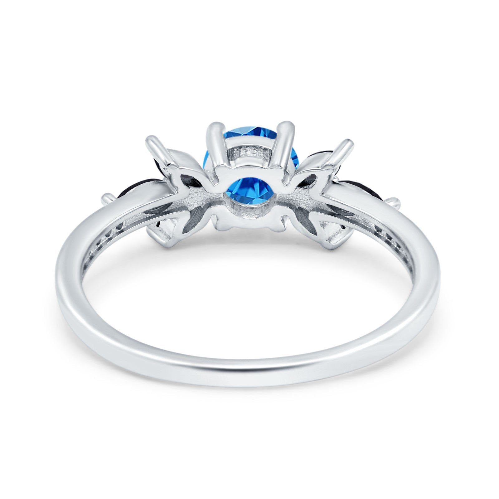 Art Deco Engagement Ring Simulated Black Round Simulated Cubic Zirconia 925 Sterling Silver