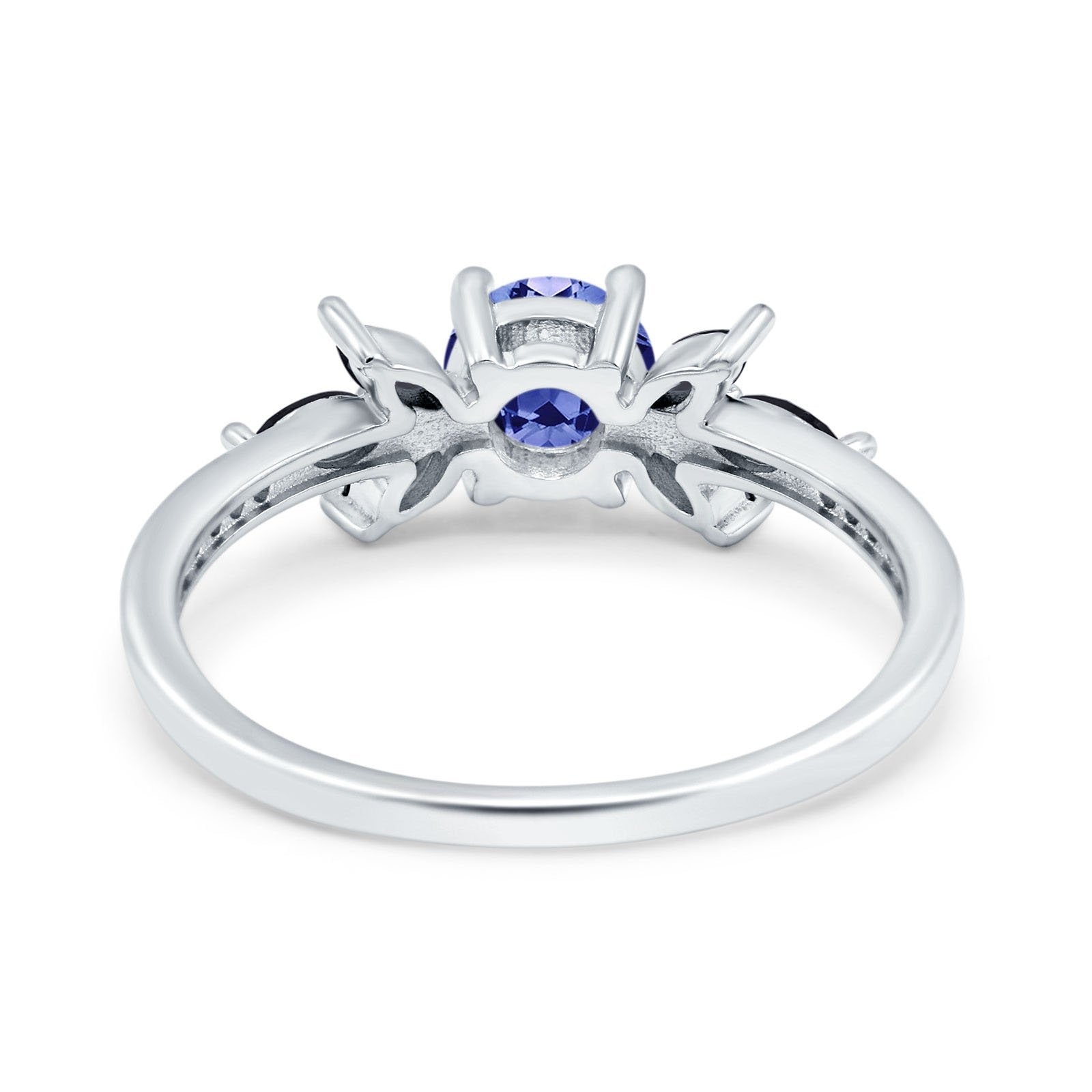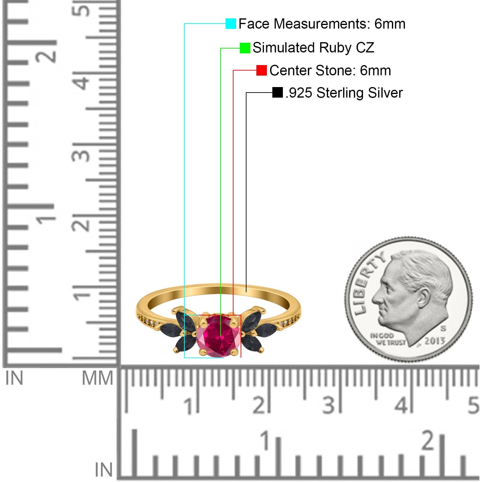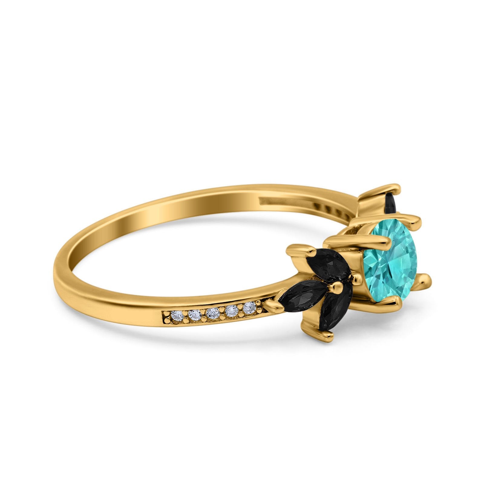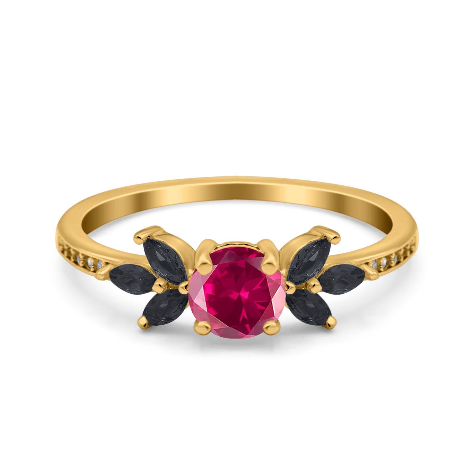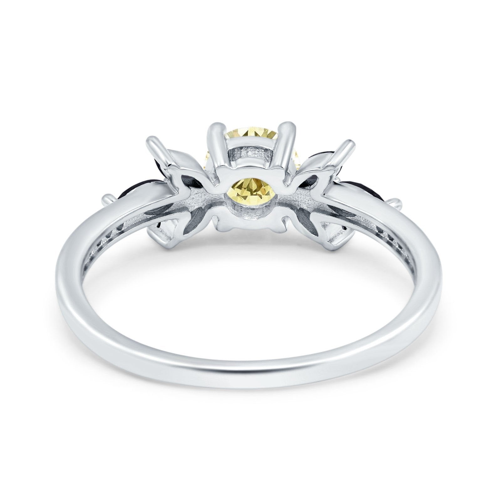 Art Deco Engagement Ring Simulated Black Round Simulated Cubic Zirconia 925 Sterling Silver