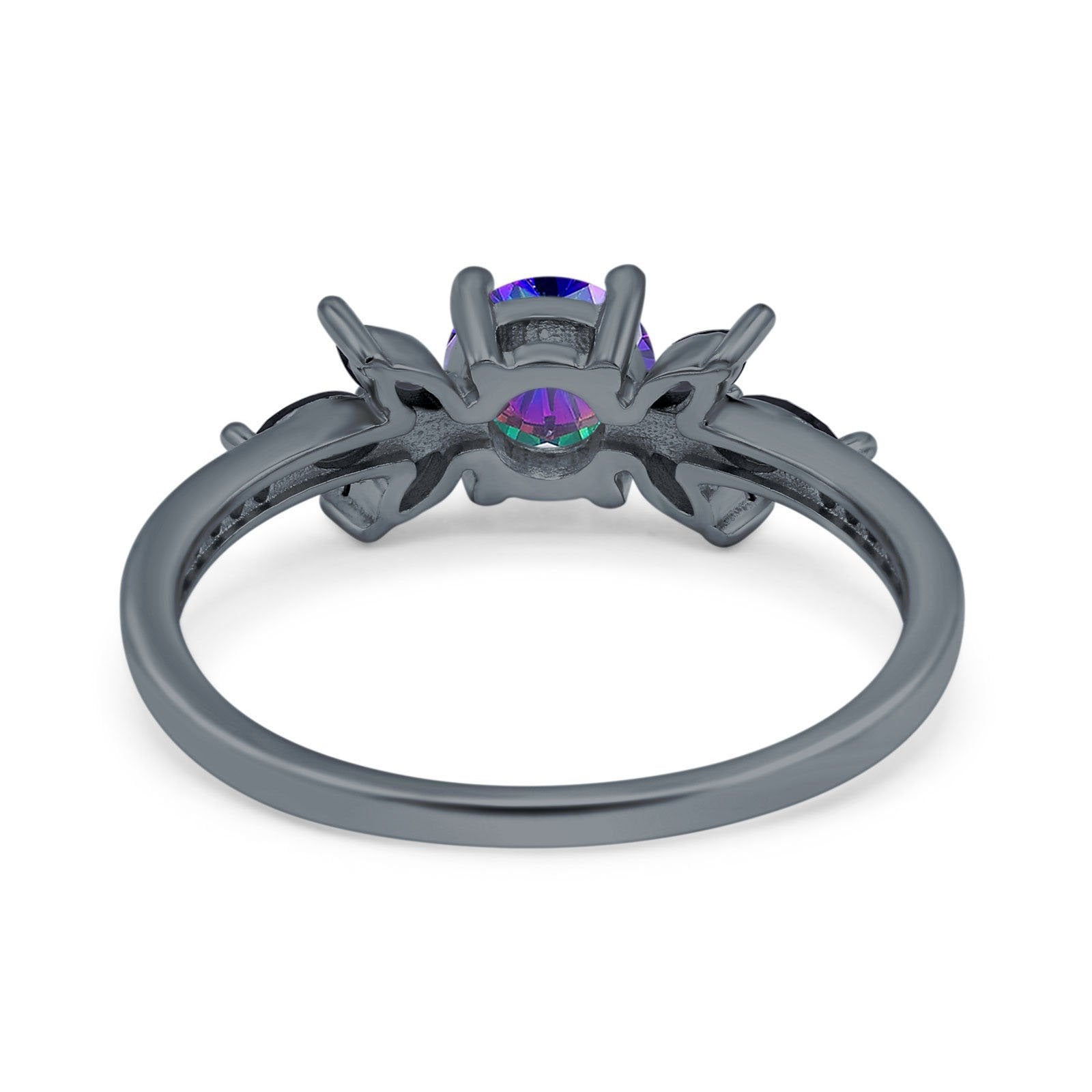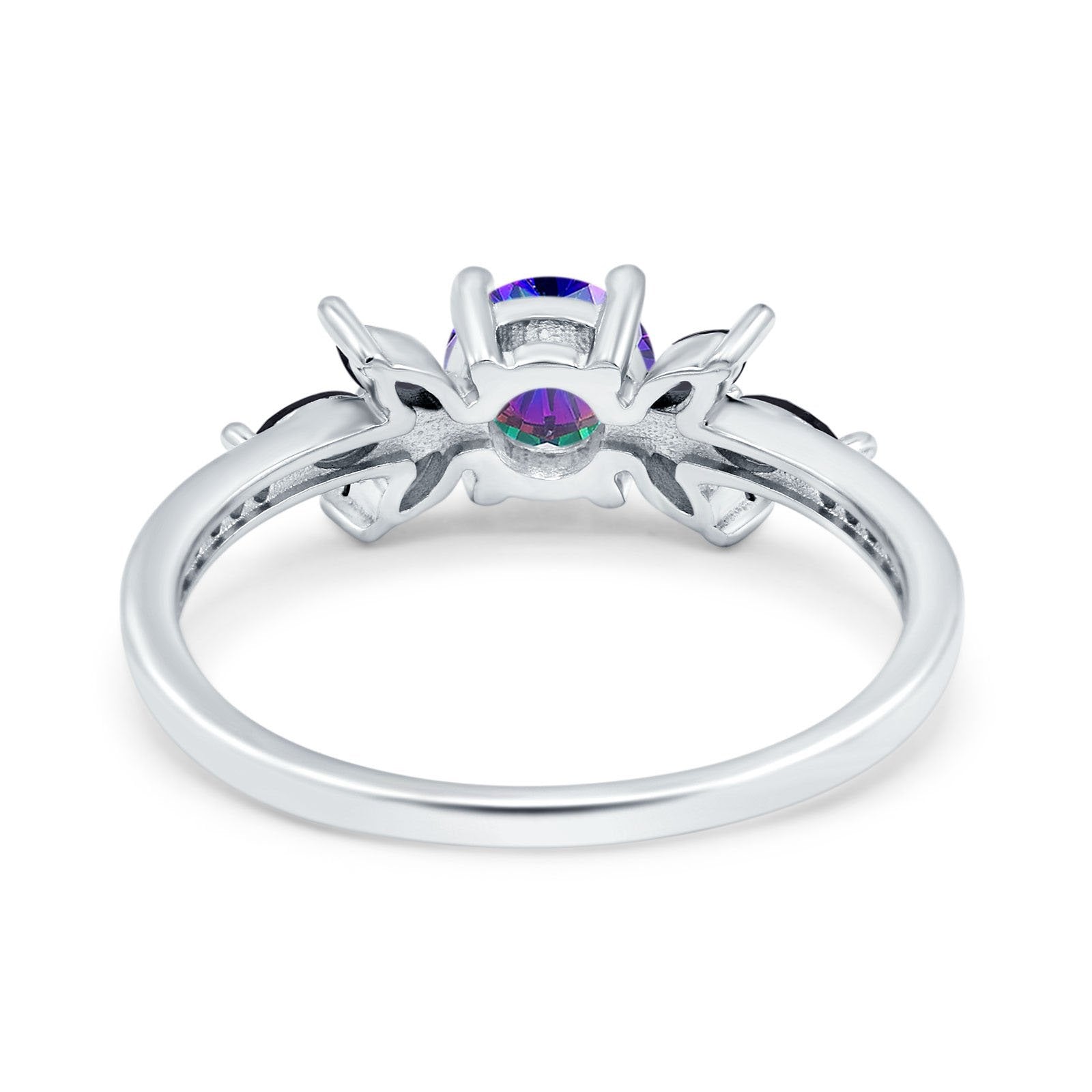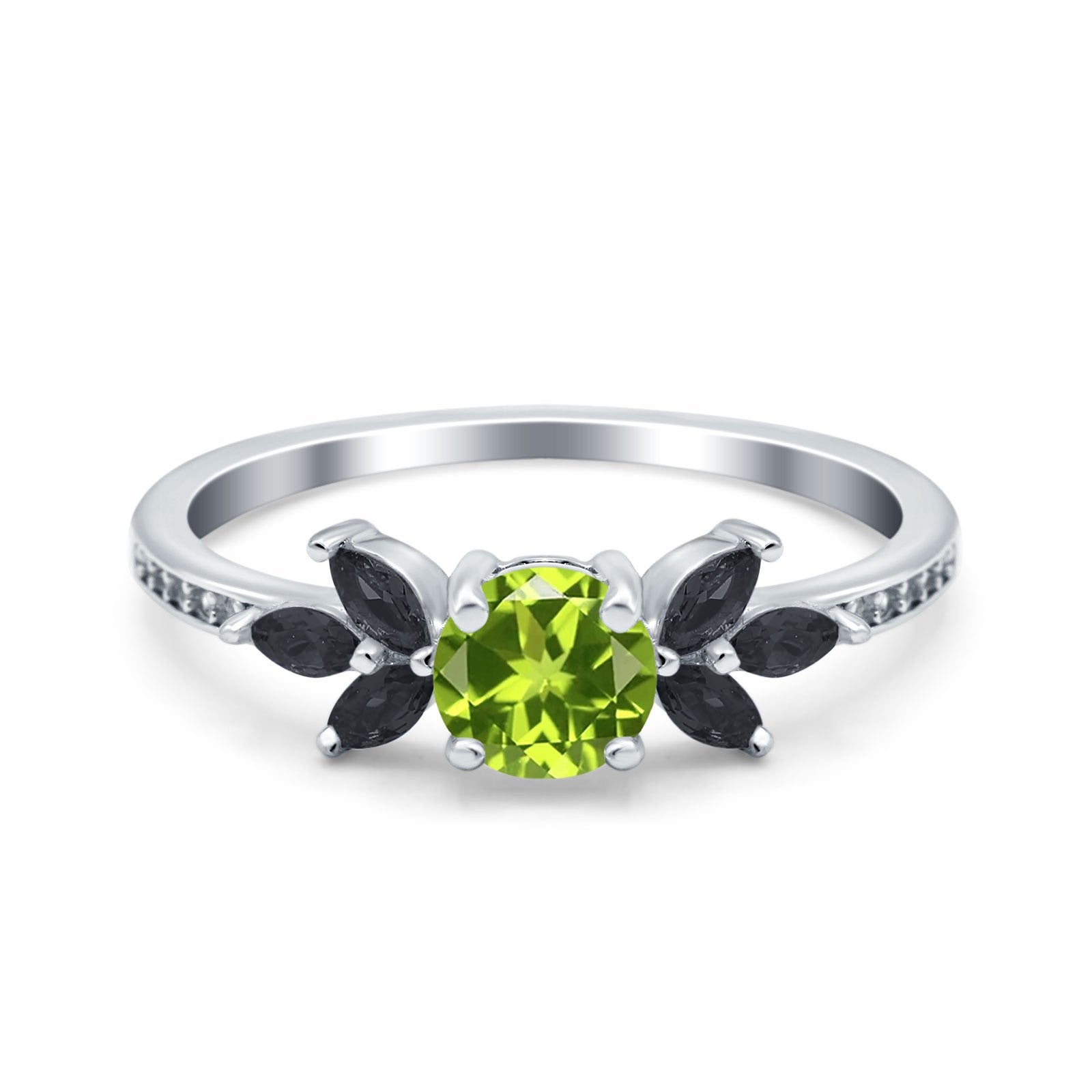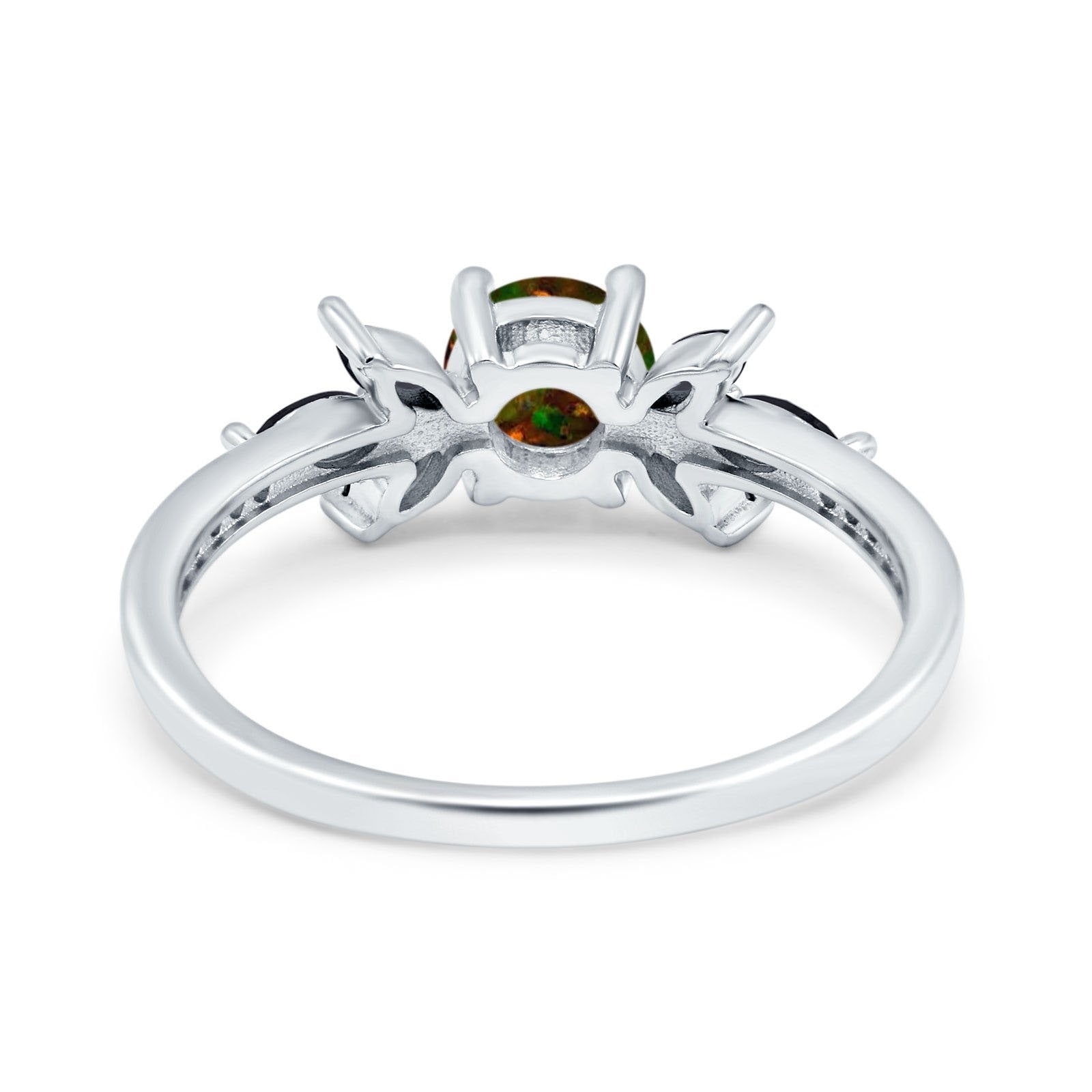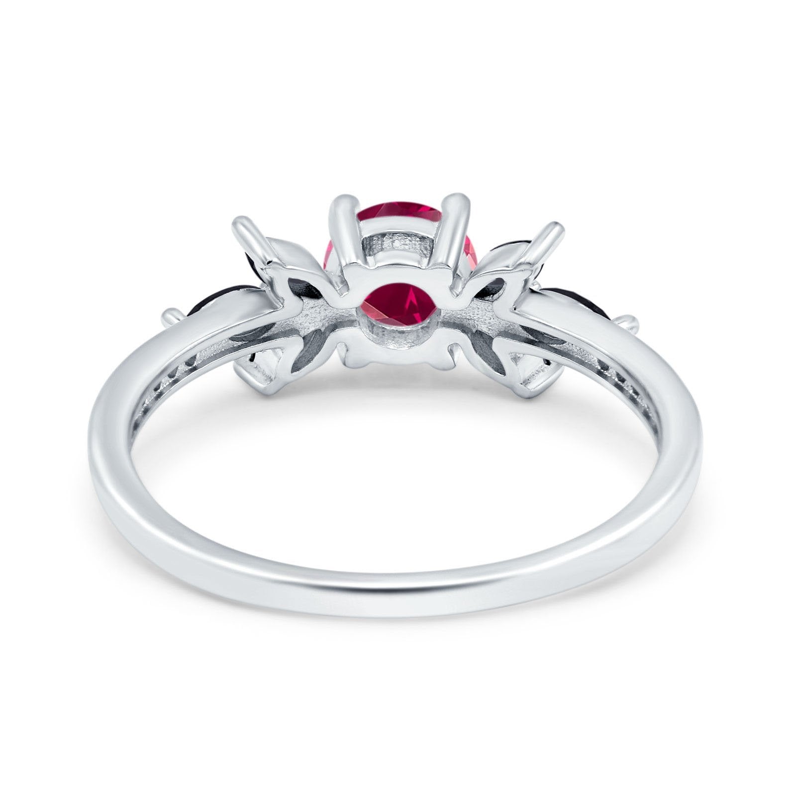 Art Deco Engagement Ring Simulated Black Round Simulated Cubic Zirconia 925 Sterling Silver