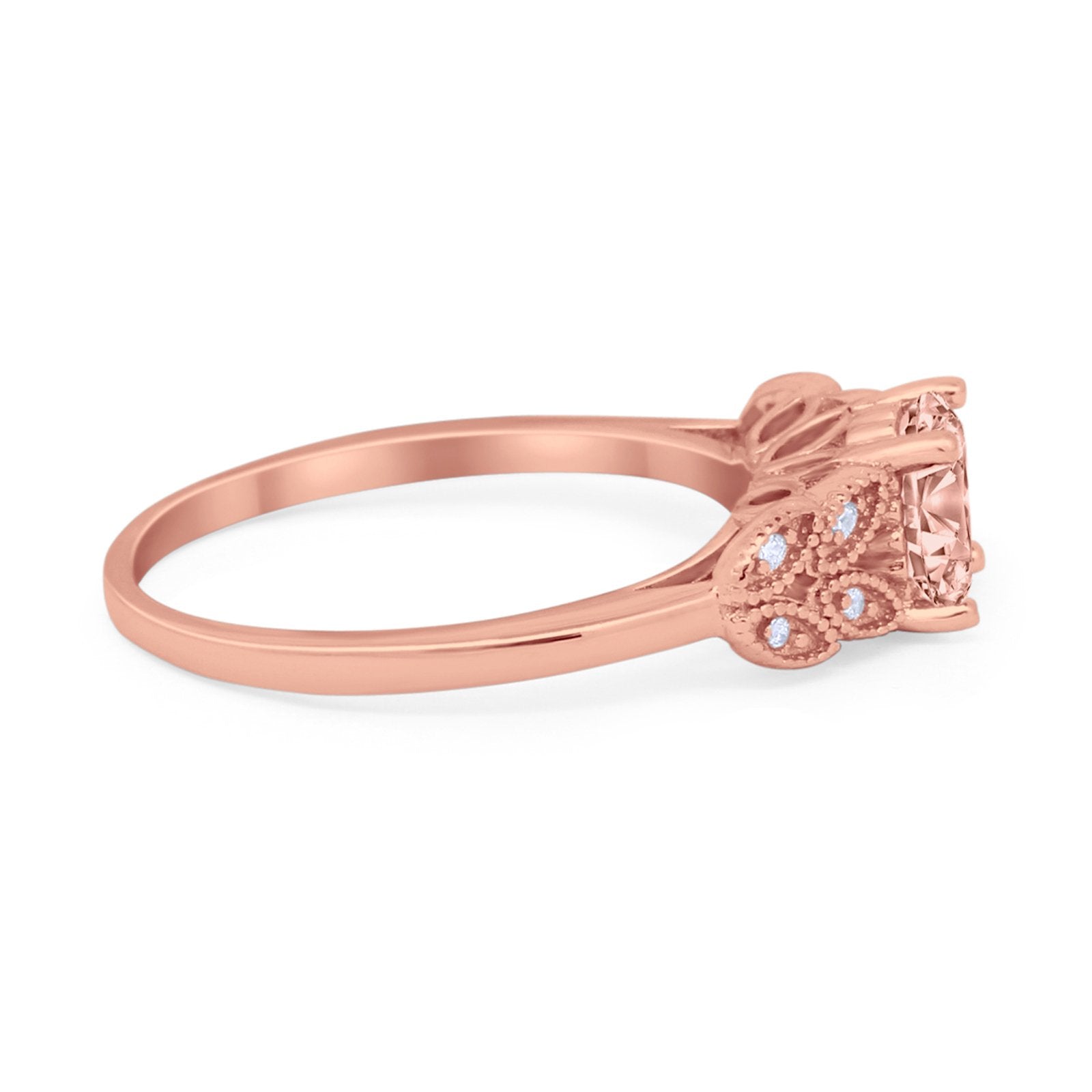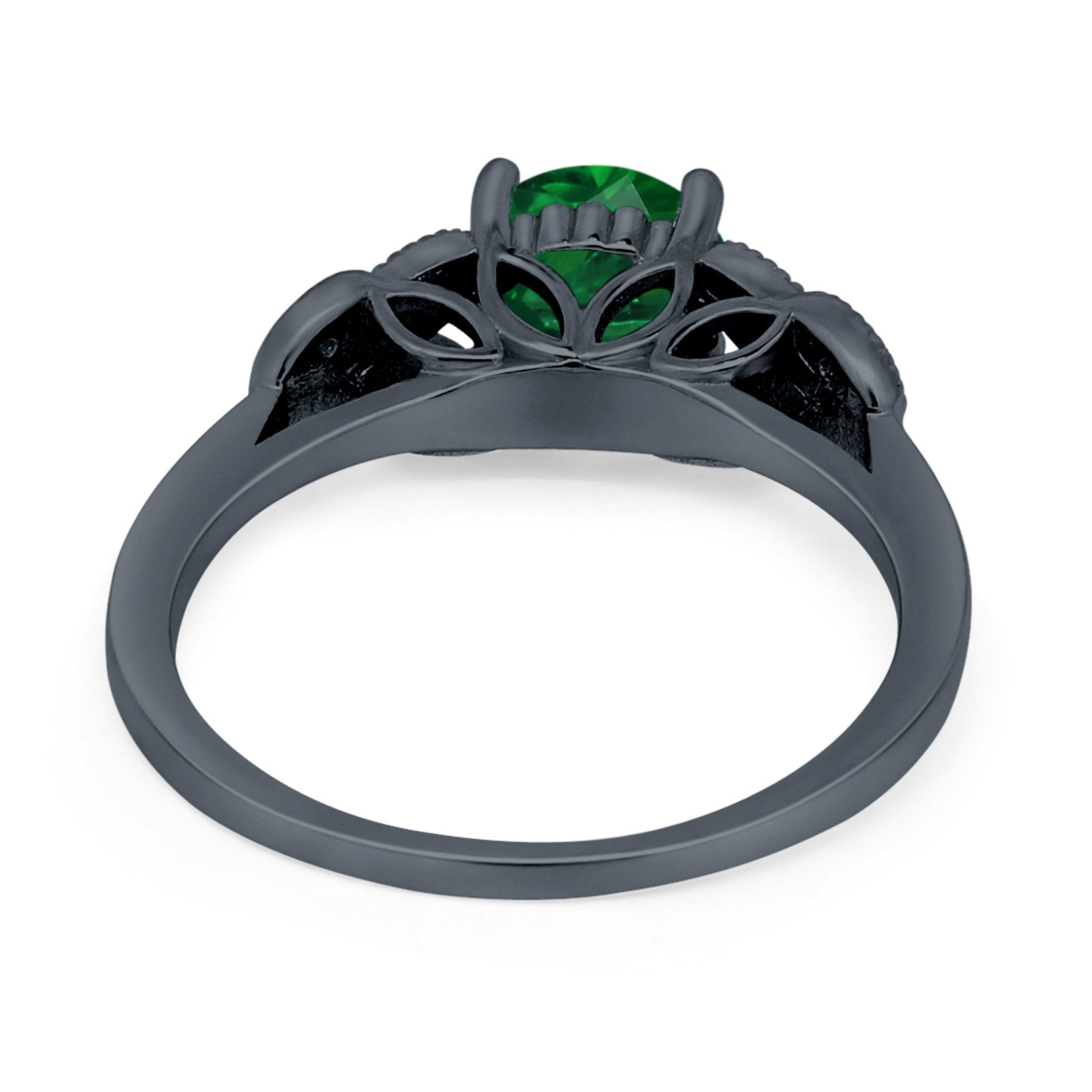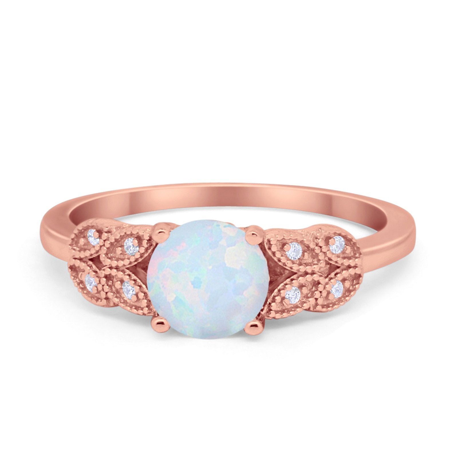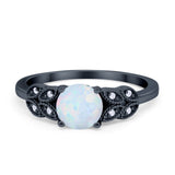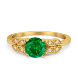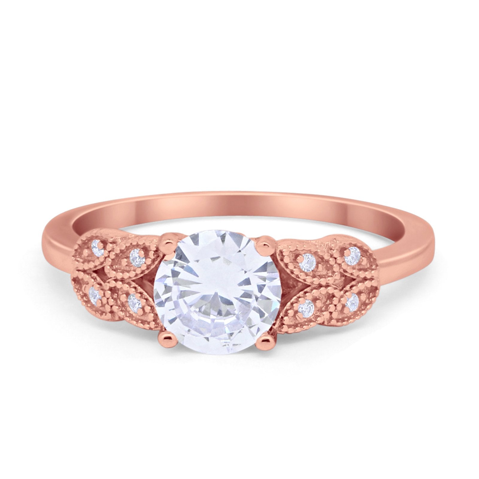 Art Deco Flower Style Wedding Engagement Bridal Ring Round Simulated Cubic Zirconia 925 Sterling Silver