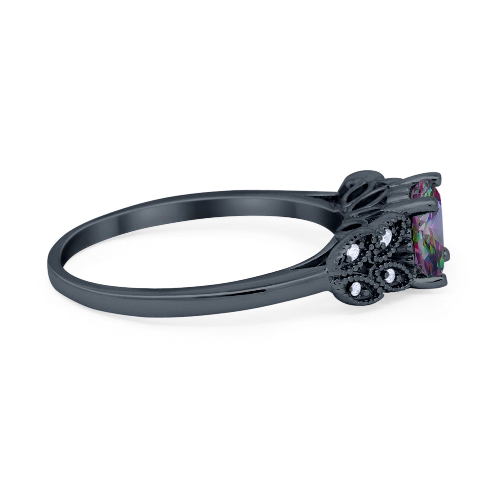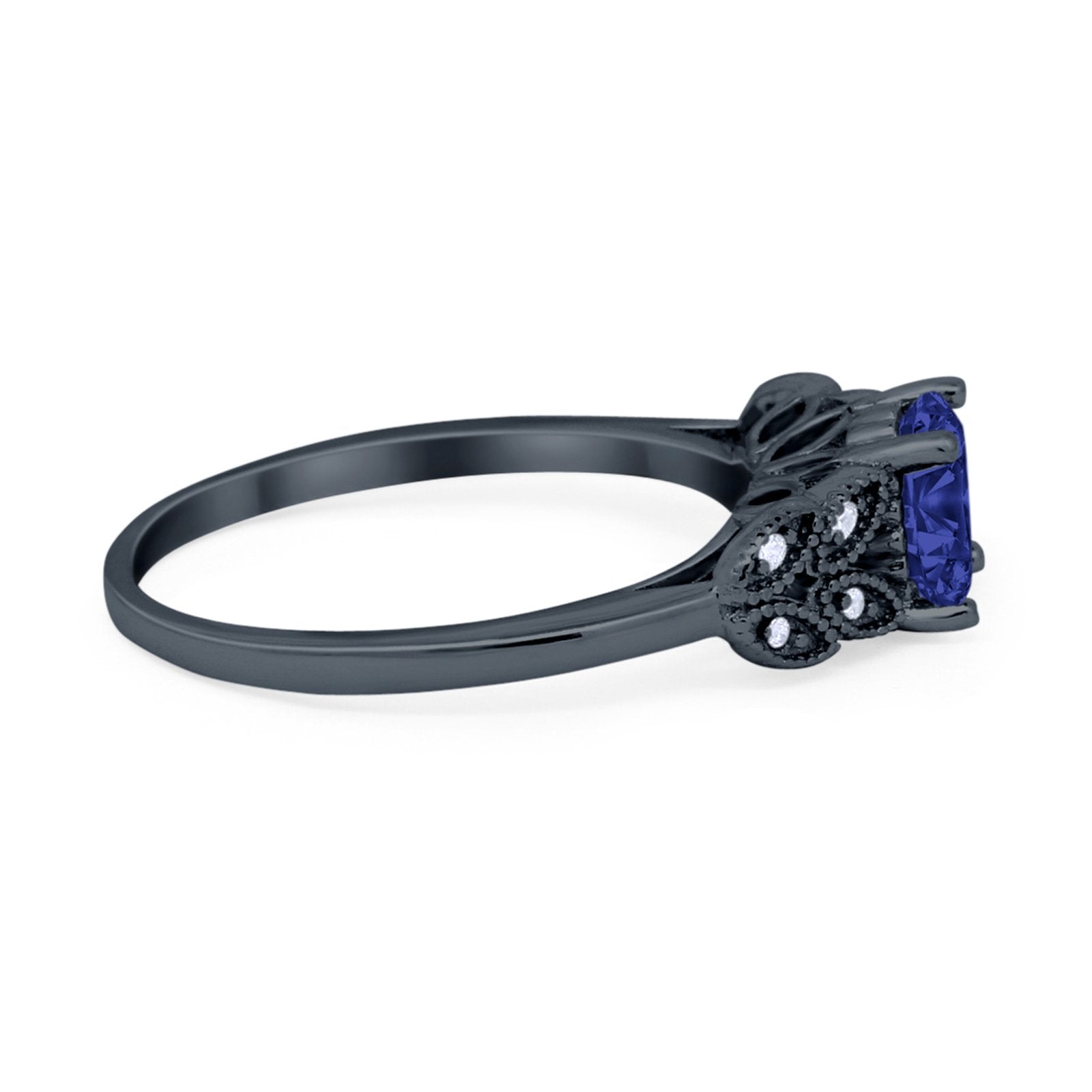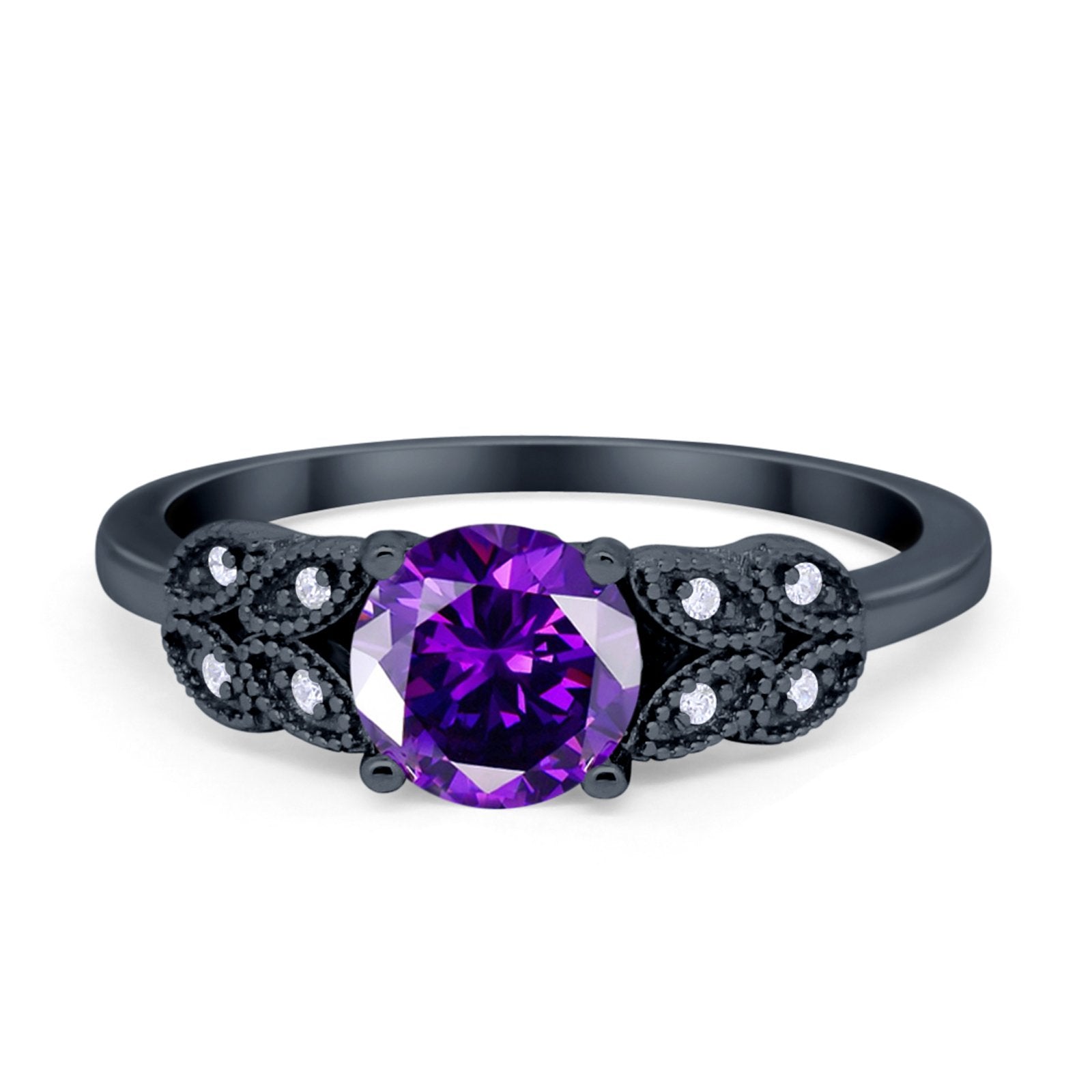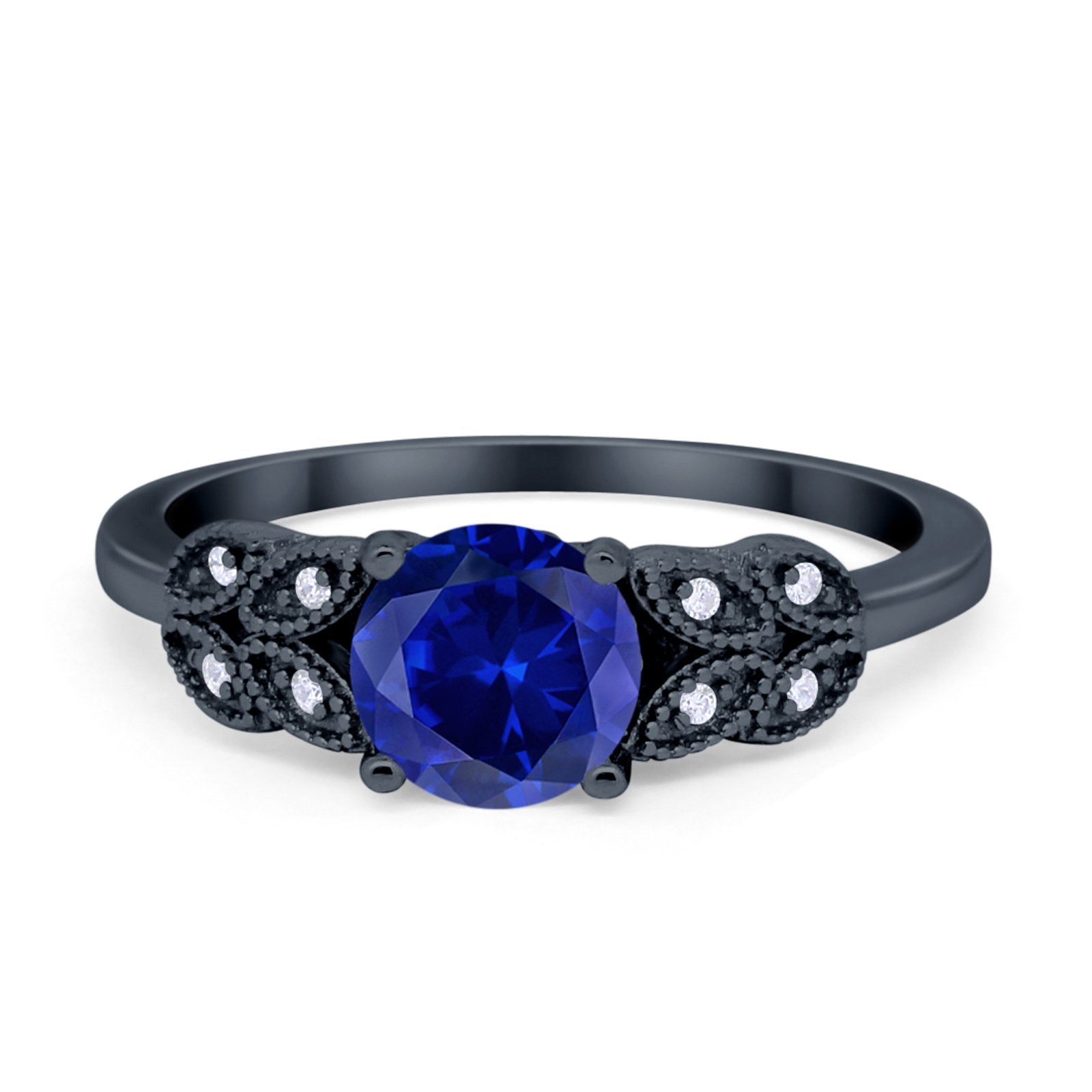 Art Deco Flower Style Wedding Engagement Bridal Ring Round Simulated Cubic Zirconia 925 Sterling Silver
