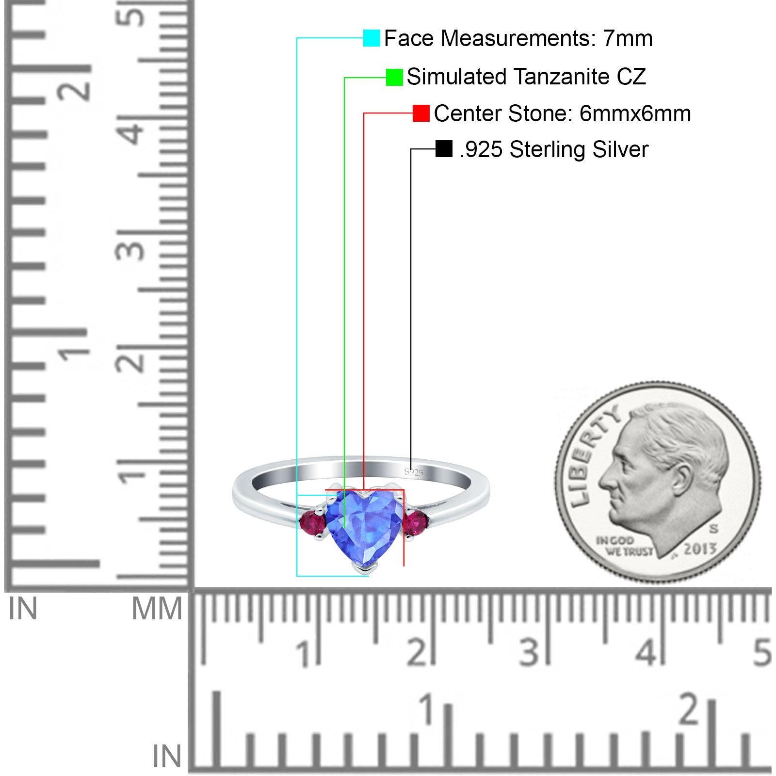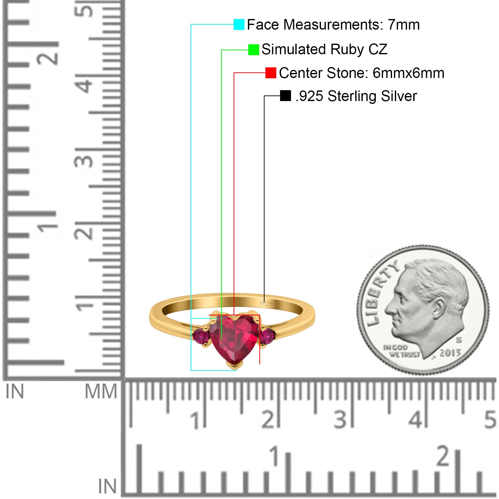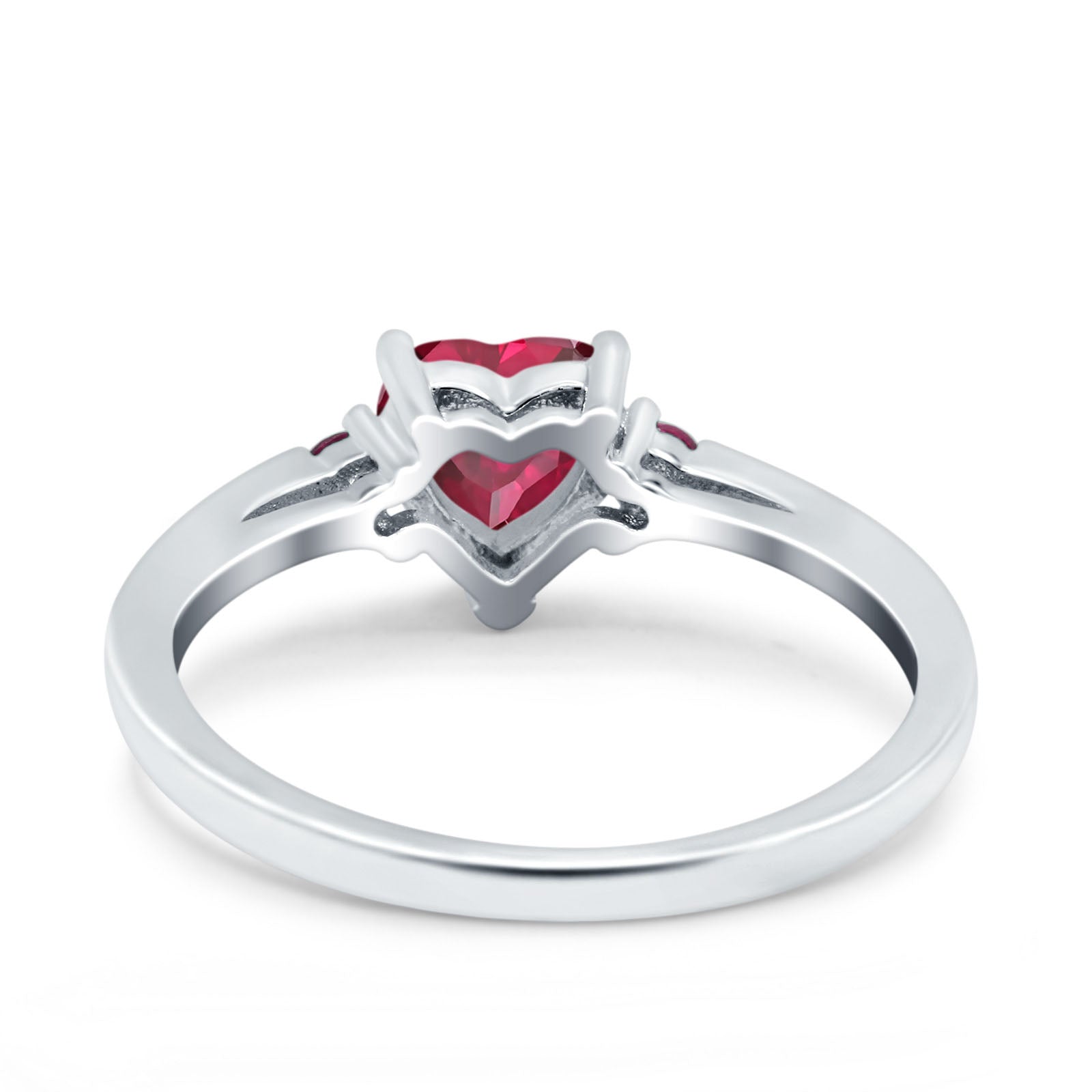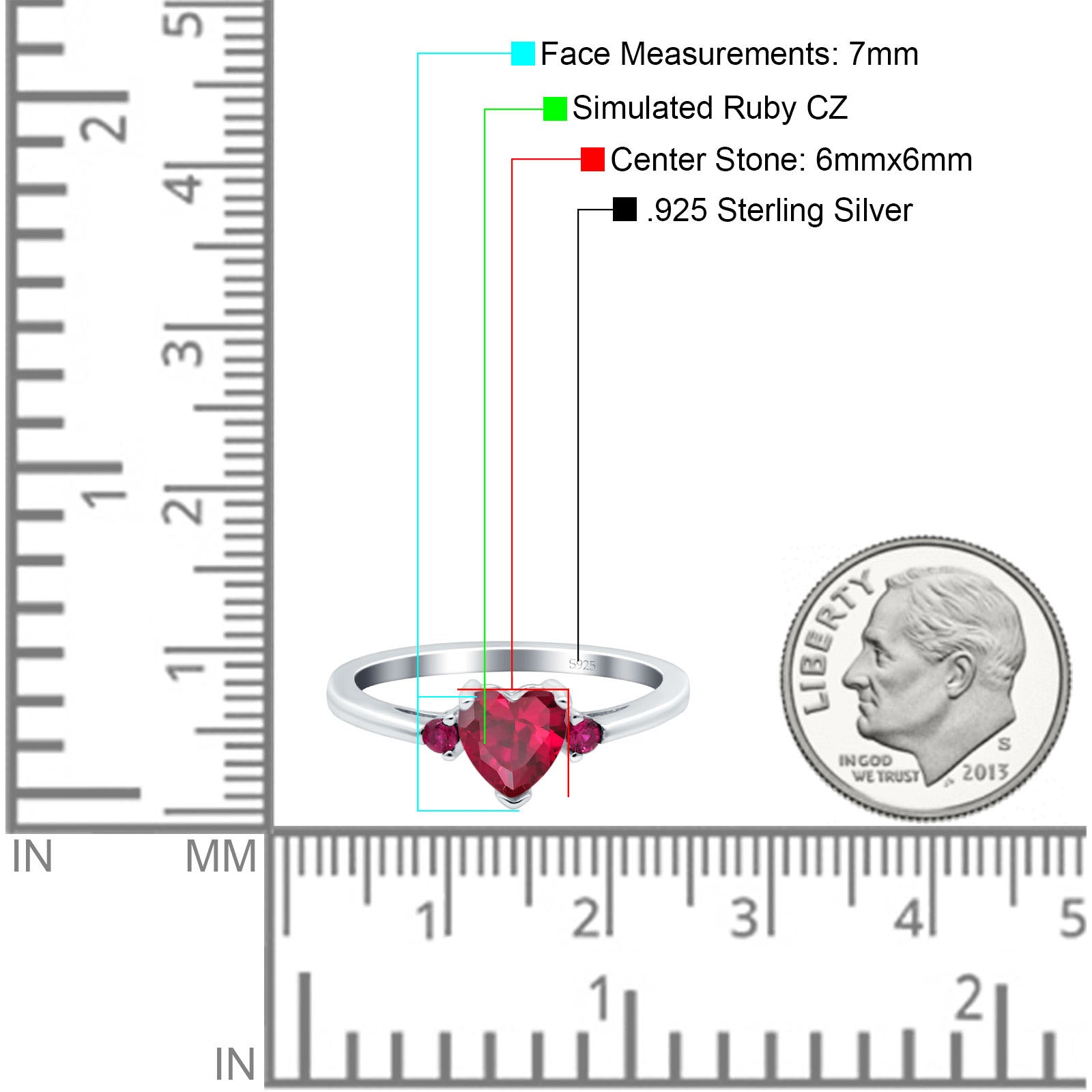 Art Deco Heart Three Stone Wedding Bridal Ring Round Ruby Simulated Cubic Zirconia 925 Sterling Silver