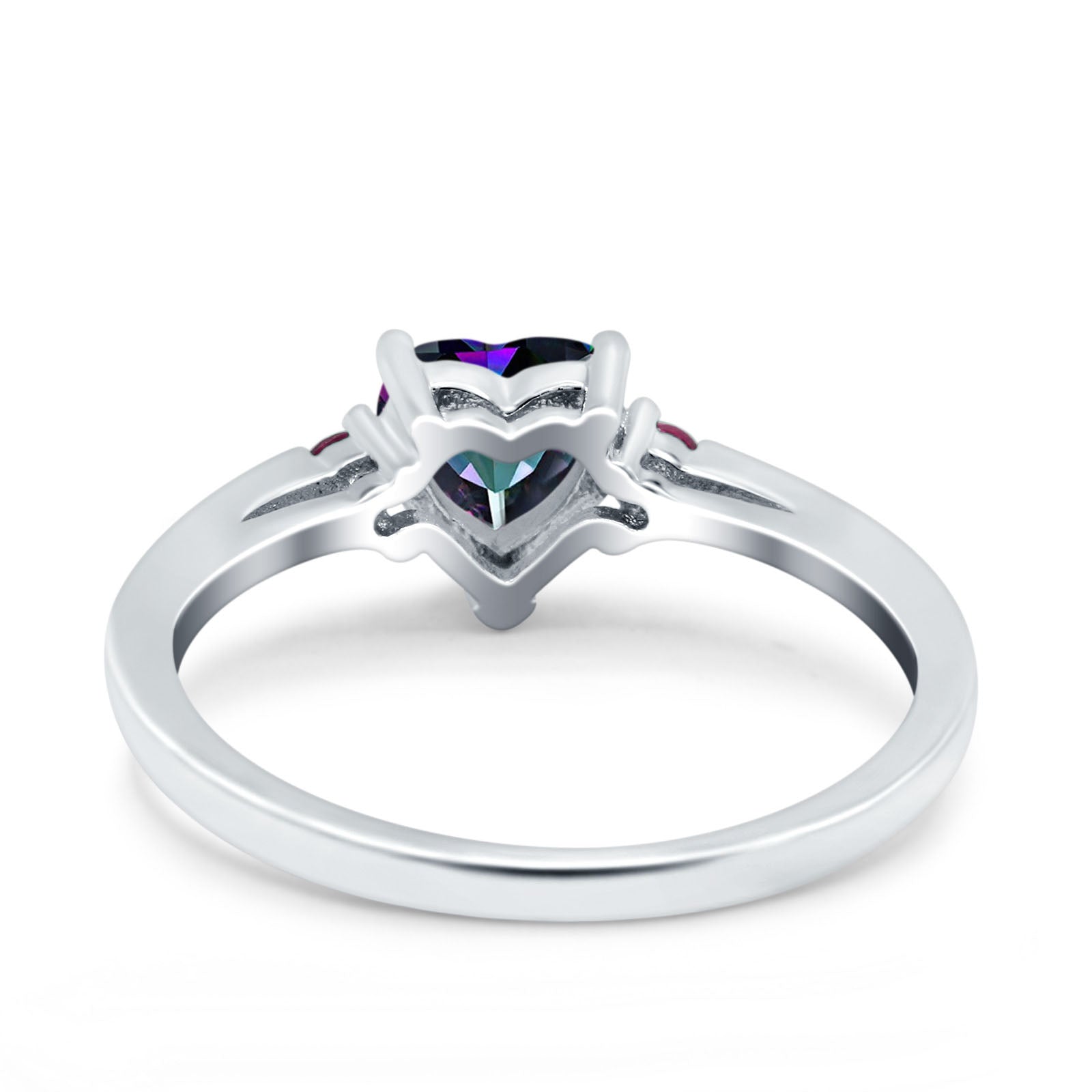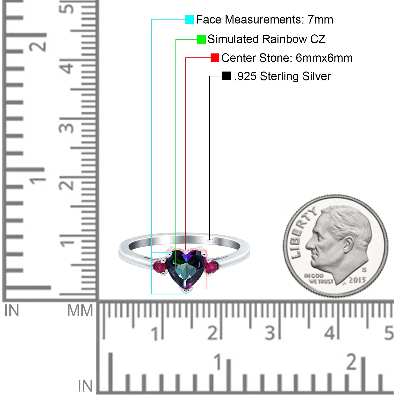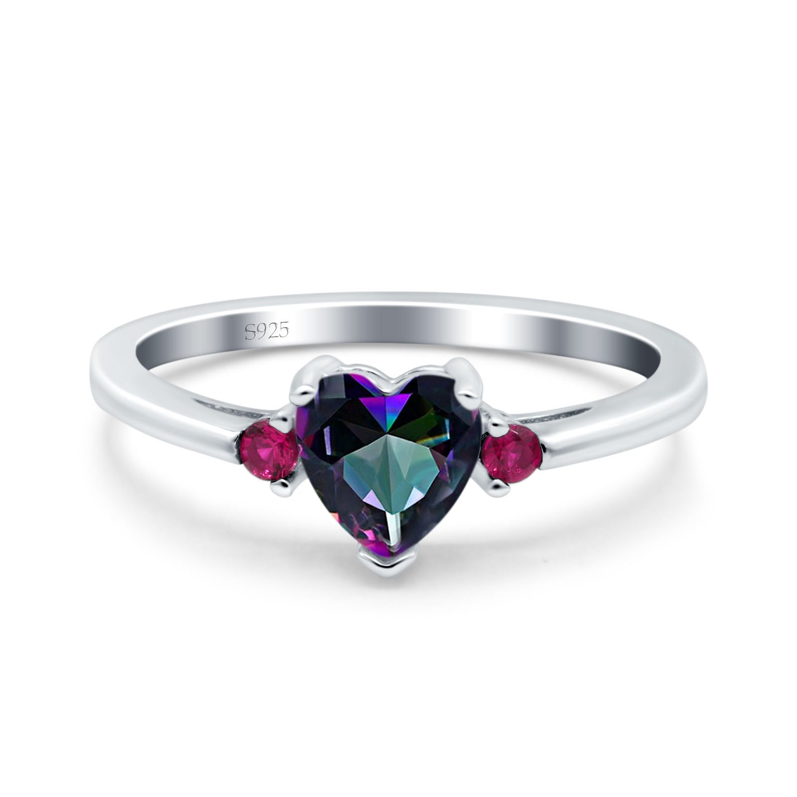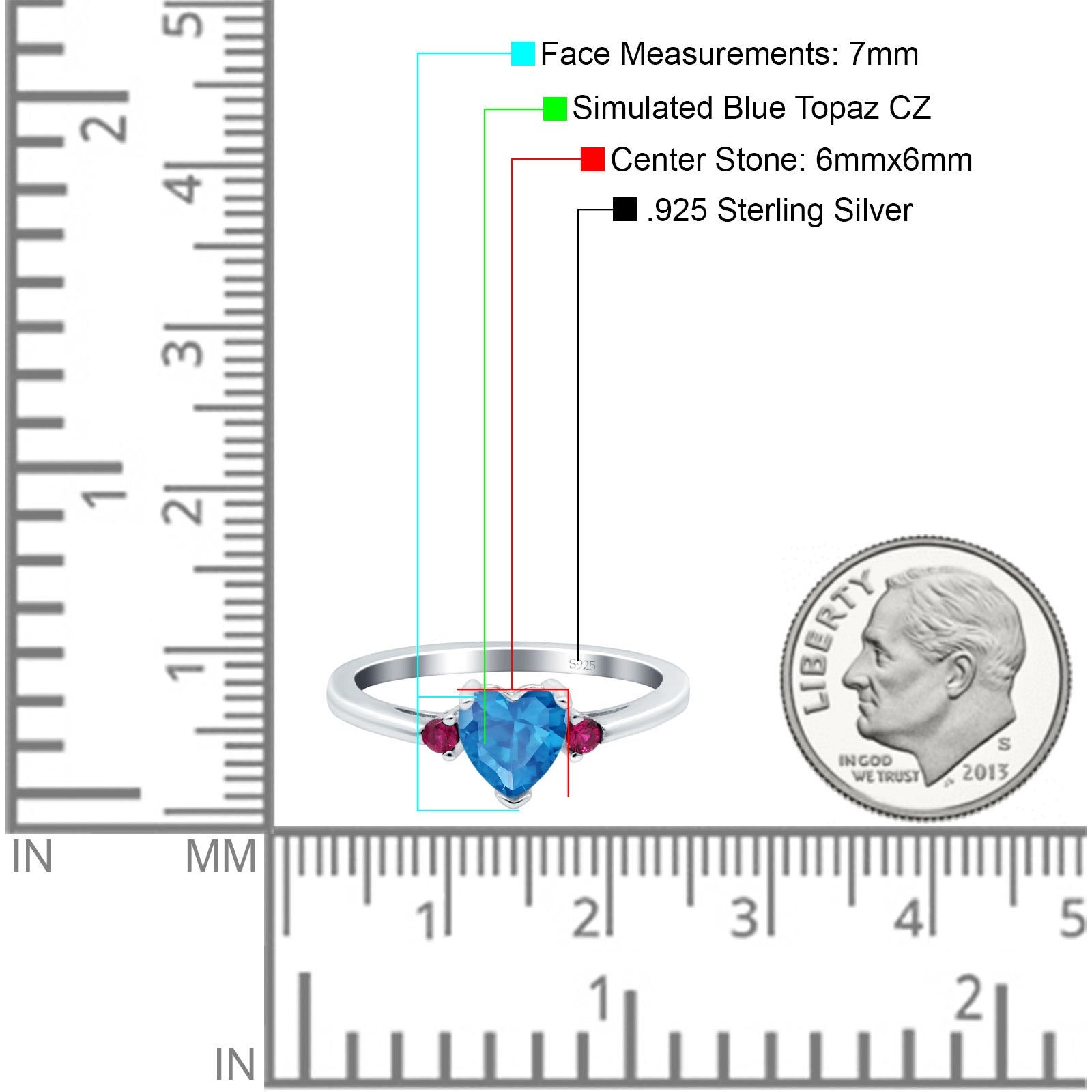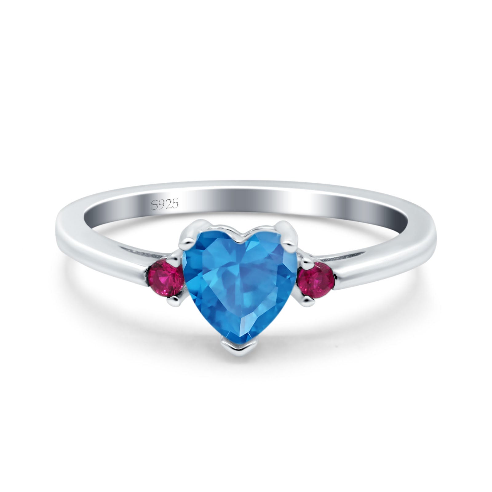 Art Deco Heart Three Stone Wedding Bridal Ring Round Ruby Simulated Cubic Zirconia 925 Sterling Silver