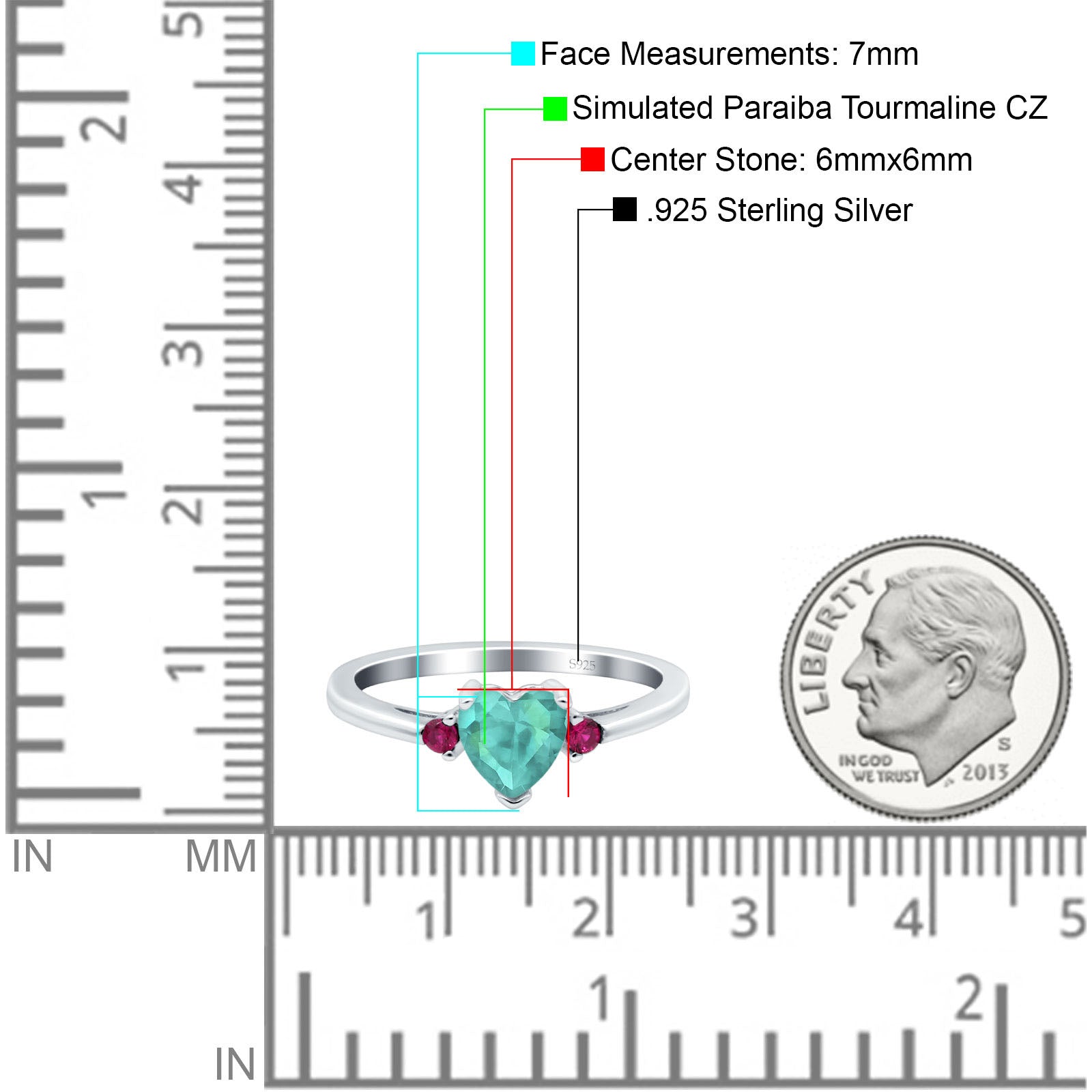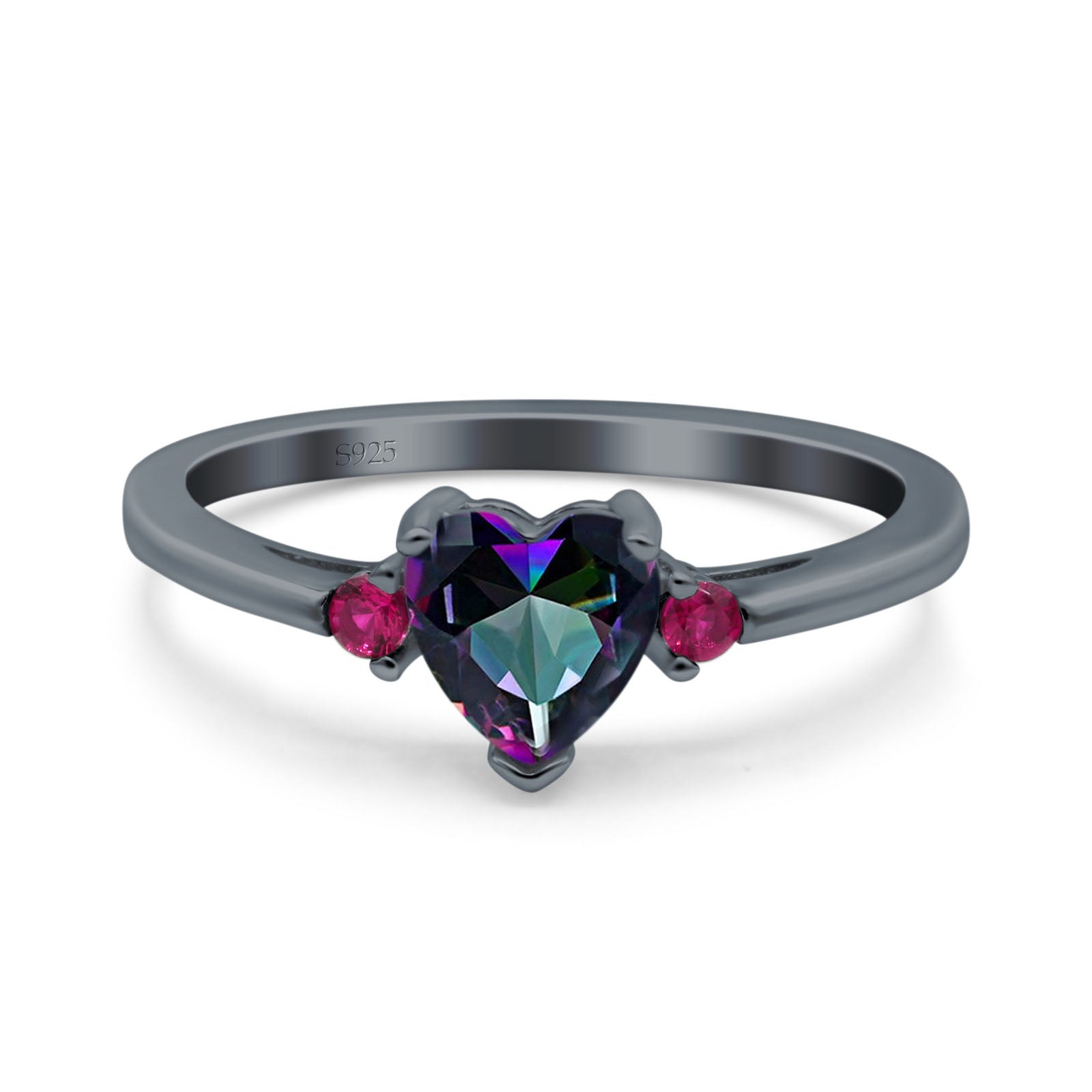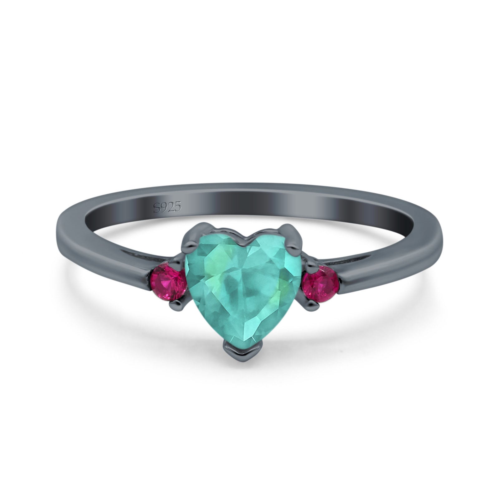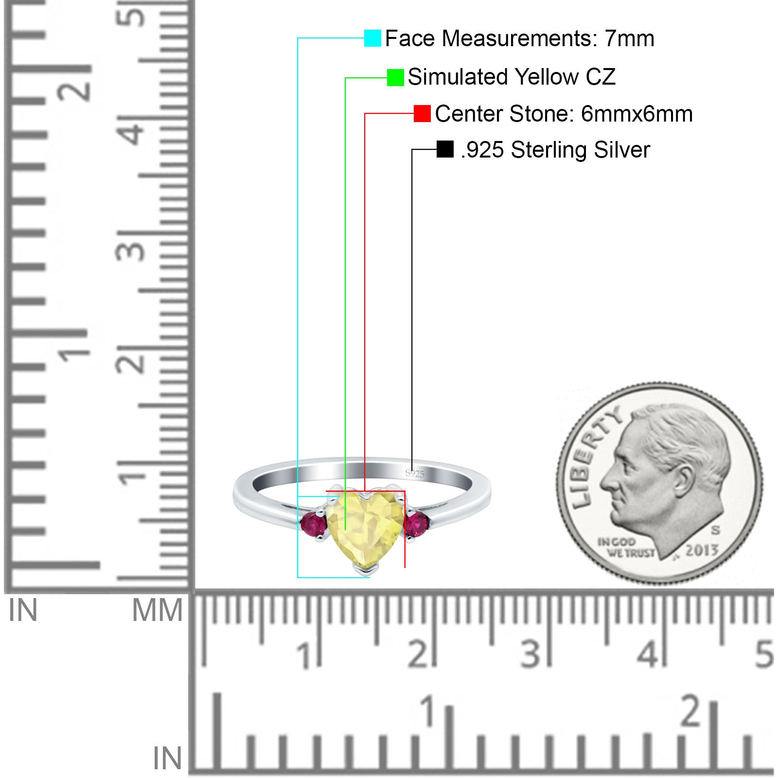 Art Deco Heart Three Stone Wedding Bridal Ring Round Ruby Simulated Cubic Zirconia 925 Sterling Silver