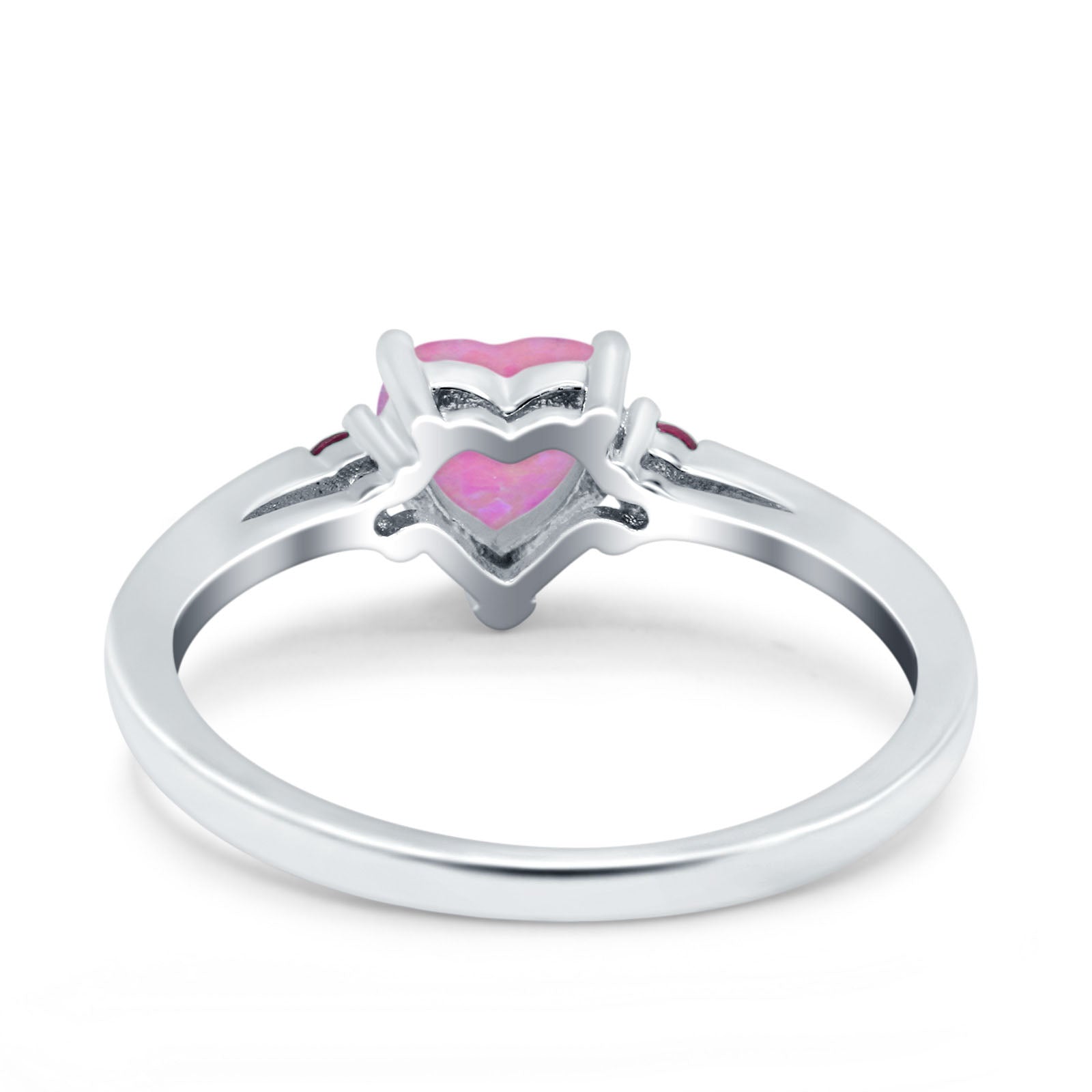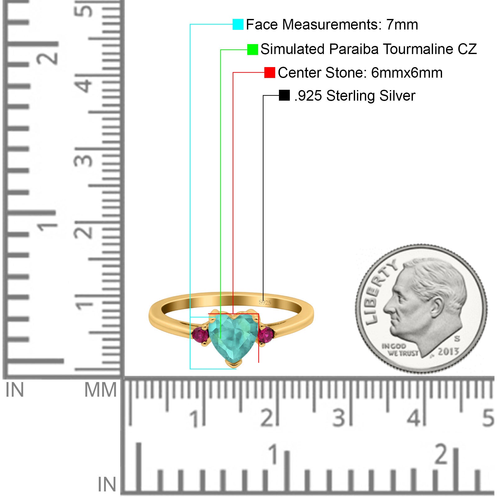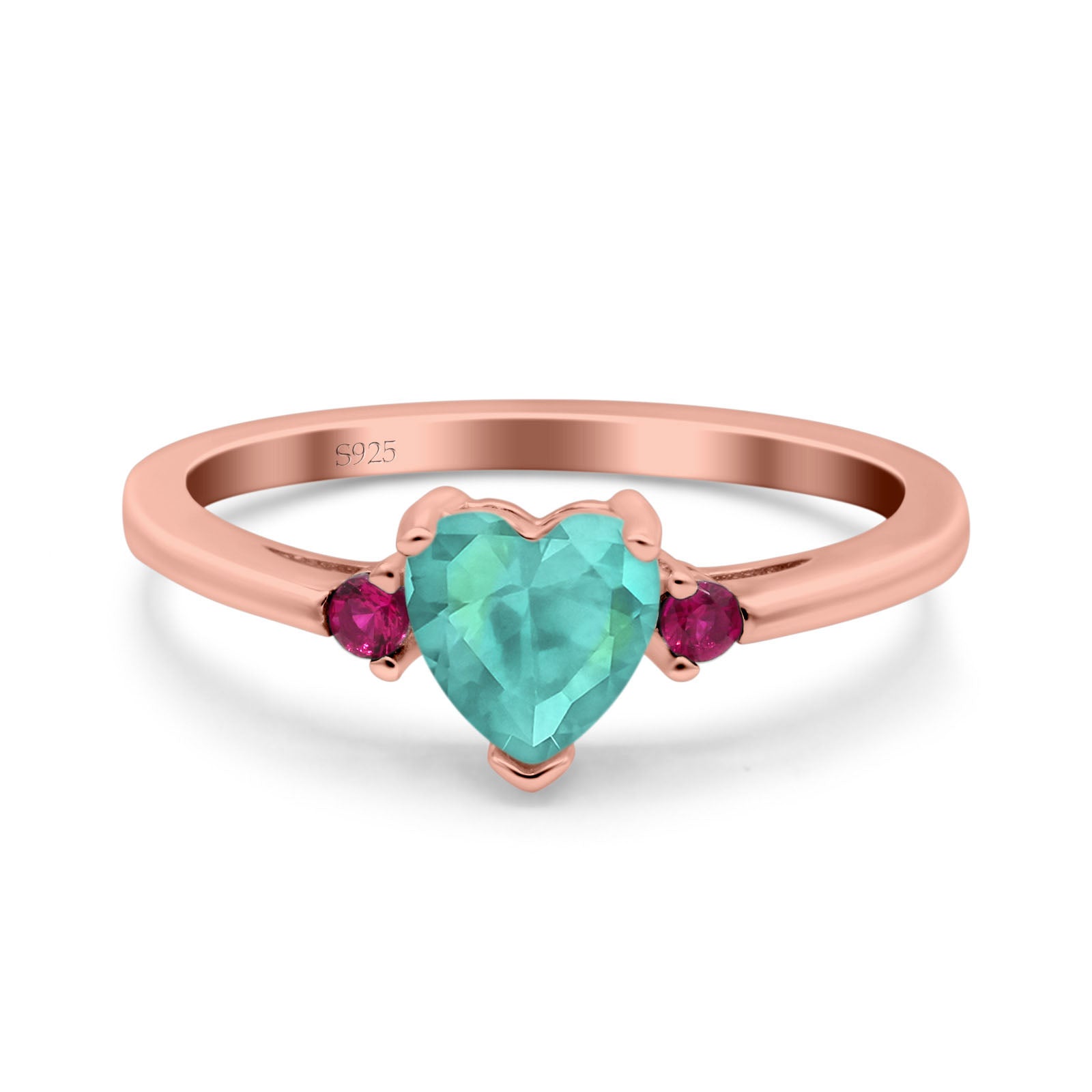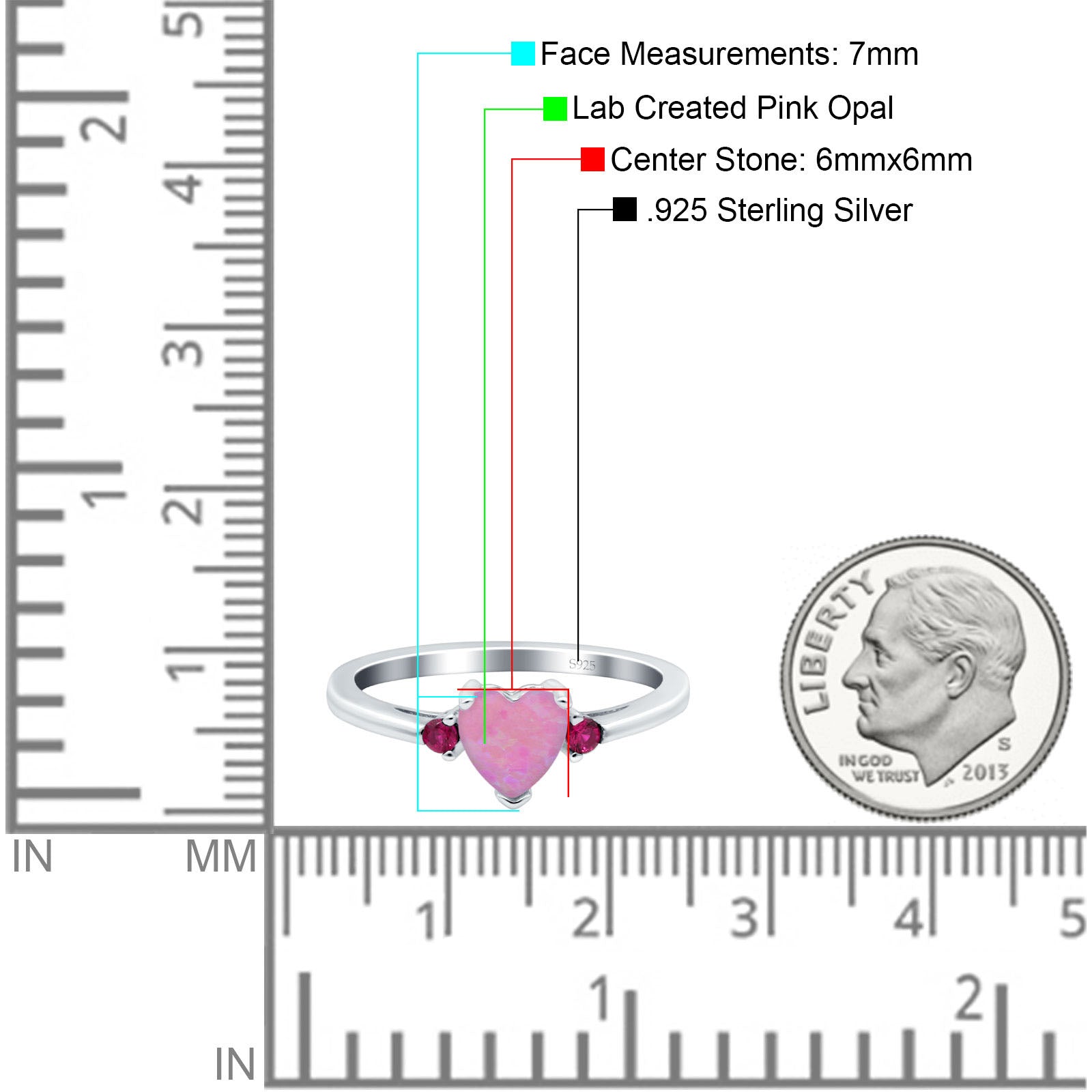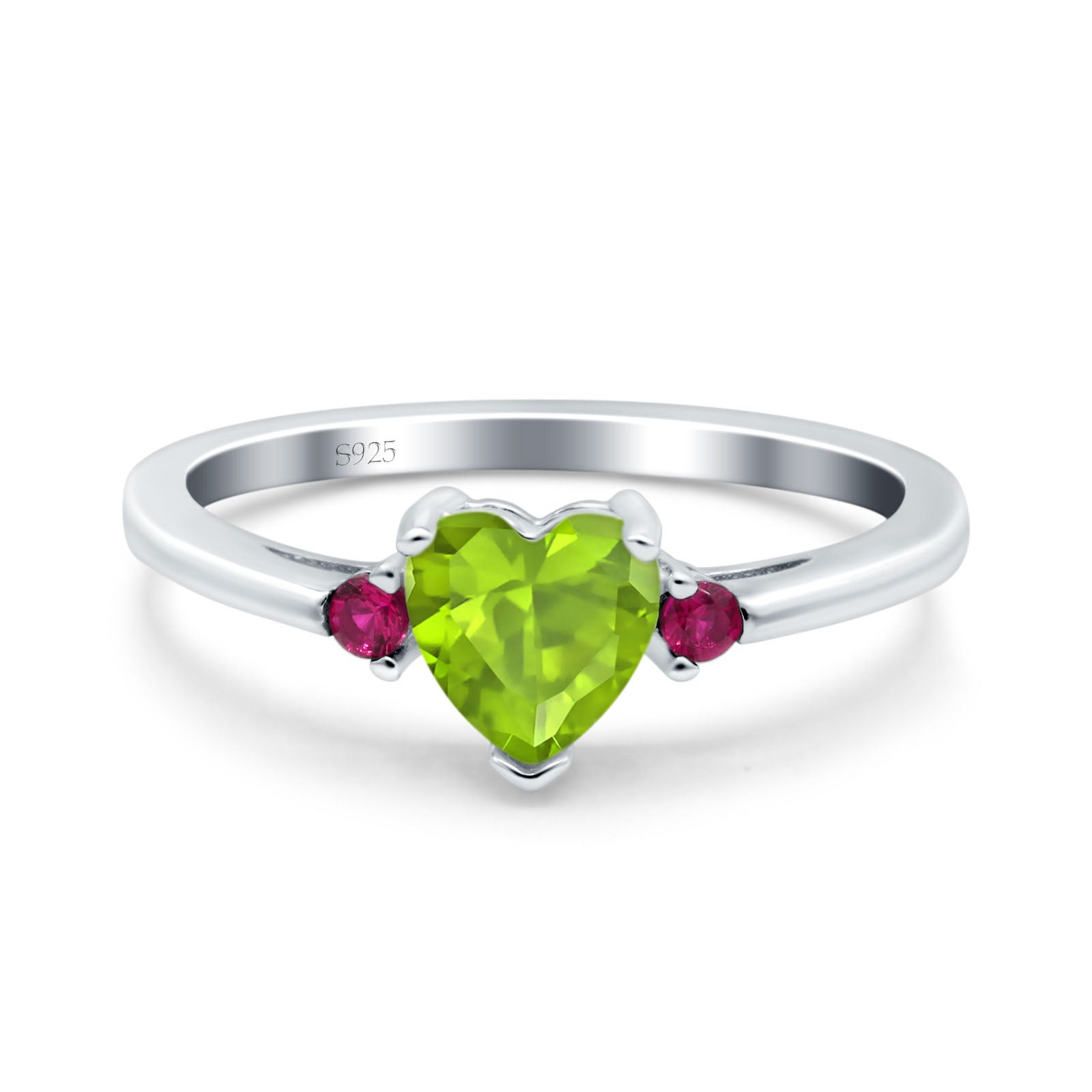 Art Deco Heart Three Stone Wedding Bridal Ring Round Ruby Simulated Cubic Zirconia 925 Sterling Silver