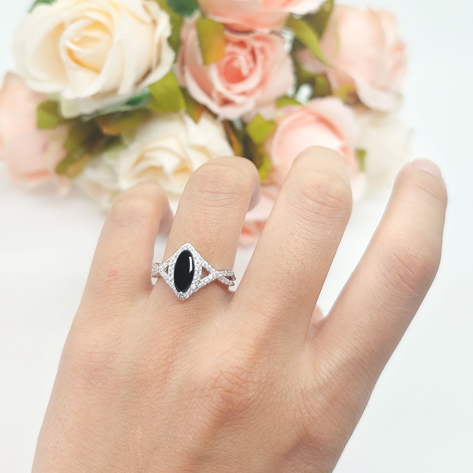 Natural Black Onyx Engagement Ring