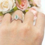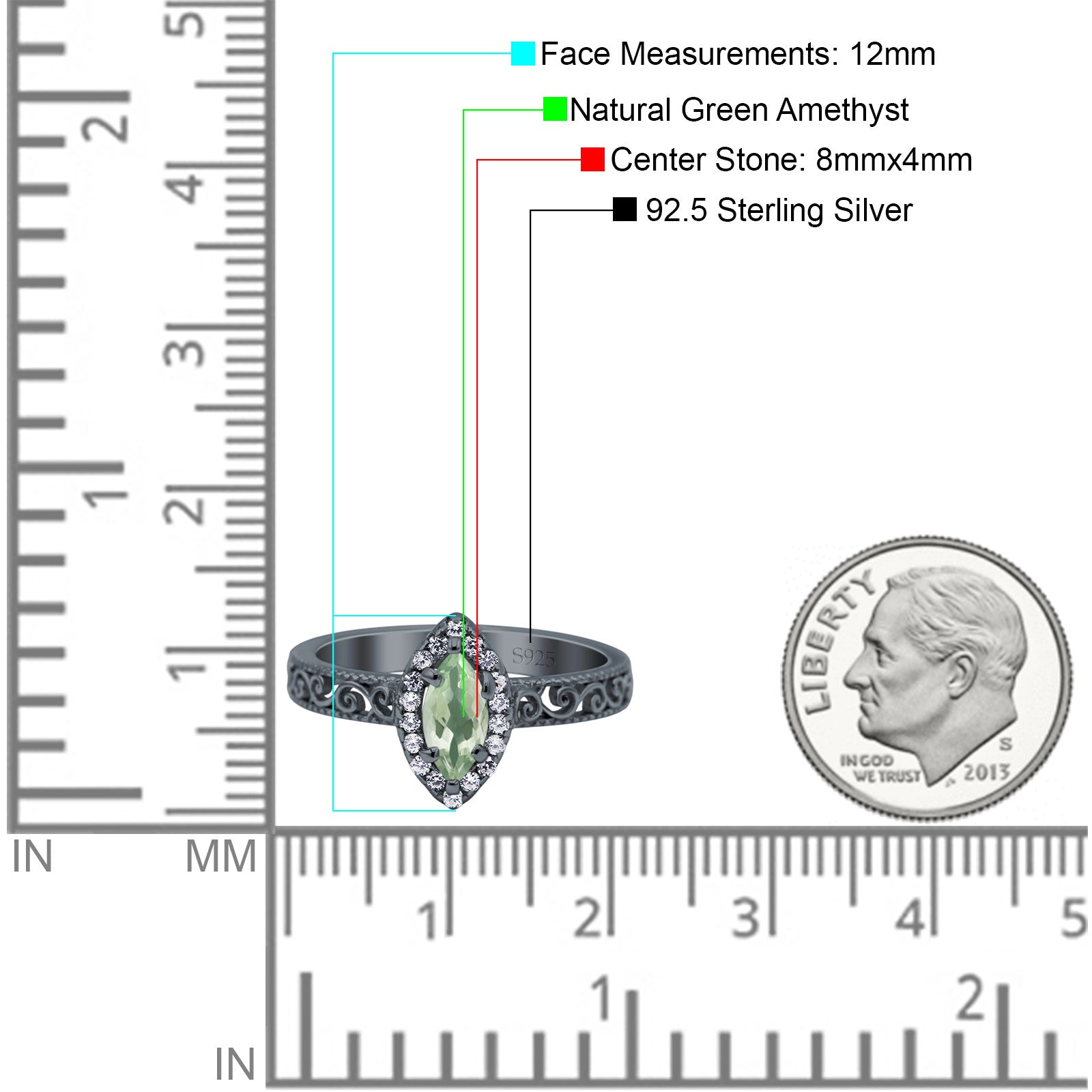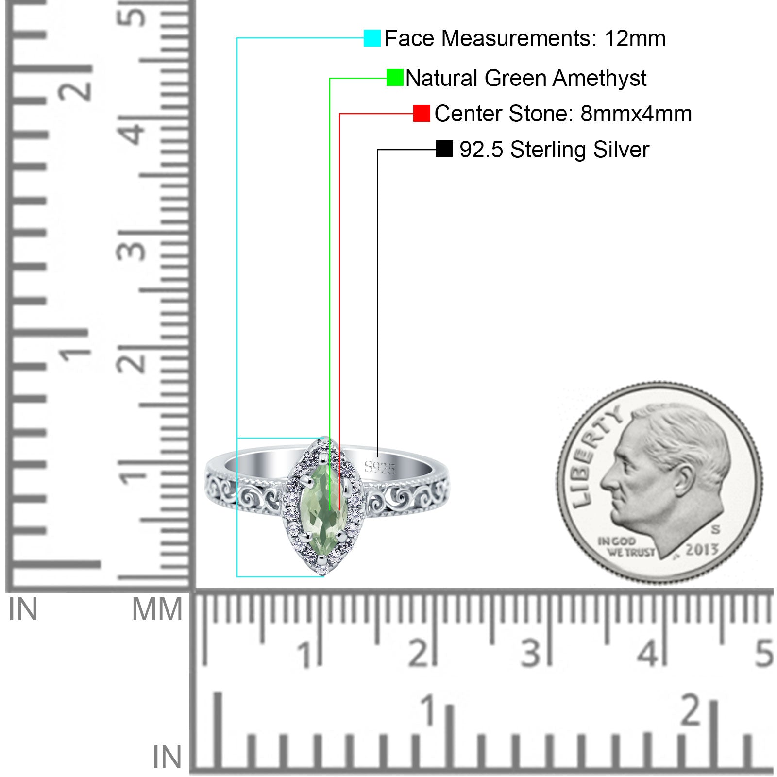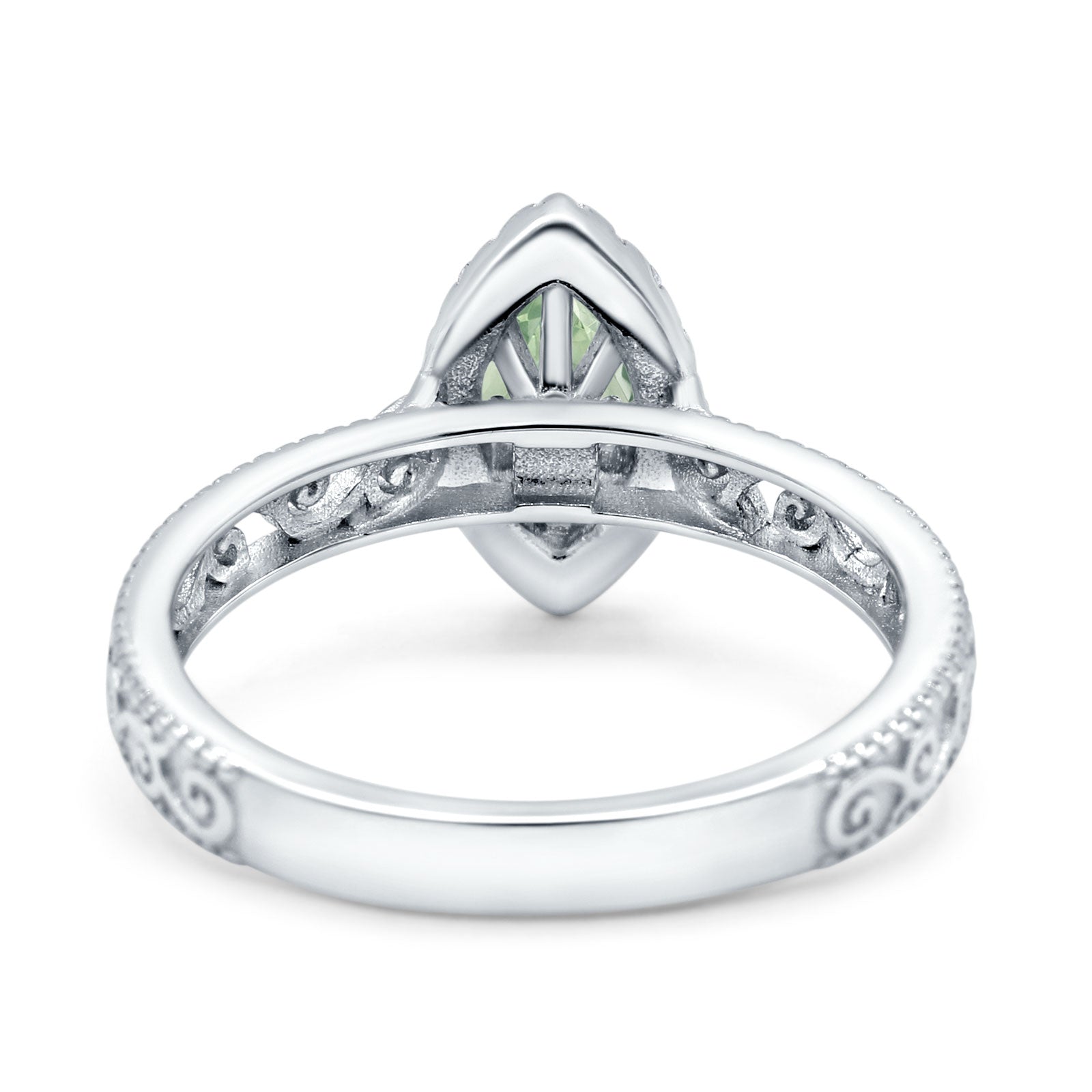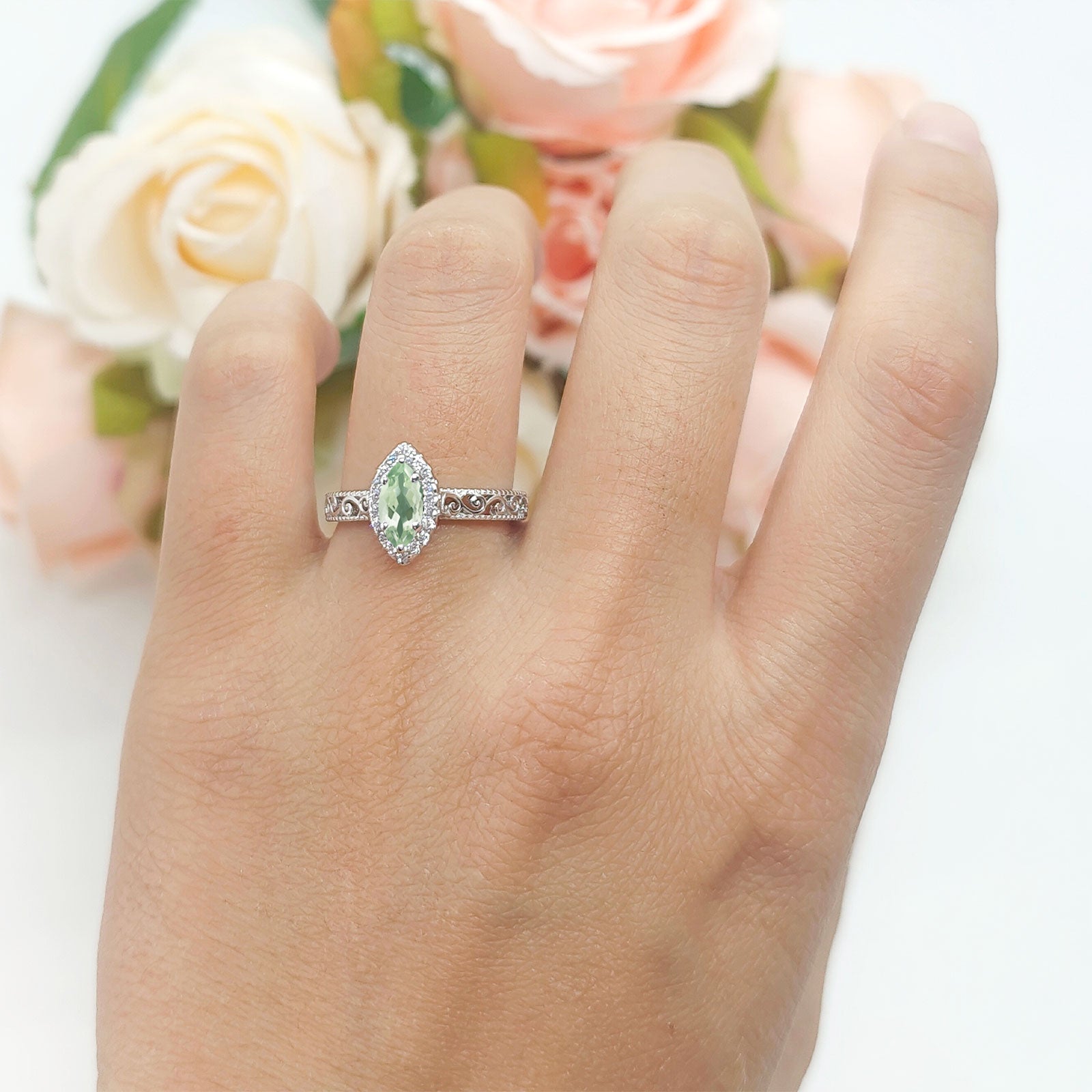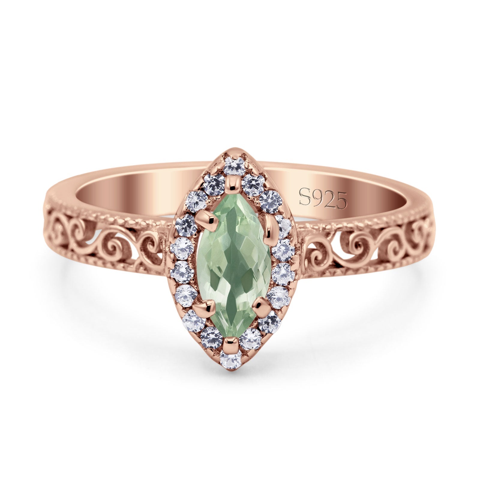 Art Deco Marquise Natural Green Amethyst Prasiolite Filigree Band Halo Ring 925 Sterling Silver