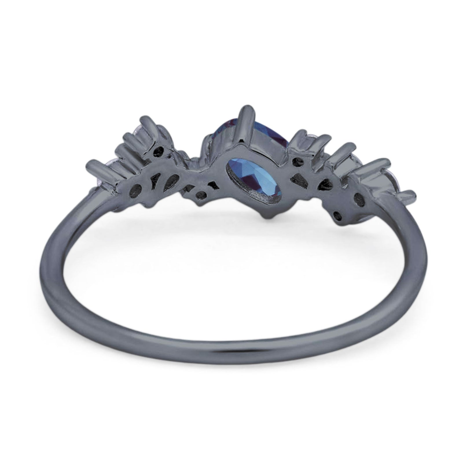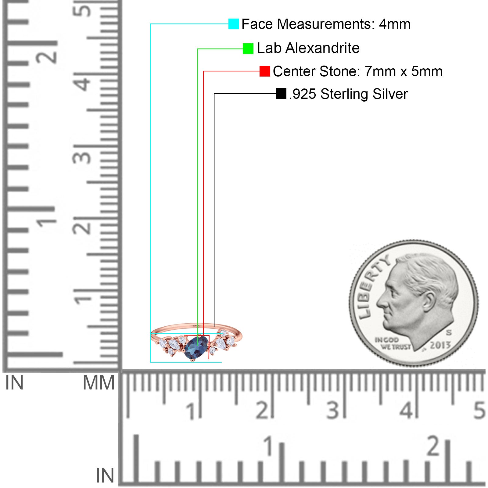 Art Deco Oval Lab Alexandrite Cluster CZ Ring 925 Sterling Silver