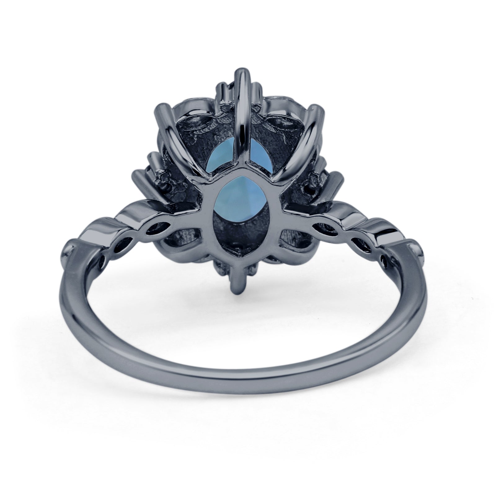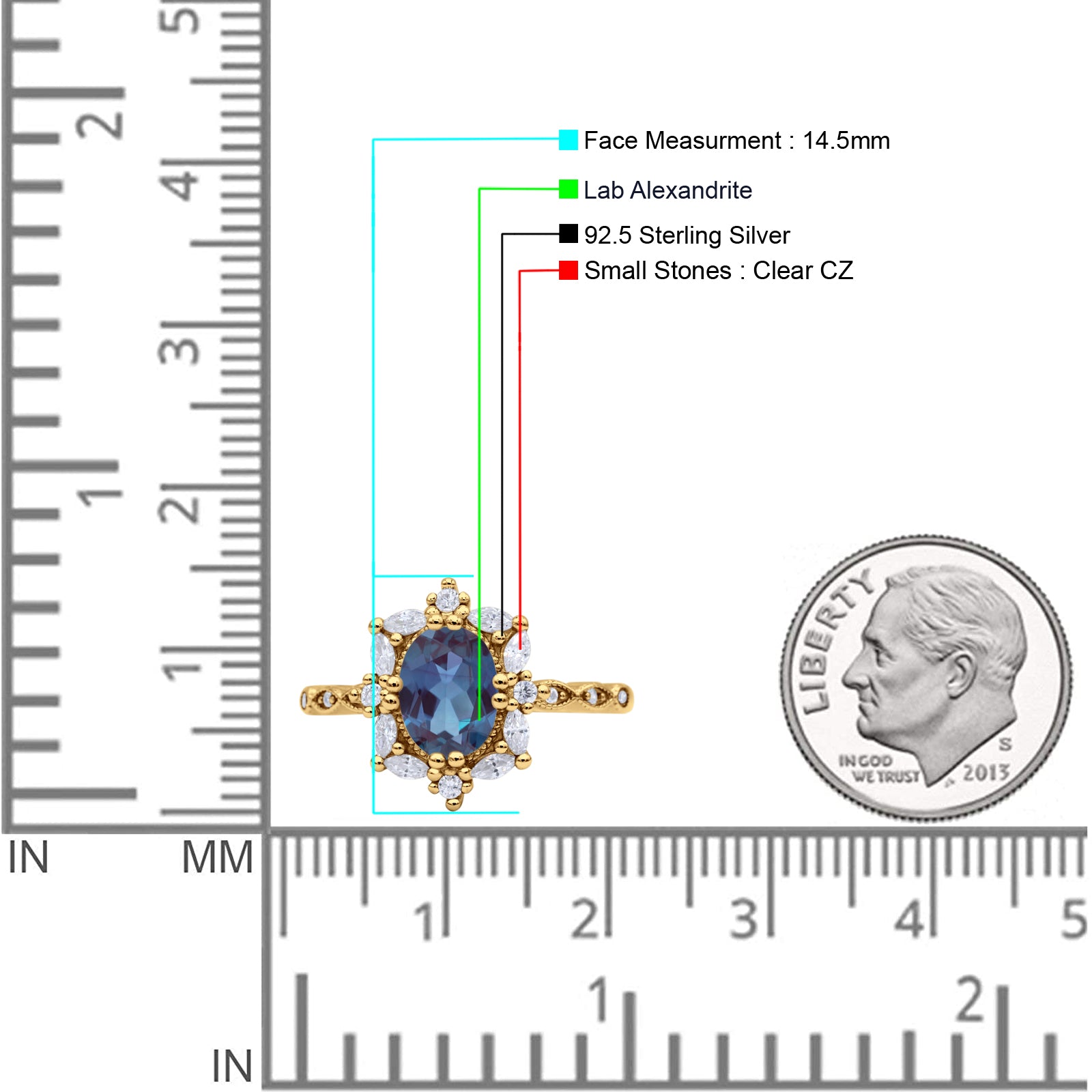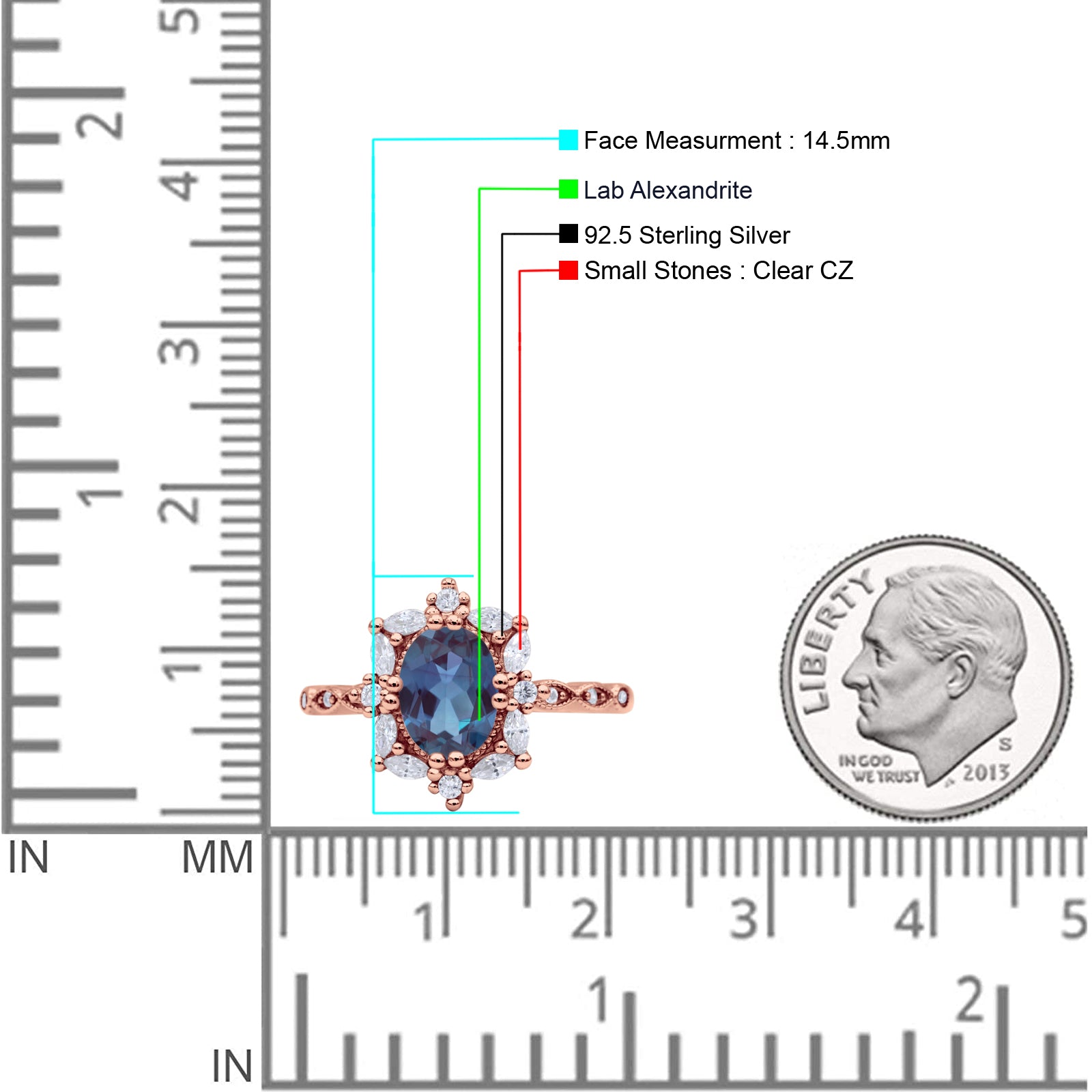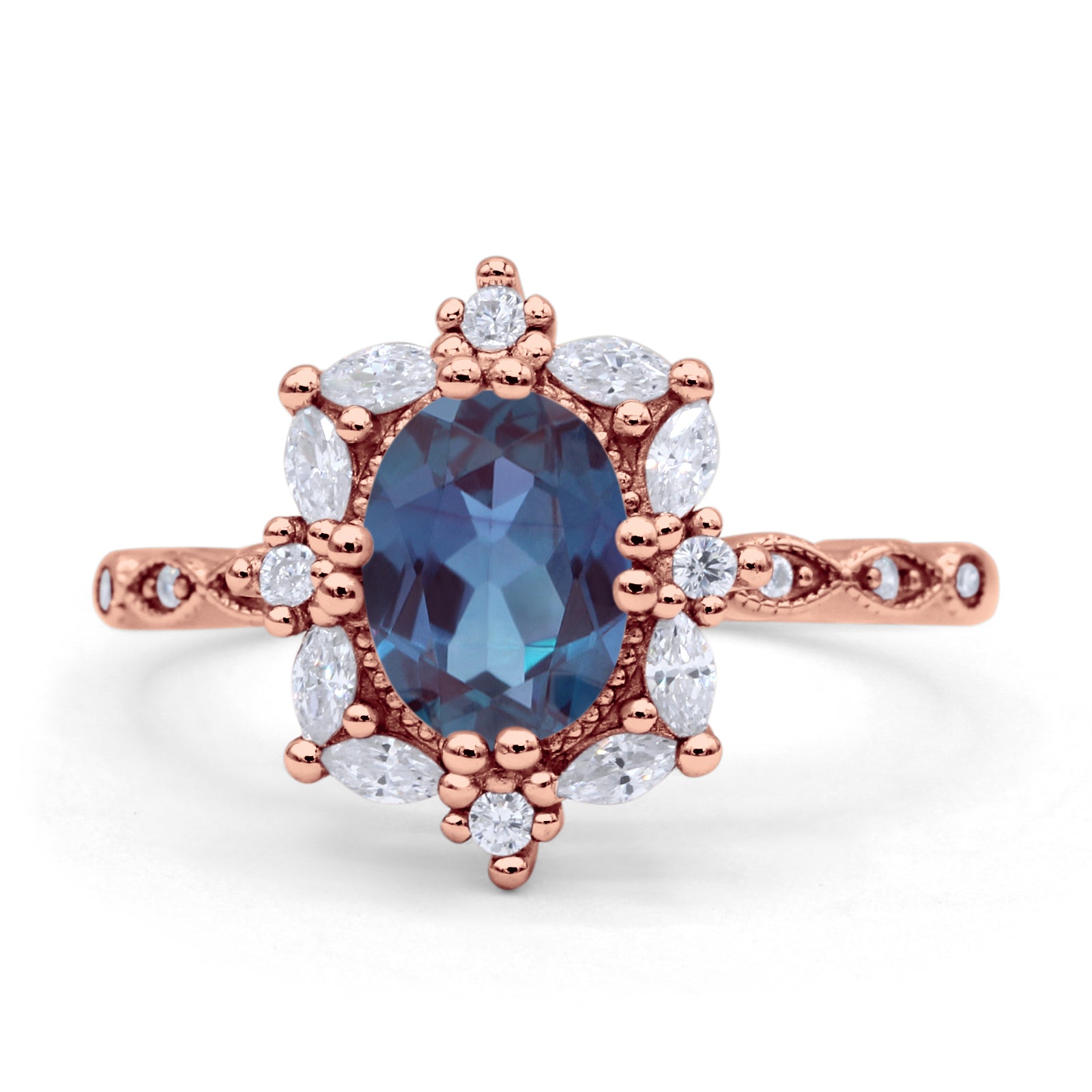 Art Deco Oval Lab Alexandrite Halo Ballerina Style Engagement Ring