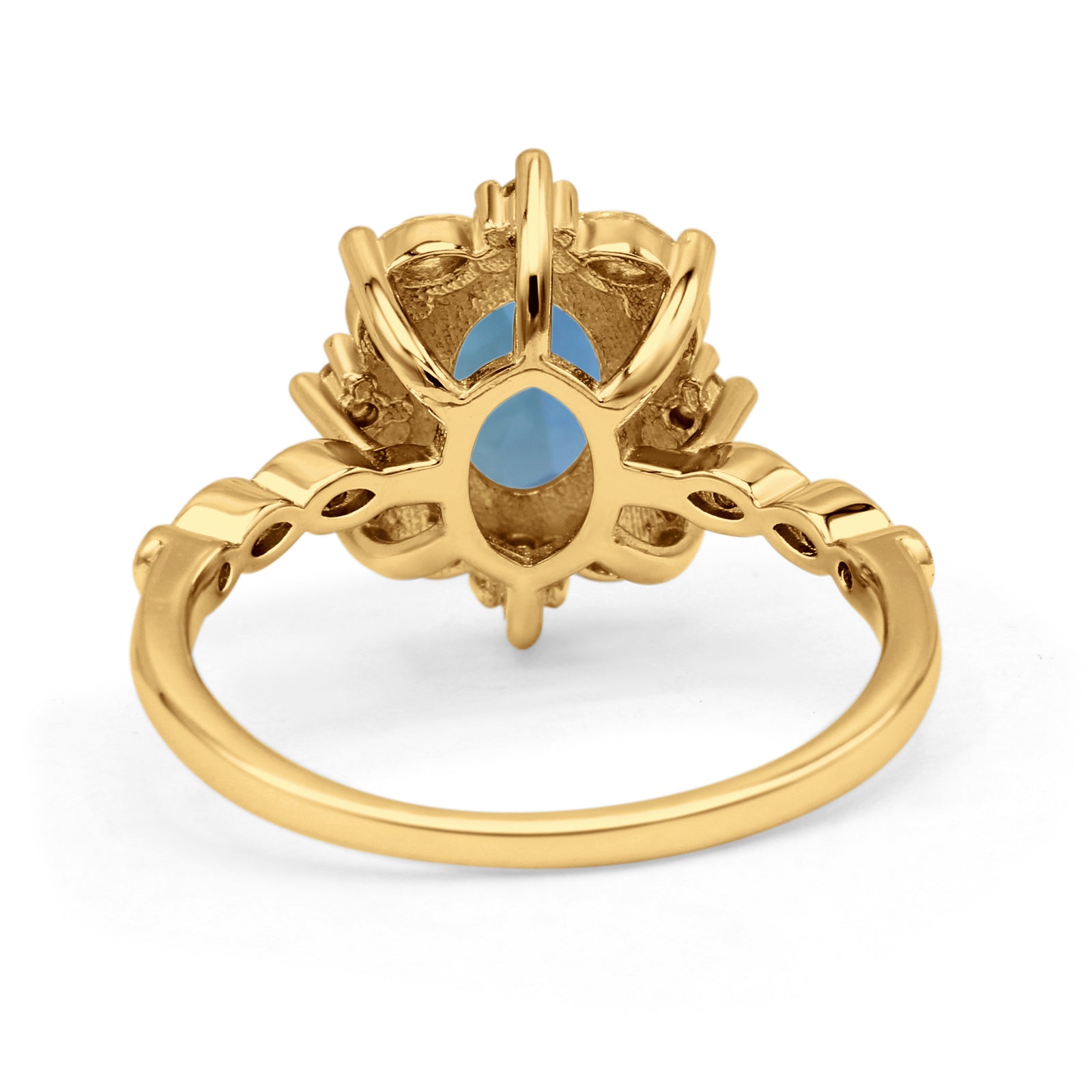 Product Description: Elevate with our art deco oval gemstone halo ballerina style engagement ring. Inspired by the glamour and sophistication of the art deco movement, this exquisite ring showcases a captivating oval gemstone at its heart, encircled by a shimmering halo of smaller gemstone. The addition of small side stones, which are cubic zirconia accentuates its allure even further, enhancing its overall splendor.