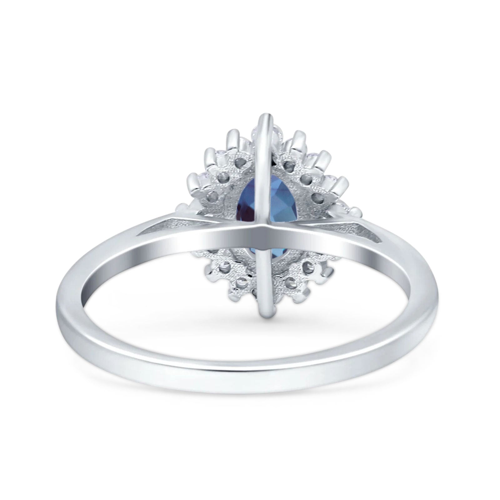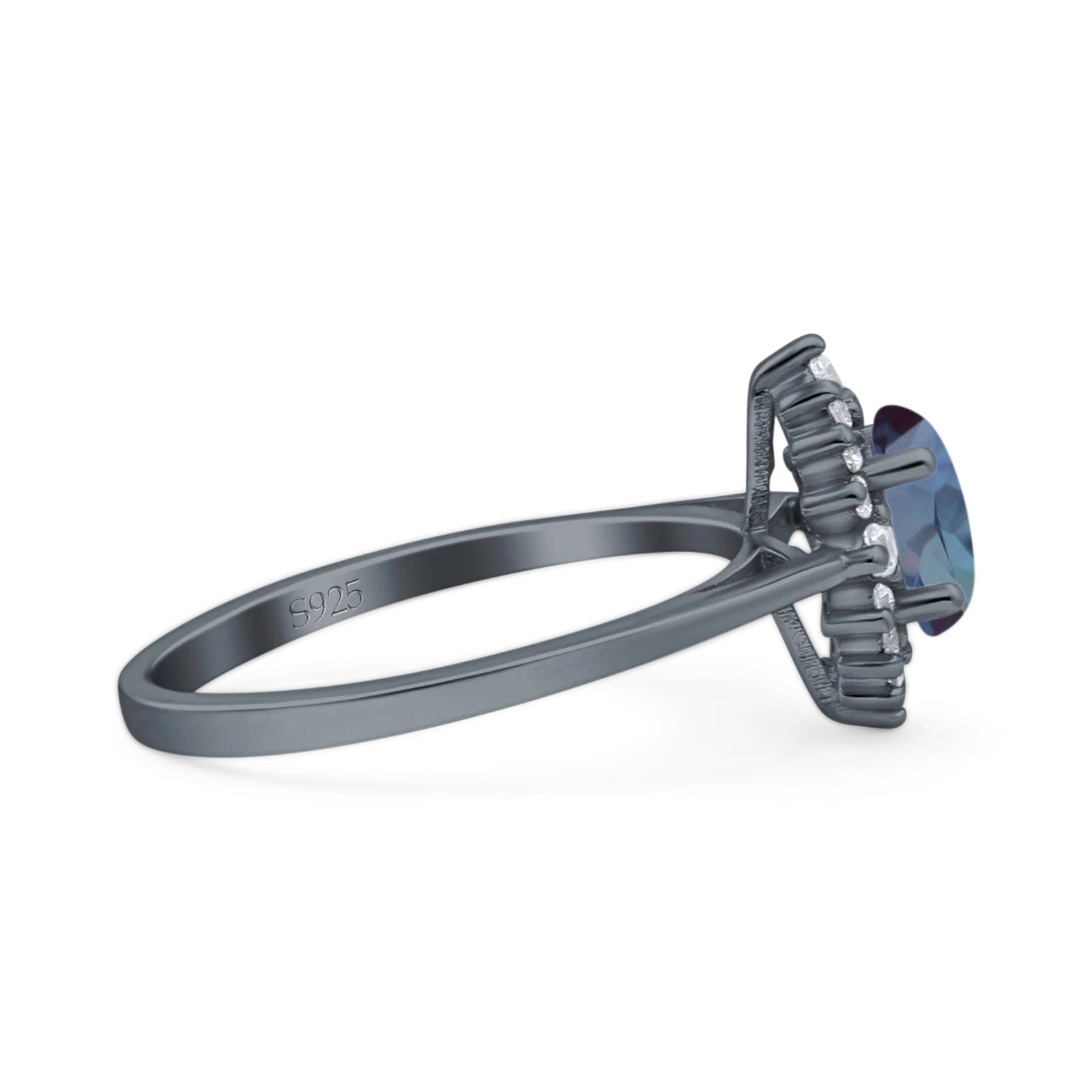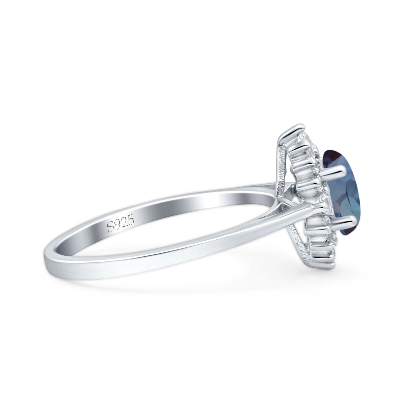Art Deco Oval Lab Alexandrite Halo Floral Cubic Zirconia Ring 925 Sterling Silver