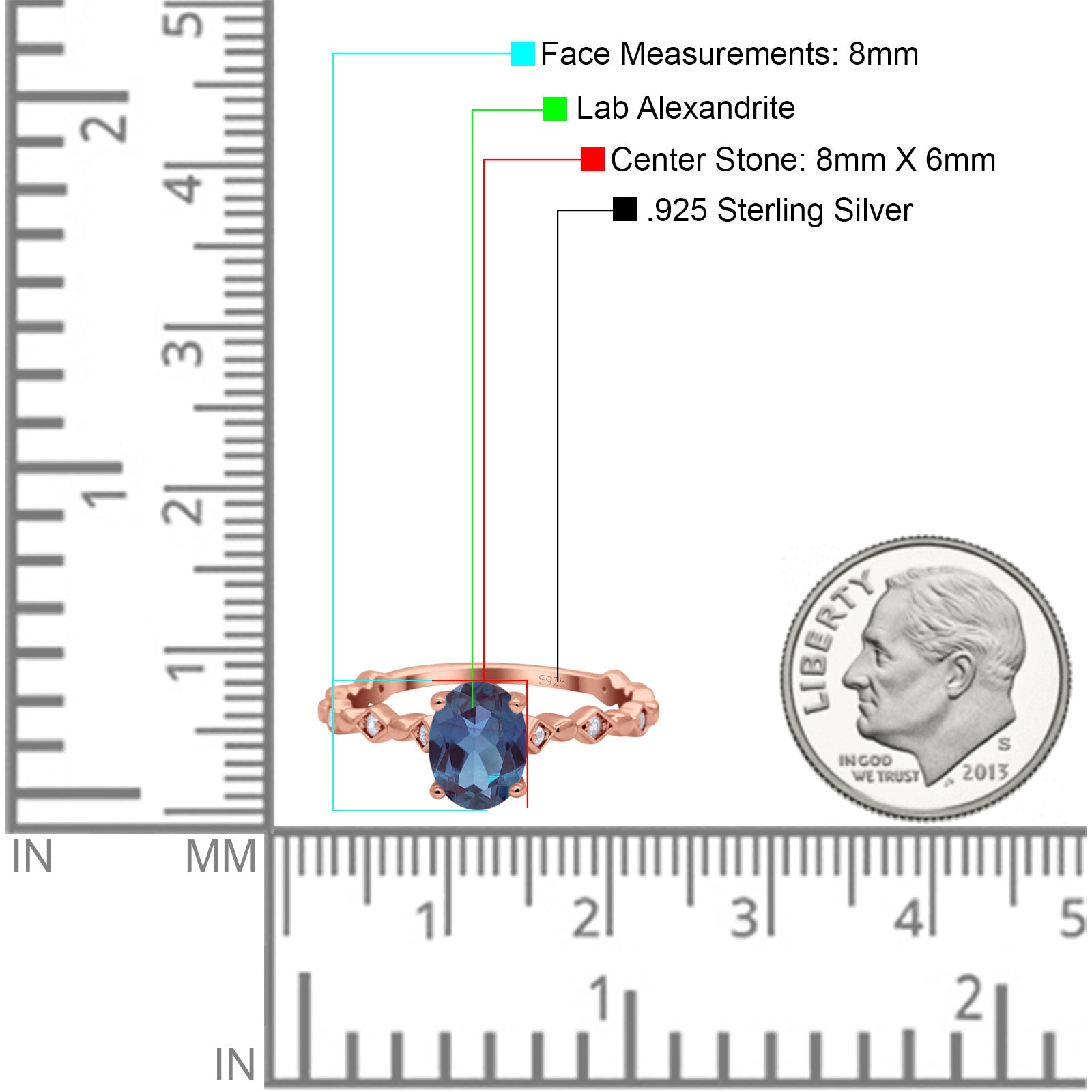 Lab Alexandrite Rose Tone Silver