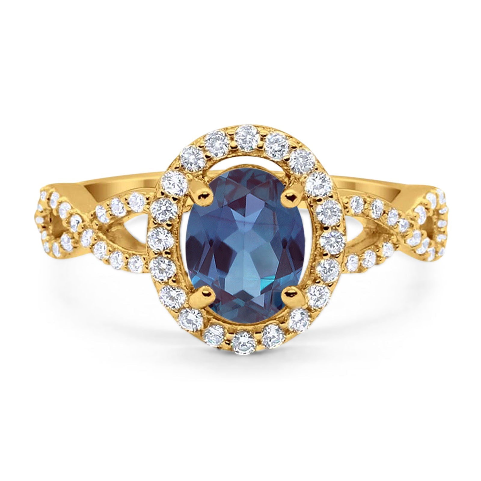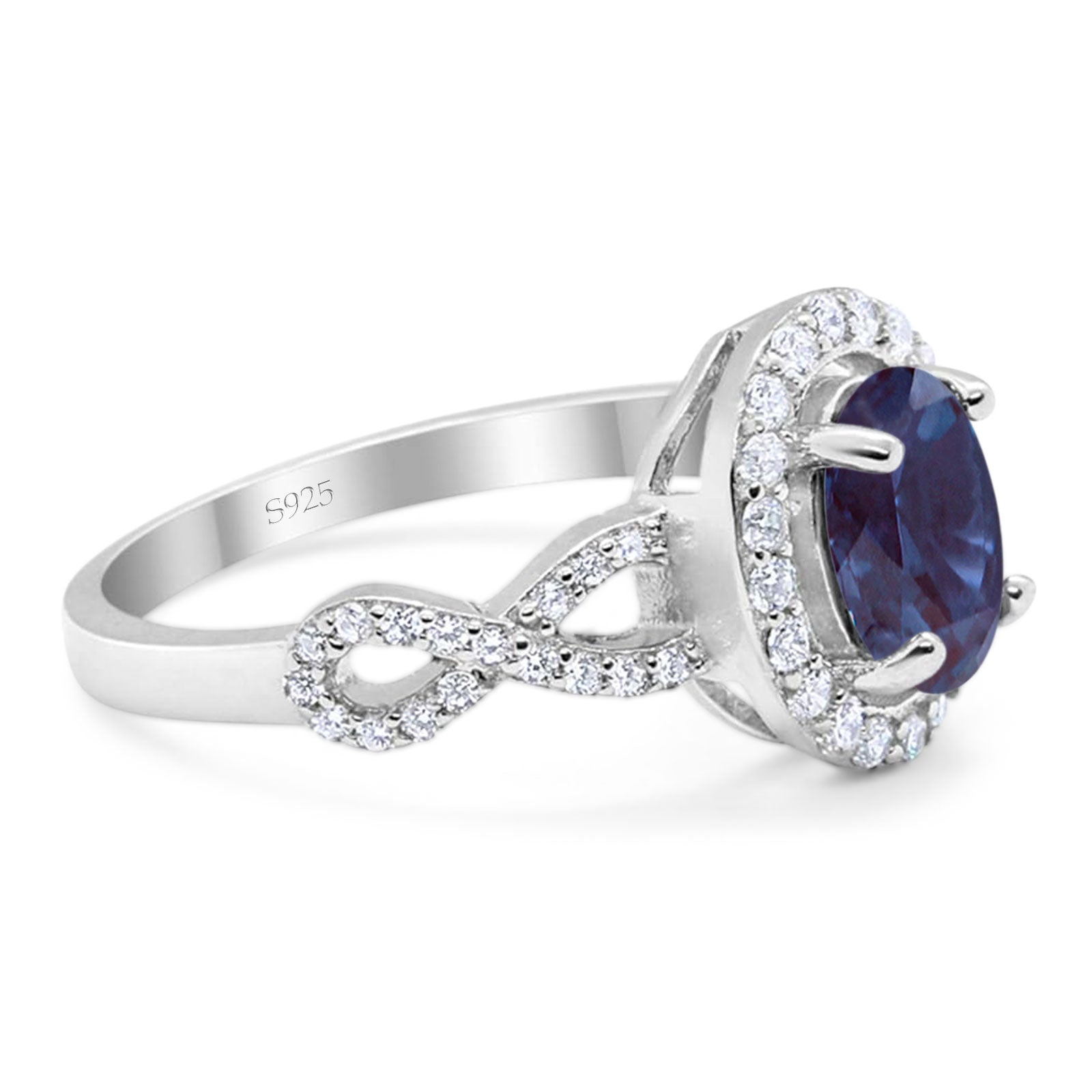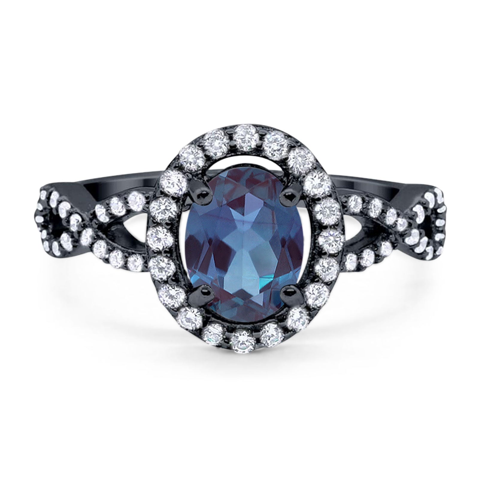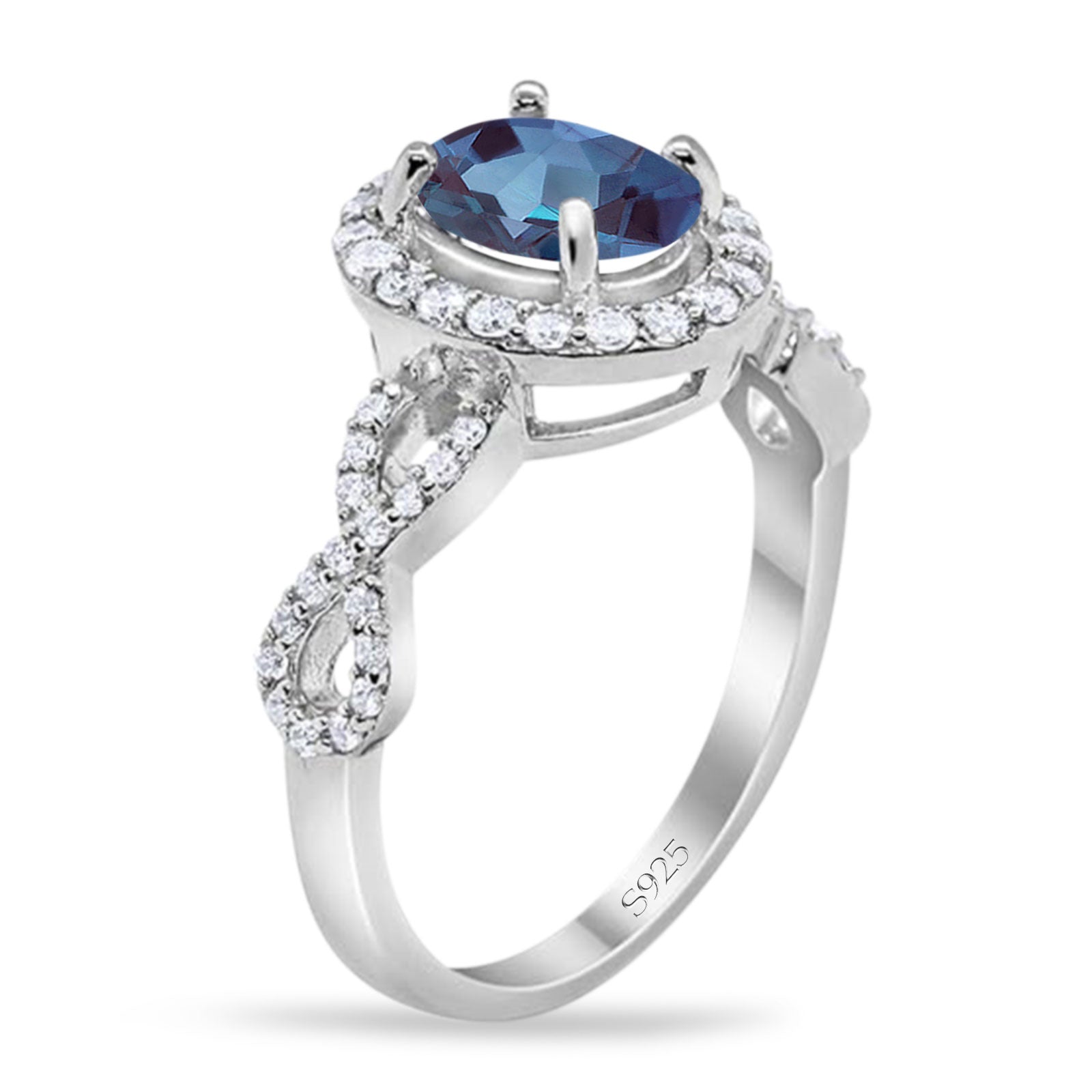 Art Deco Oval Lab Alexandrite Twisted Ring 925 Sterling Silver