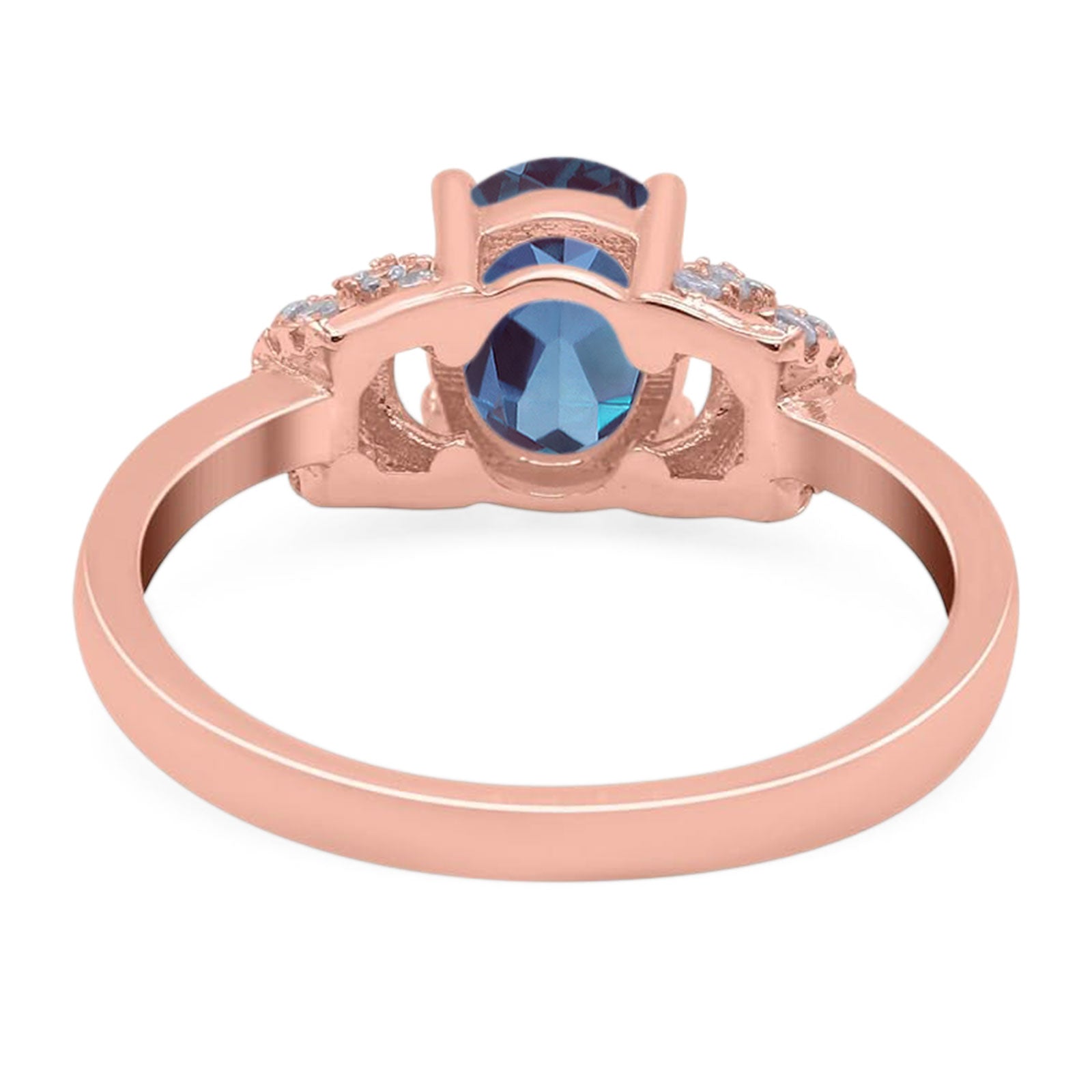 Art Deco Oval Lab Alexandrite Wedding Ring 925 Sterling Silver