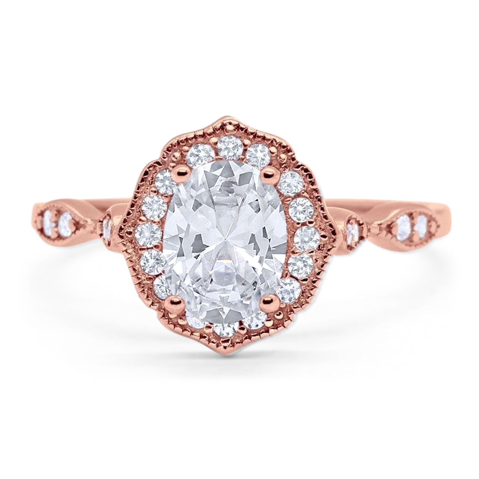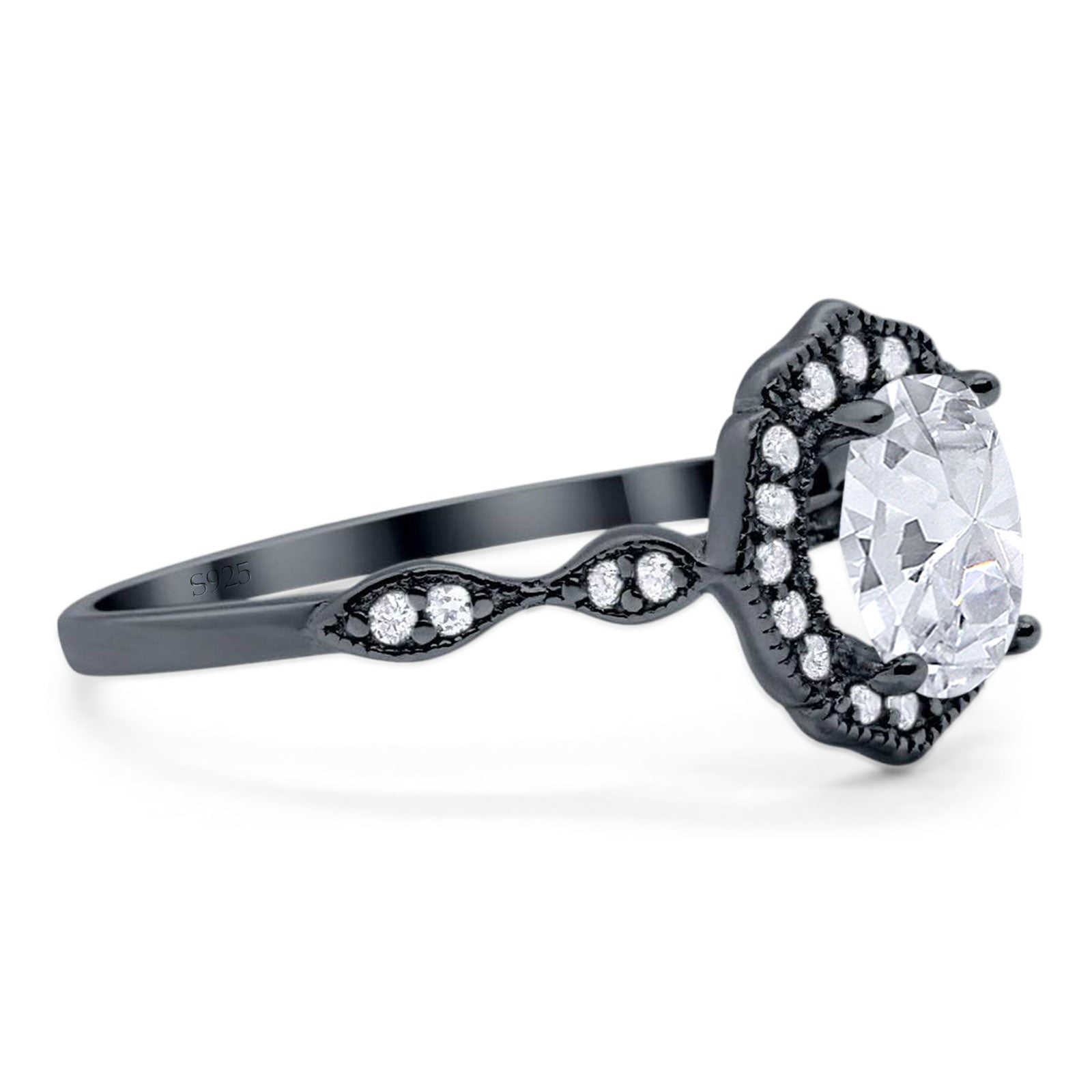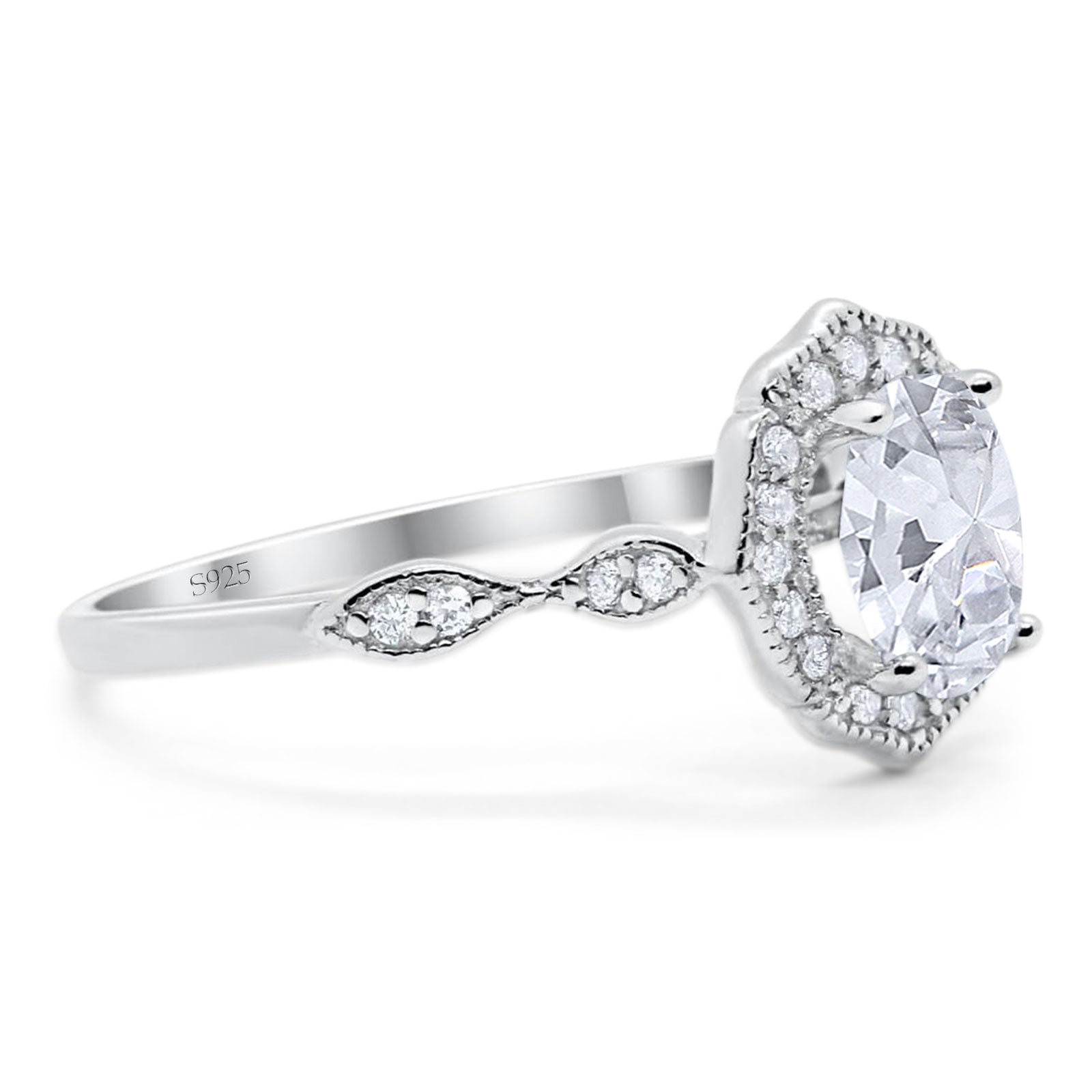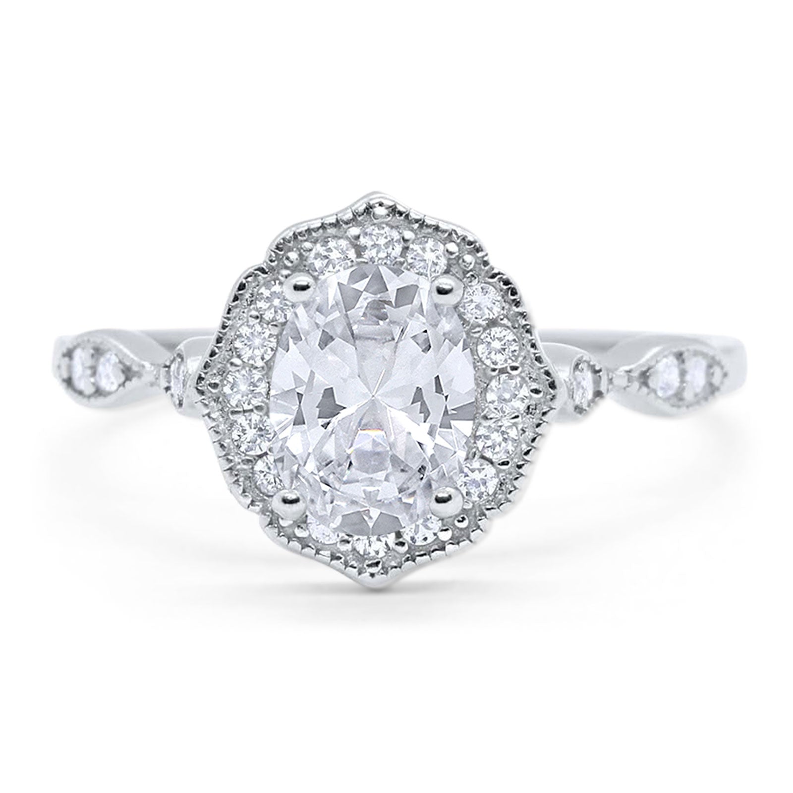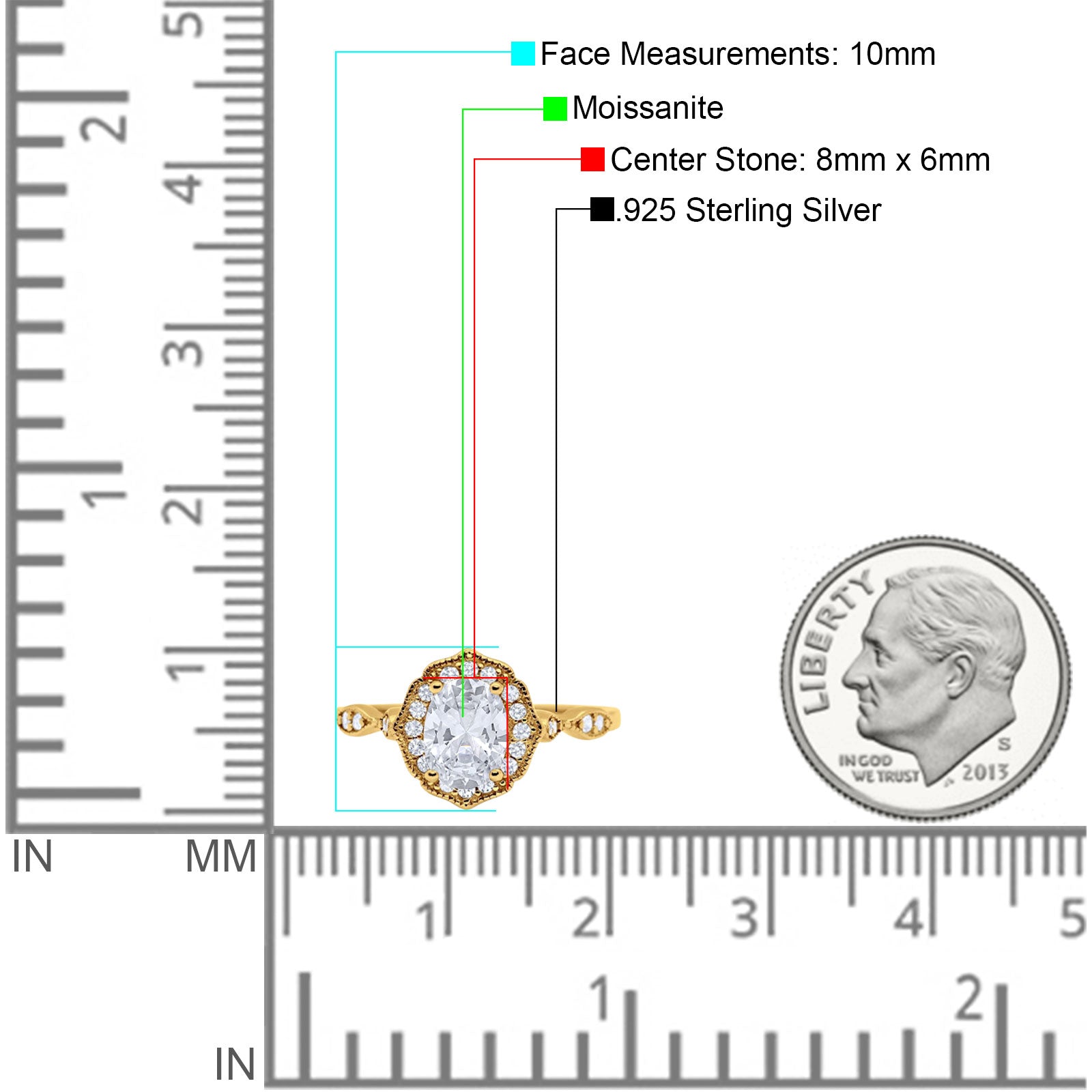 Art Deco Oval Moissanite Floral Ring 925 Sterling Silver