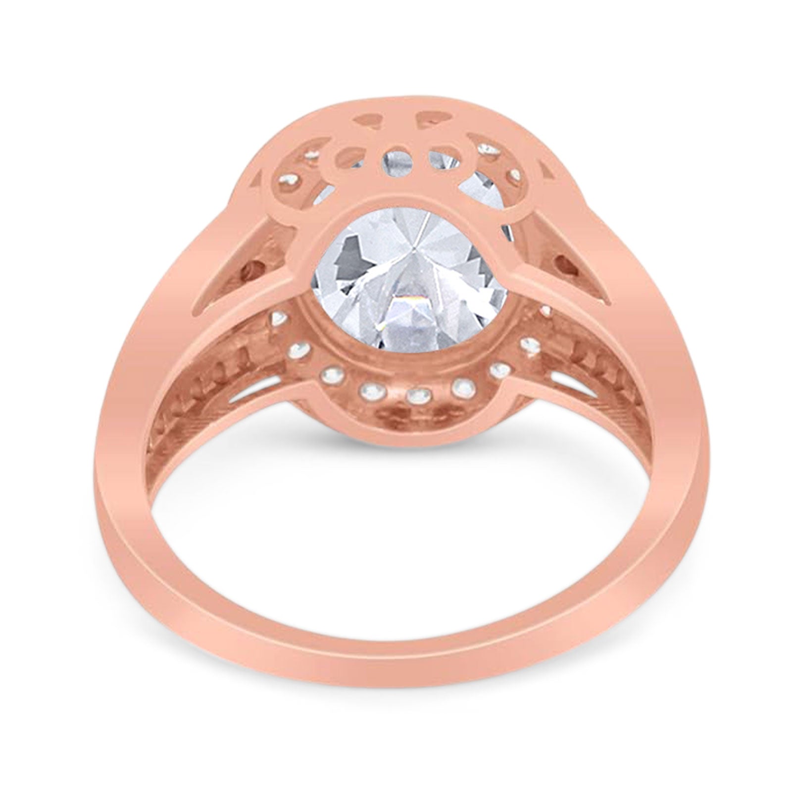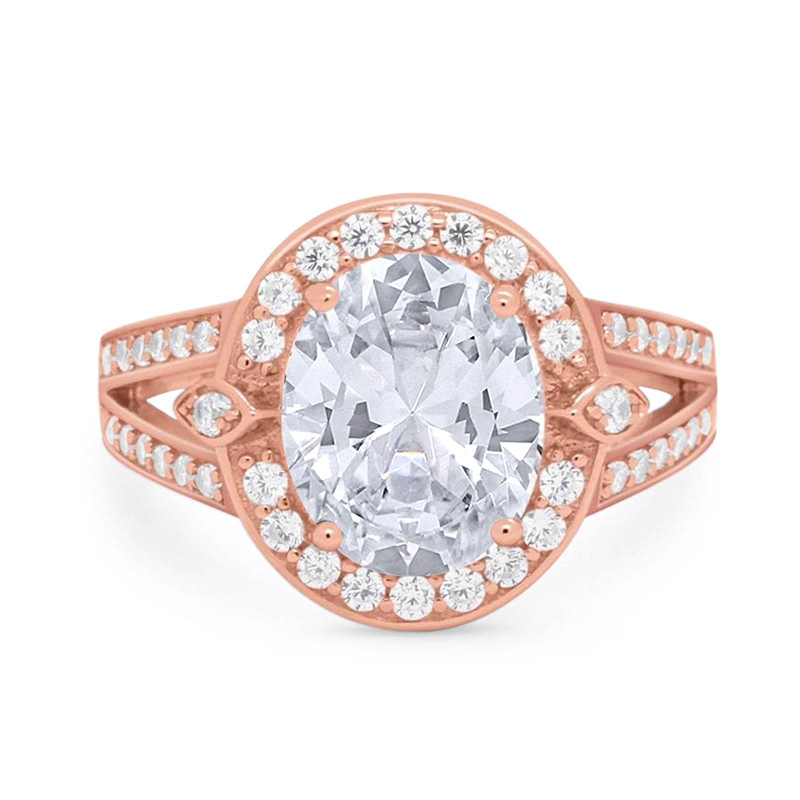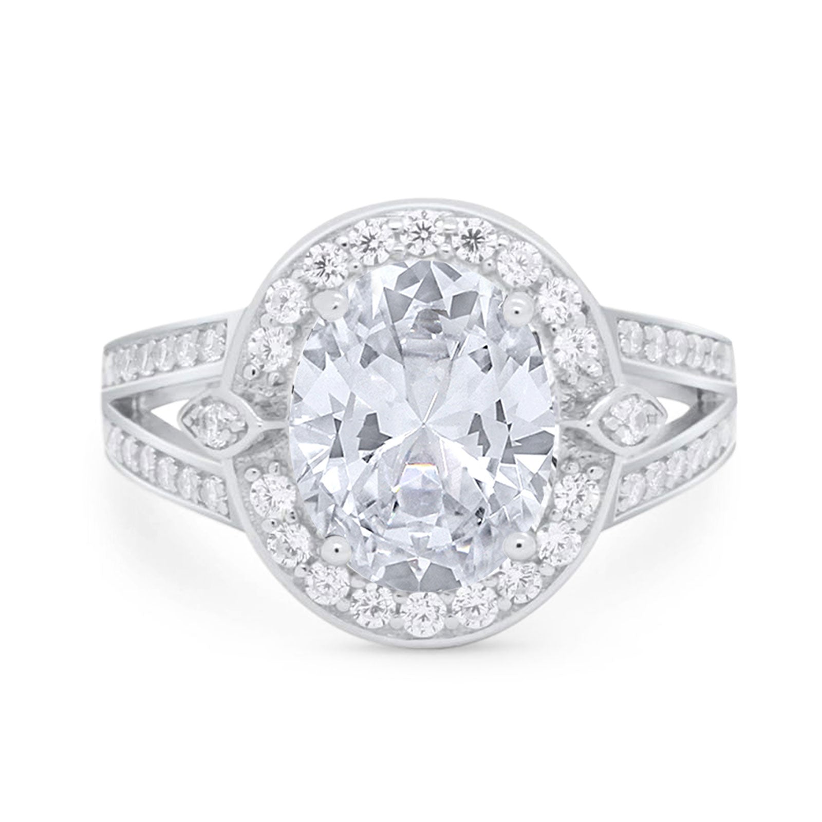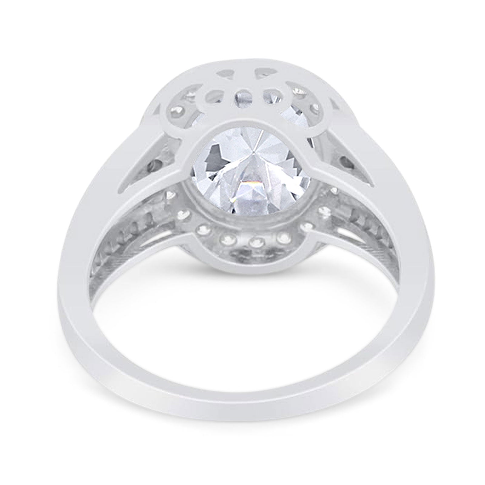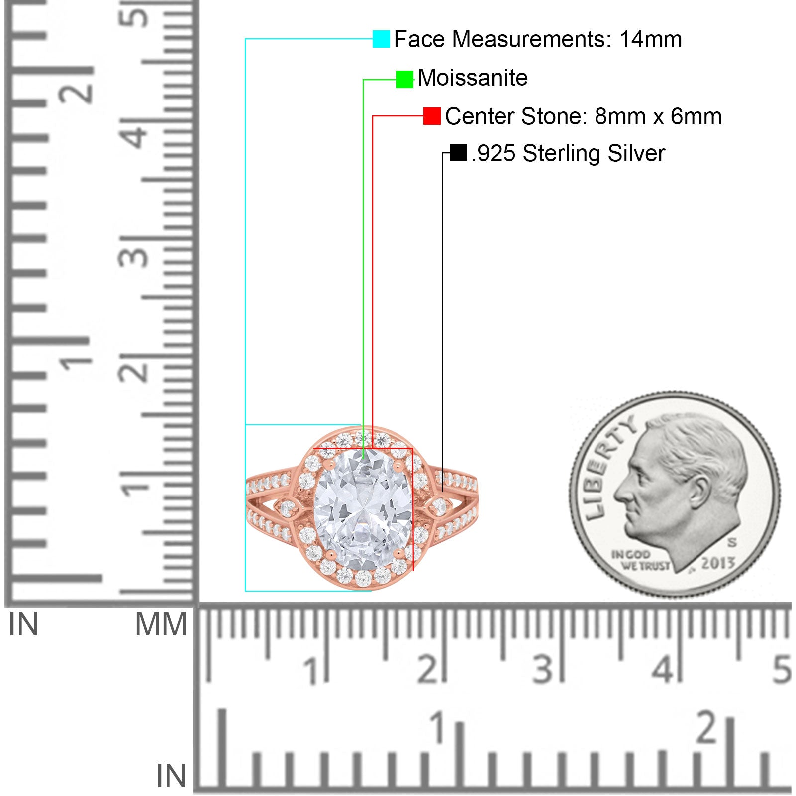 Art Deco Oval Moissanite Split Shank Ring 925 Sterling Silver