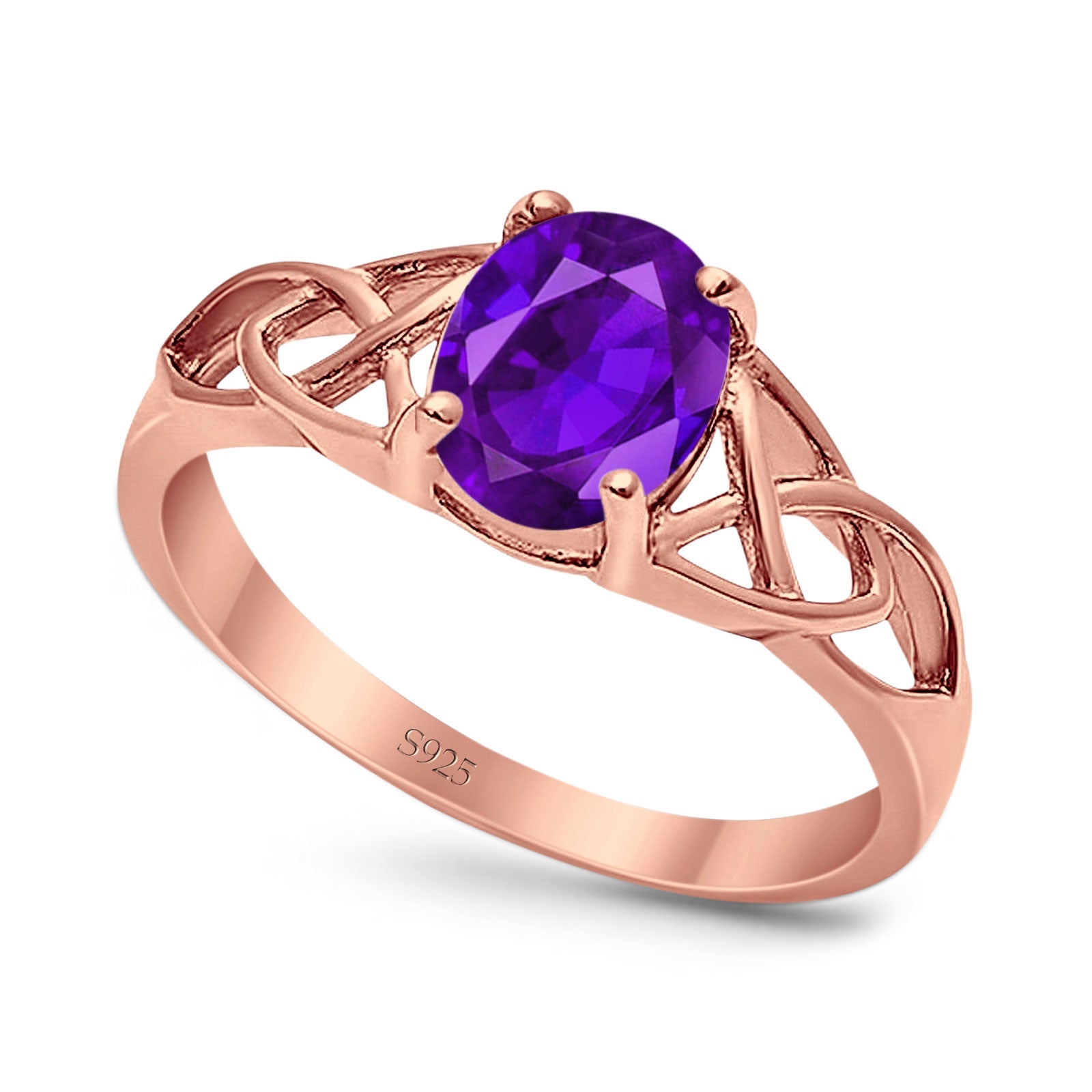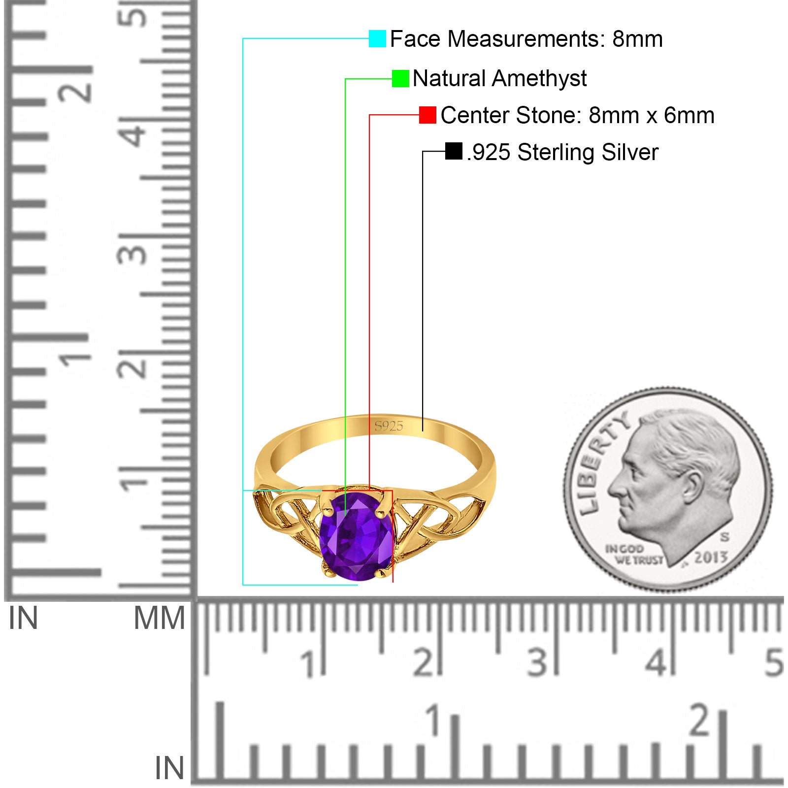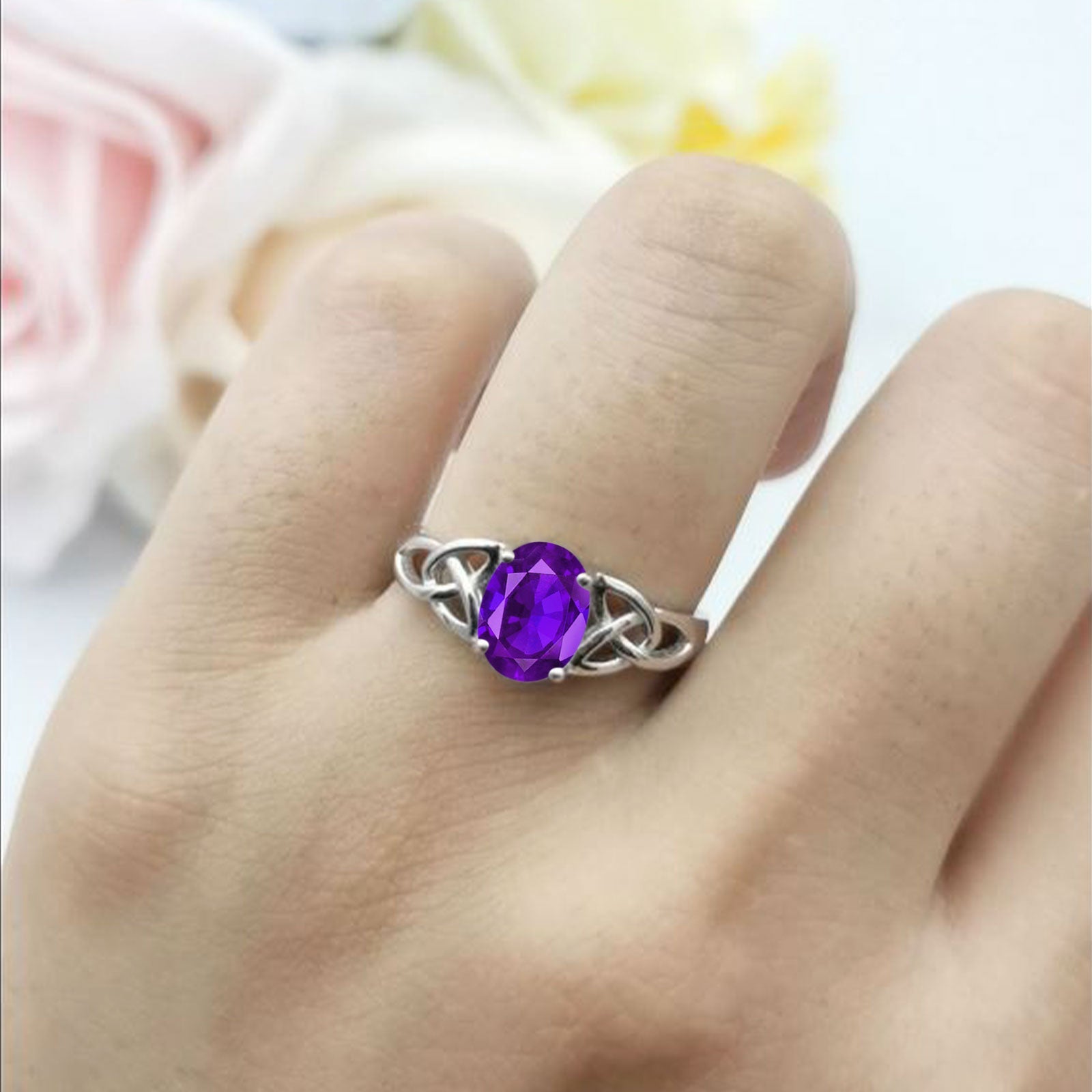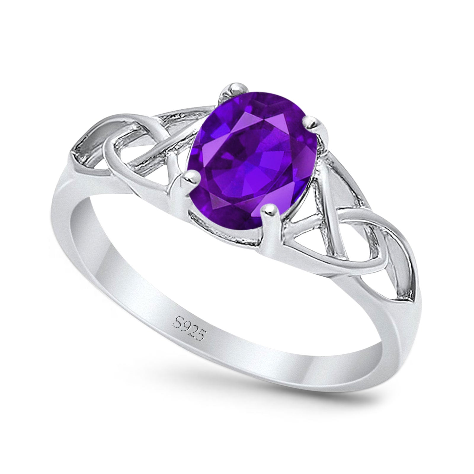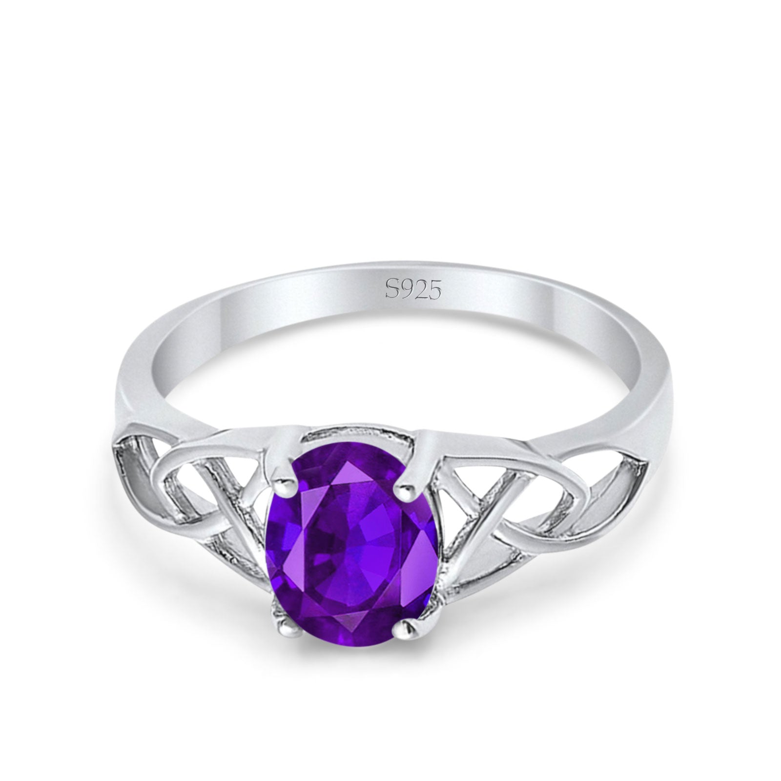 Art Deco Oval Natural Amethyst Celtic Trinity Knot Ring 925 Sterling Silver