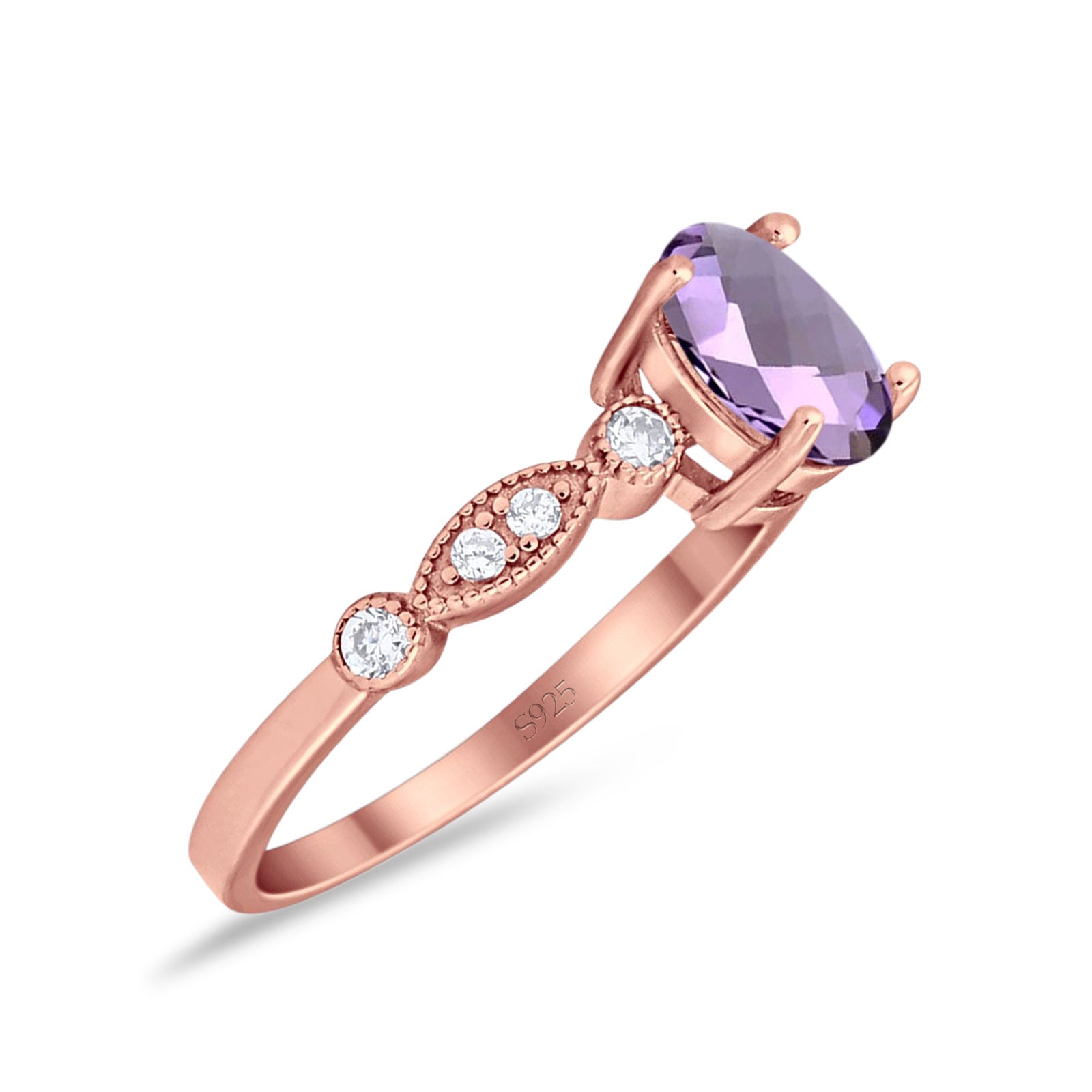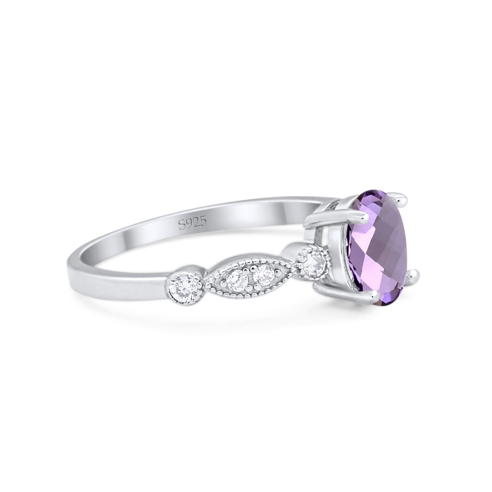 Art Deco Oval Natural Amethyst Marquise Style Ring 925 Sterling Silver