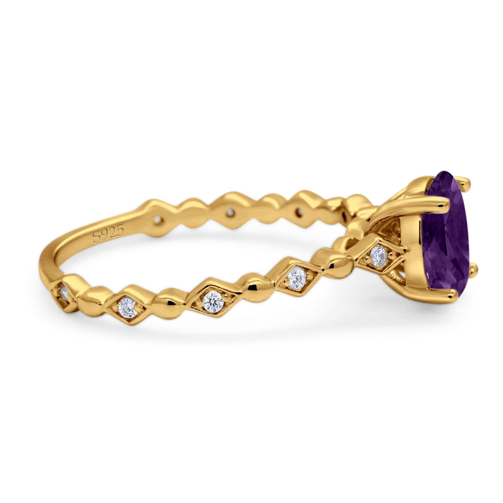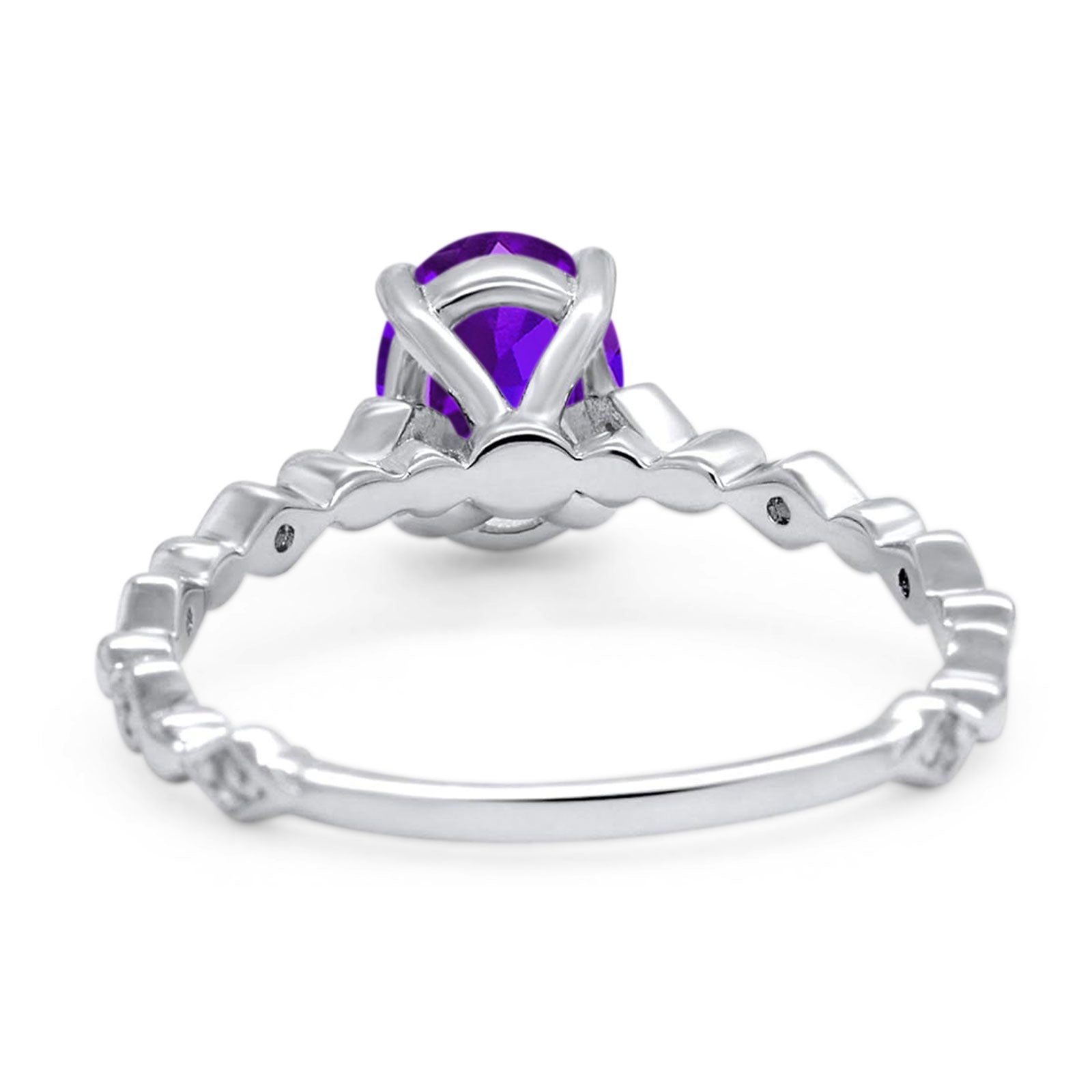 Art Deco Oval Natural Amethyst Solitaire Ring 925 Sterling Silver