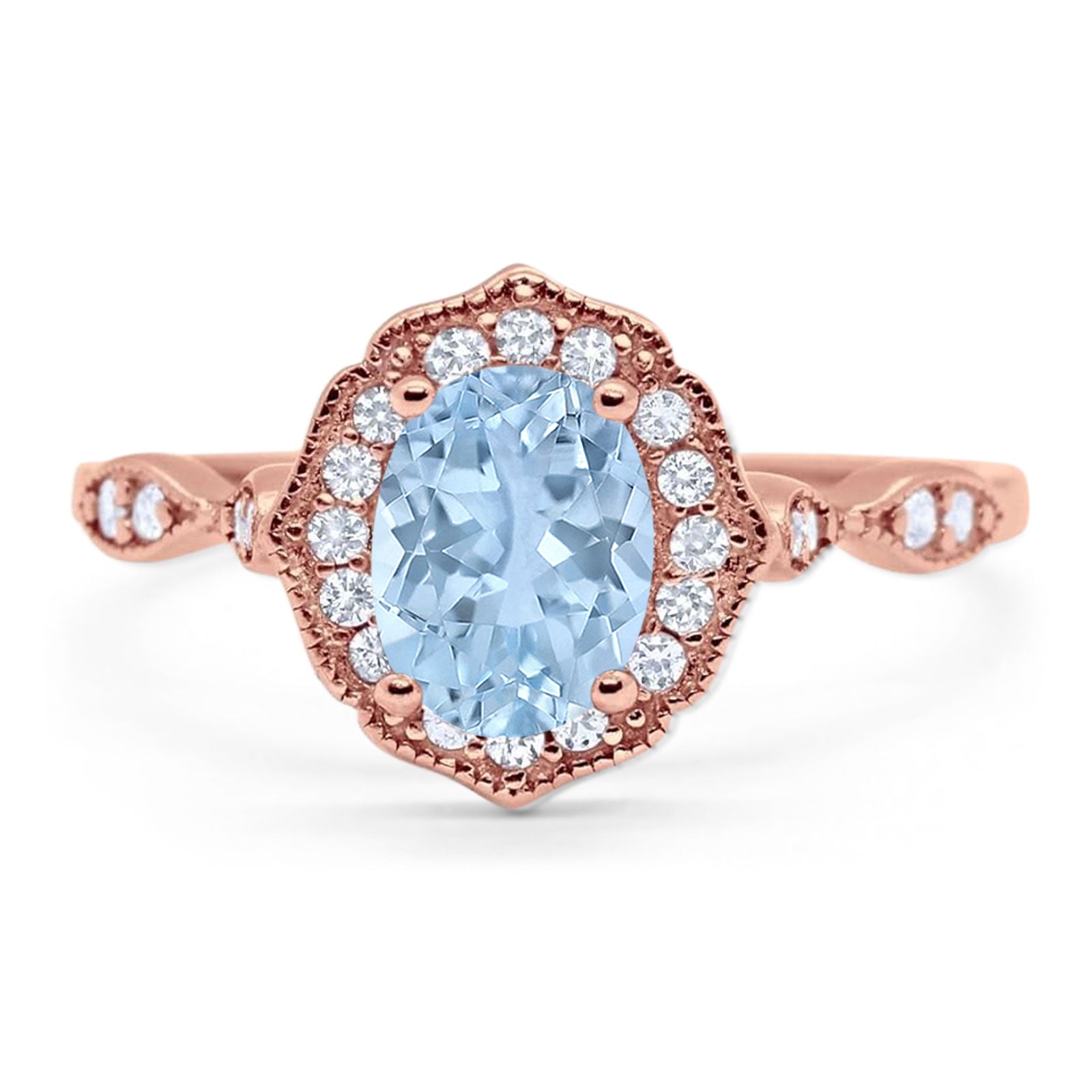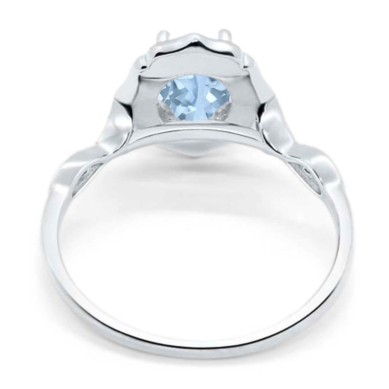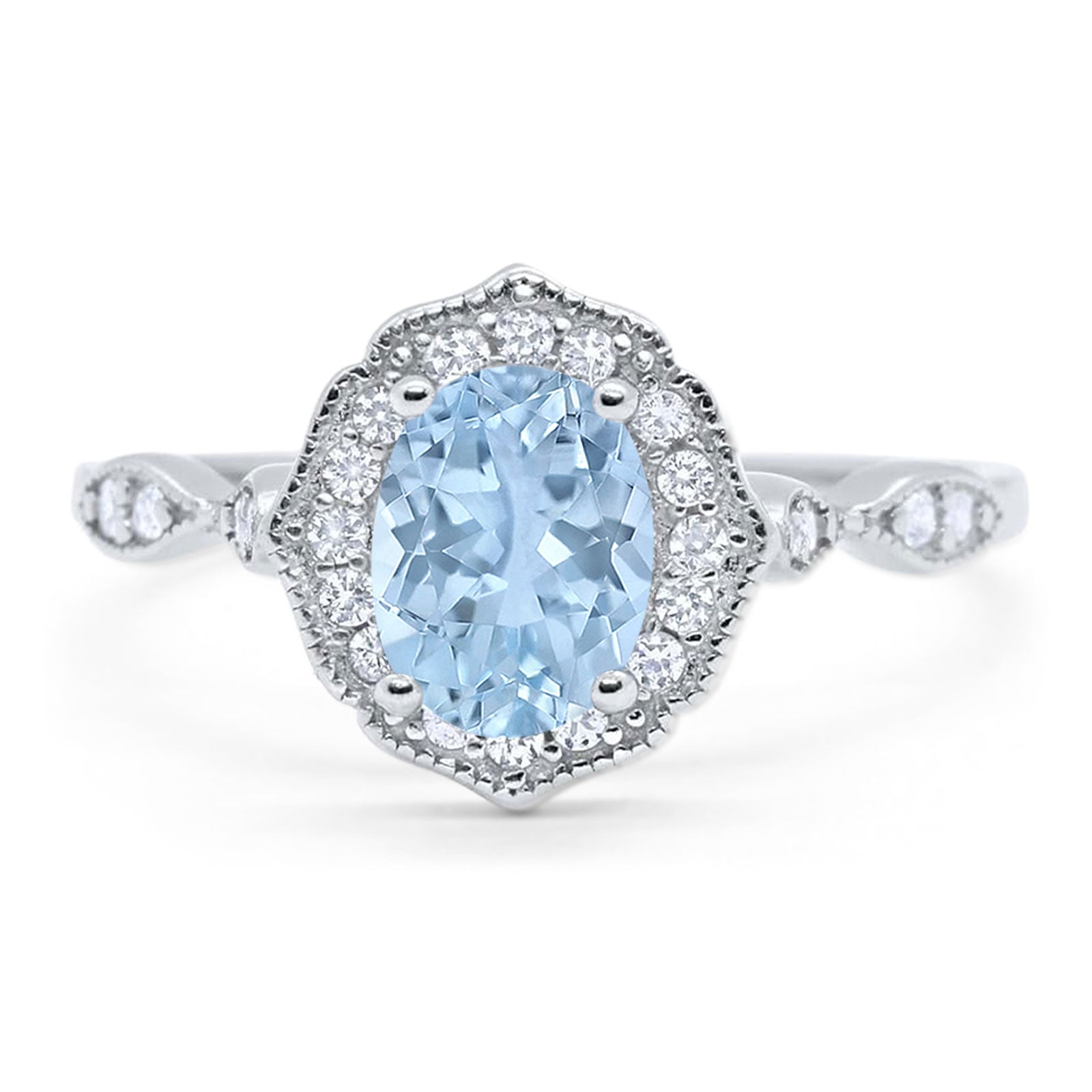Art Deco Oval Natural Aquamarine Floral Ring 925 Sterling Silver
