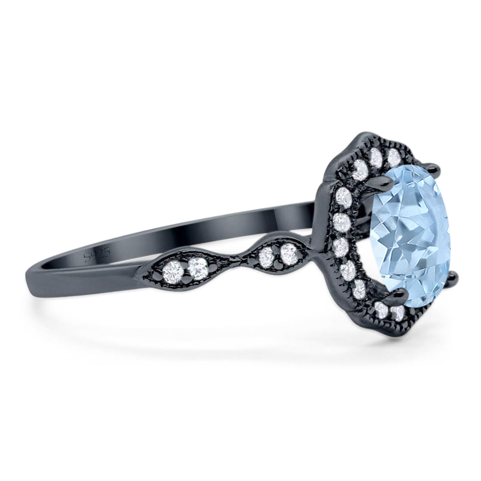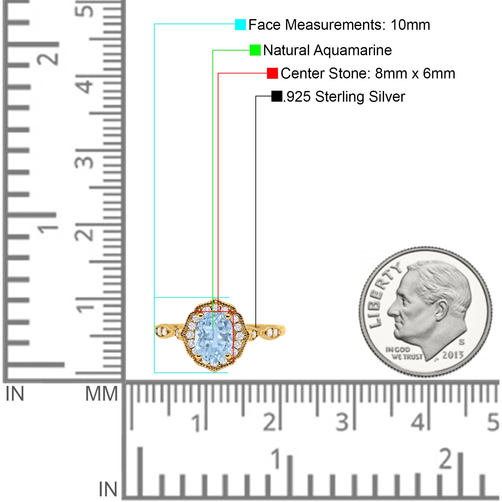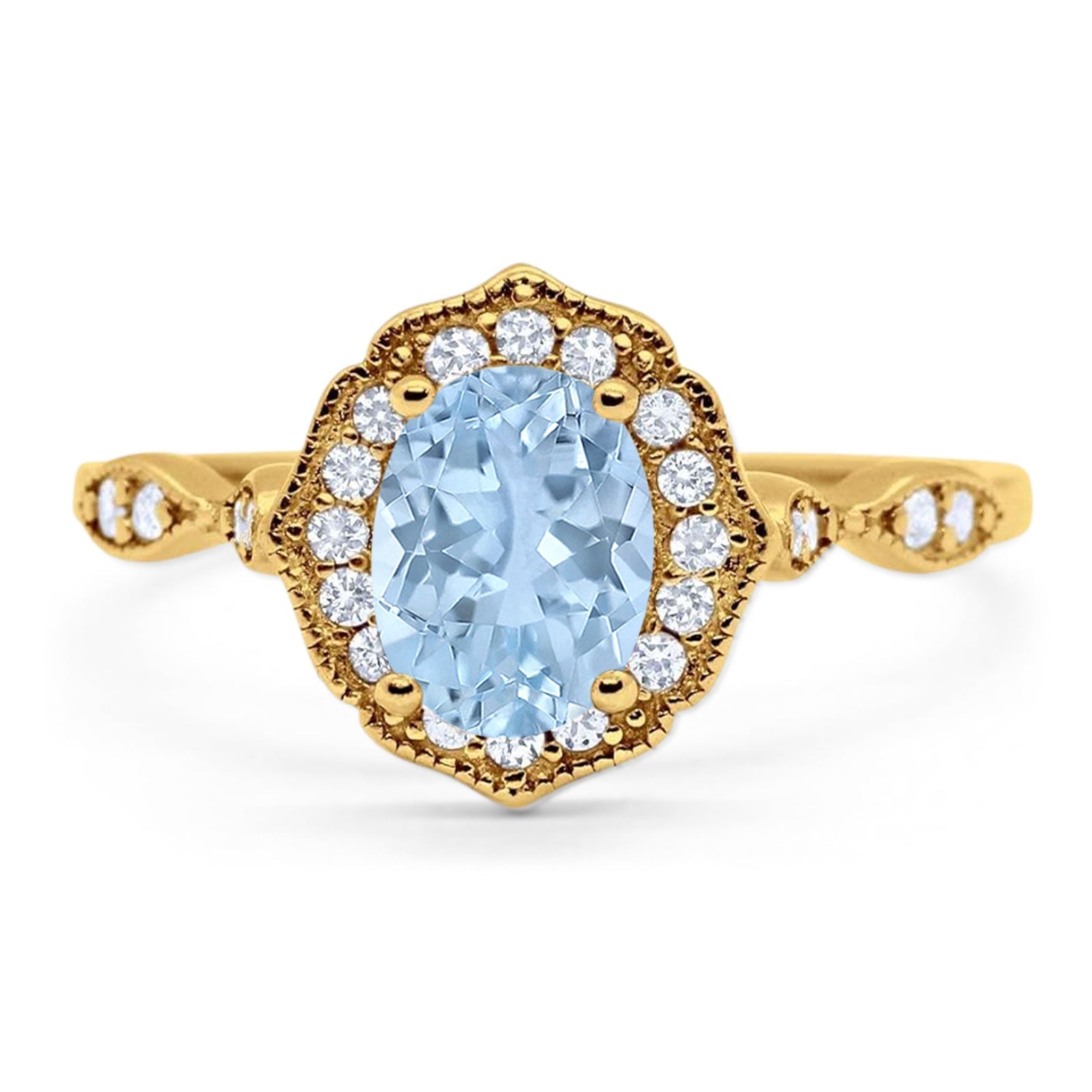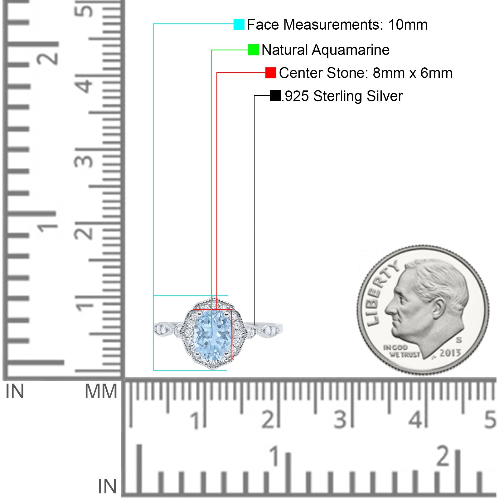 Art Deco Oval Natural Aquamarine Floral Ring 925 Sterling Silver